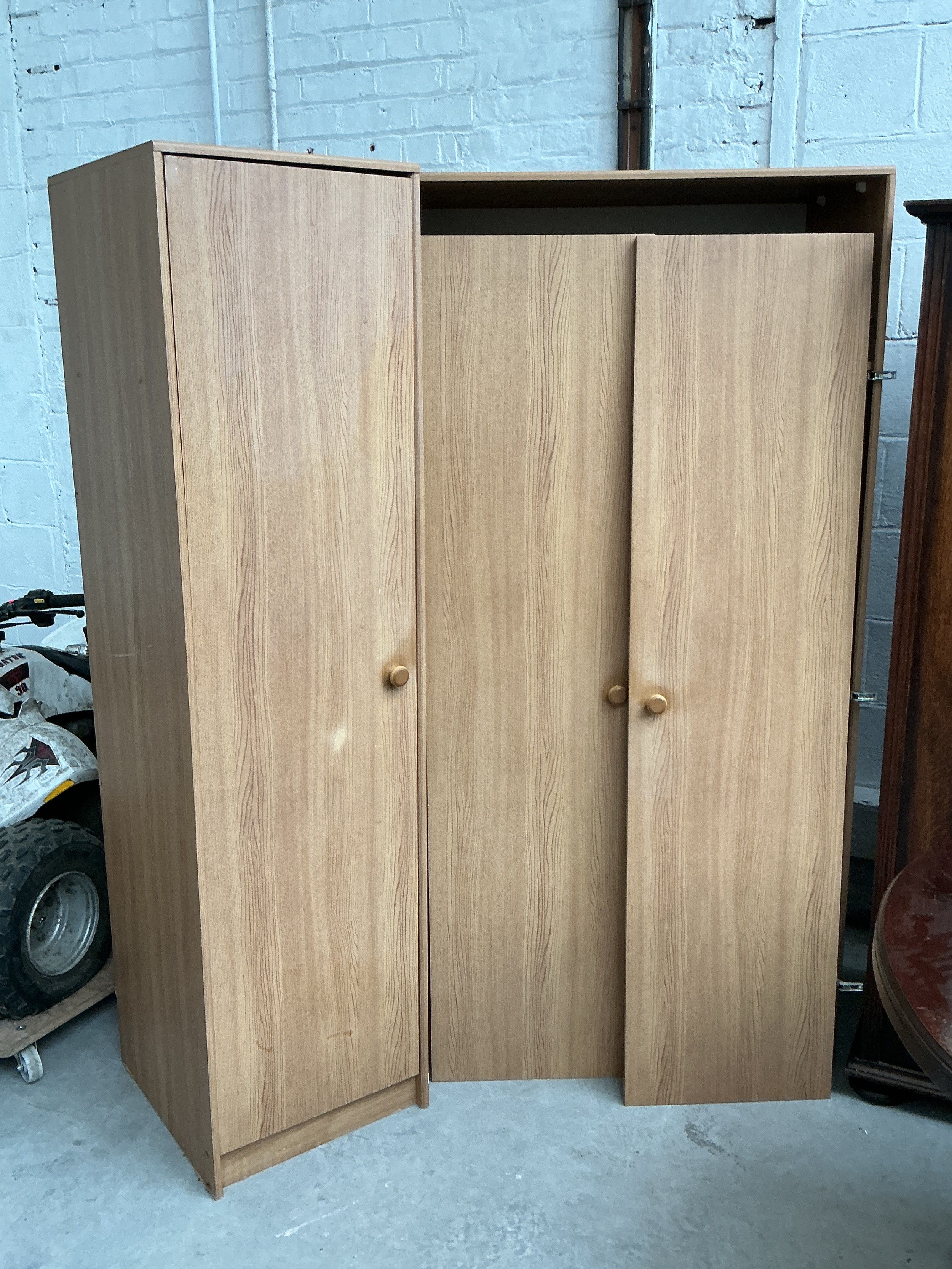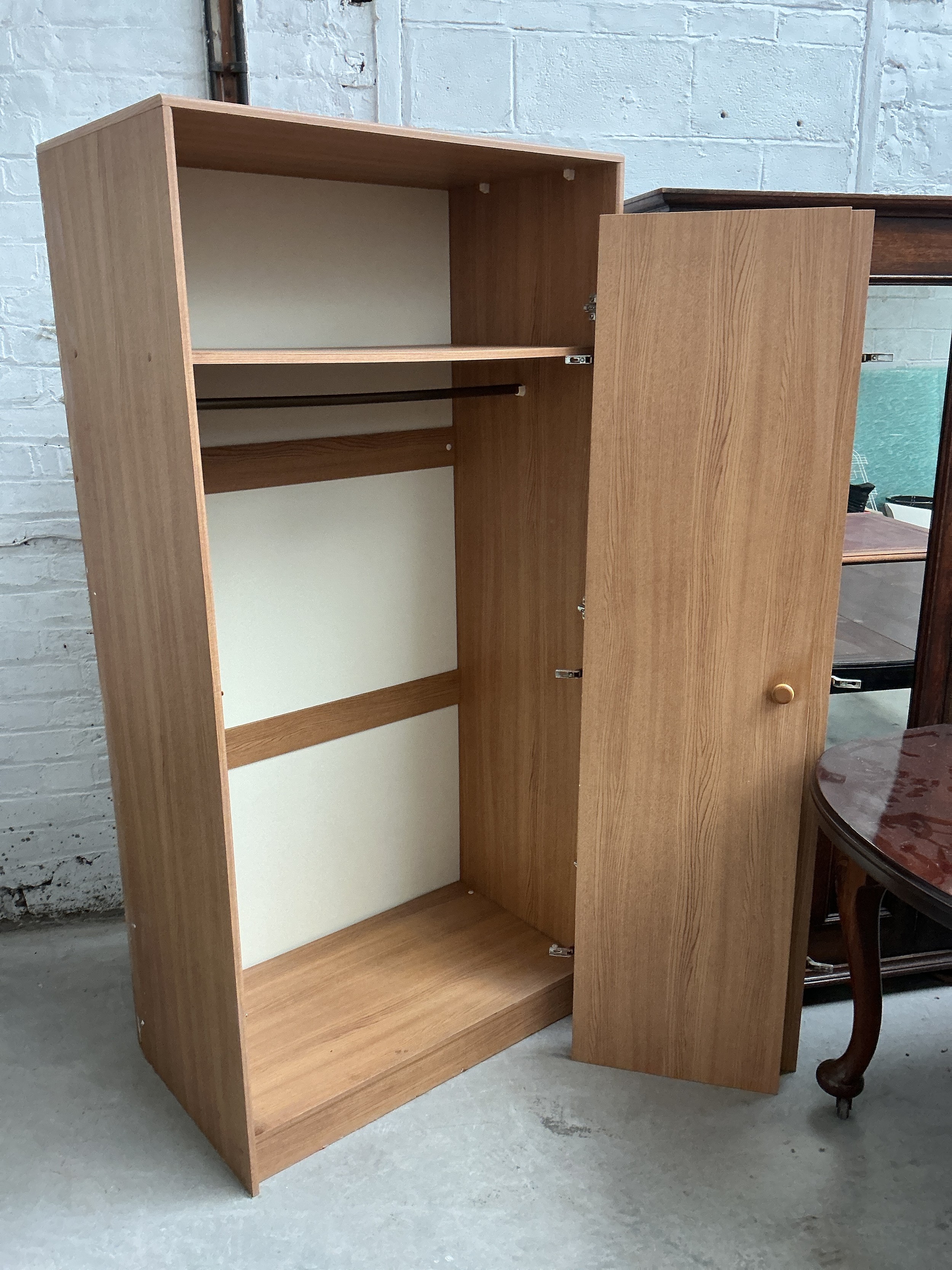 Double and single wardrobes in light beach wood effect (DBL - 182.5Hx90Wx53D- SNGL -182Hx47Wx53D) both as found