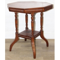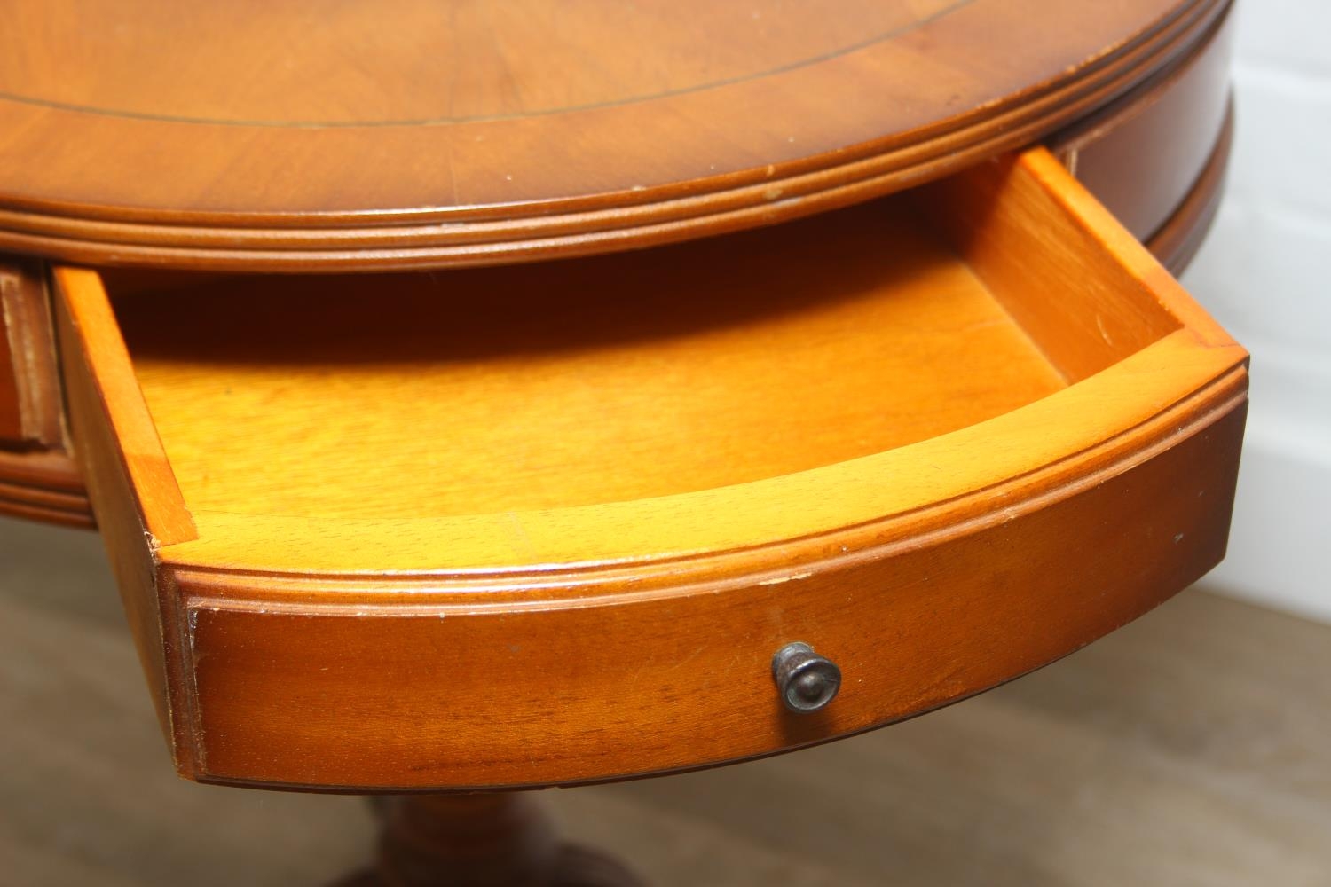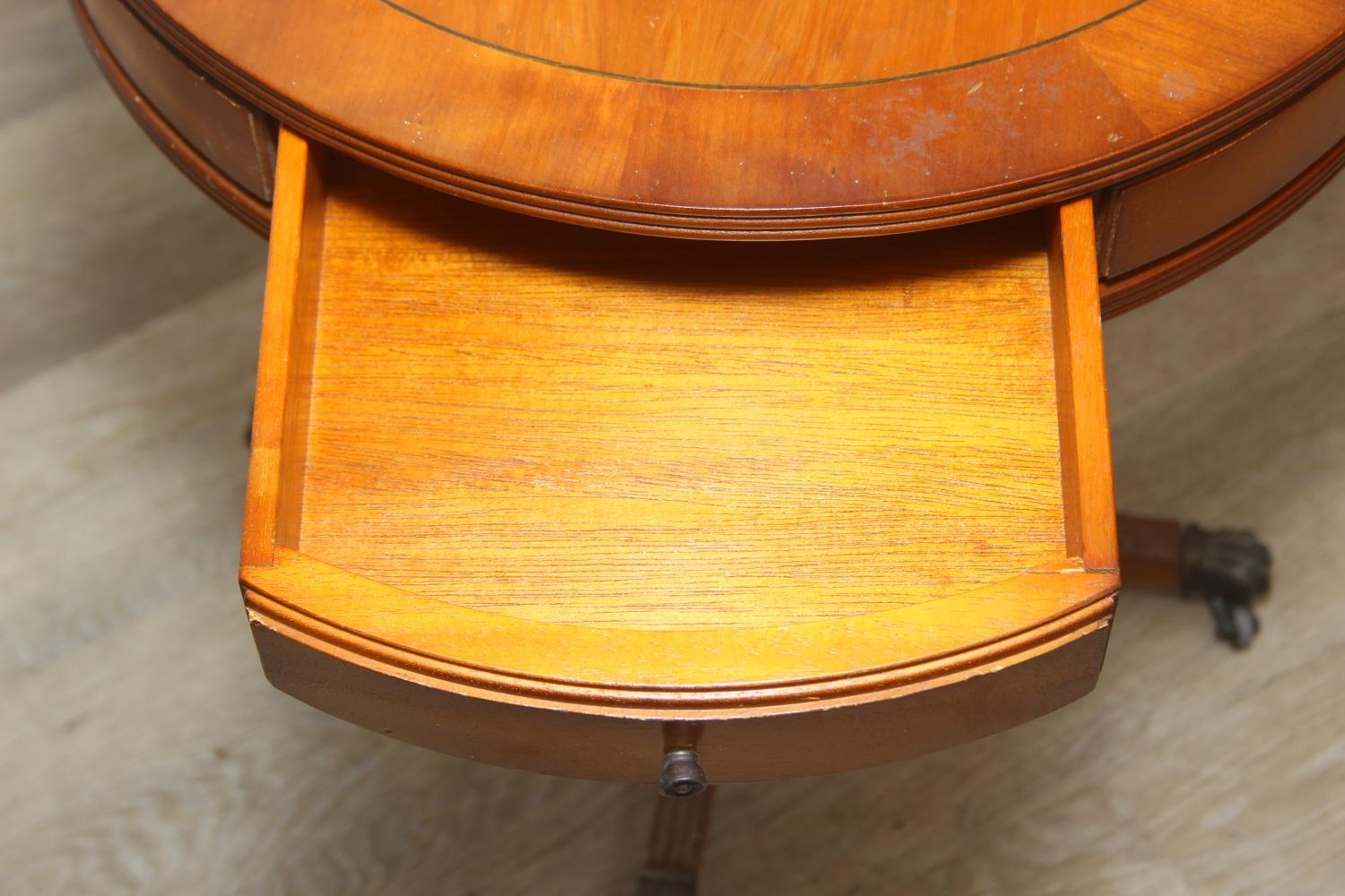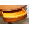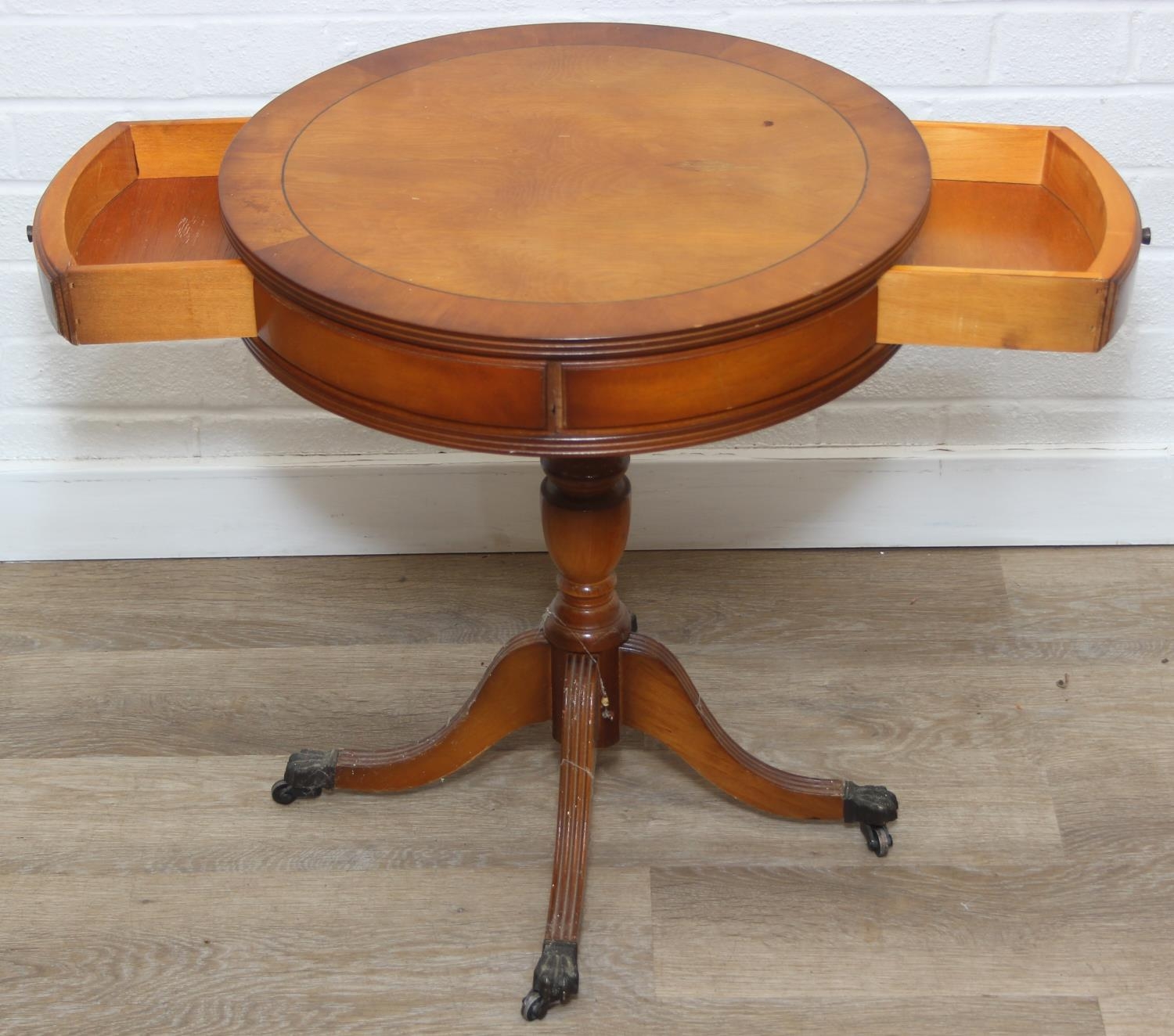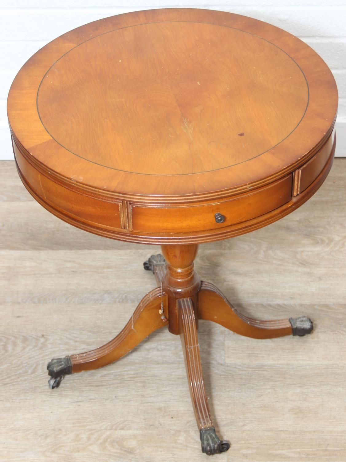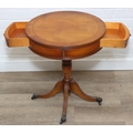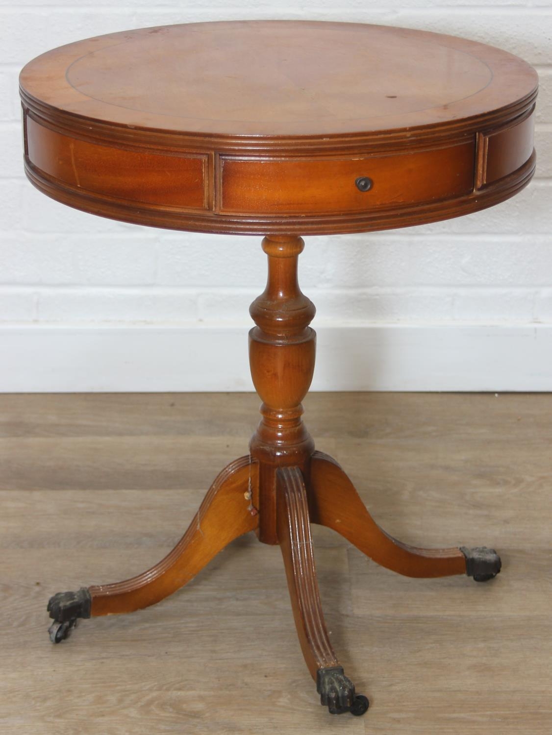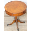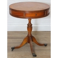 An antique style drum table with round splayed legs, 49cm in diameter x 58cm tall