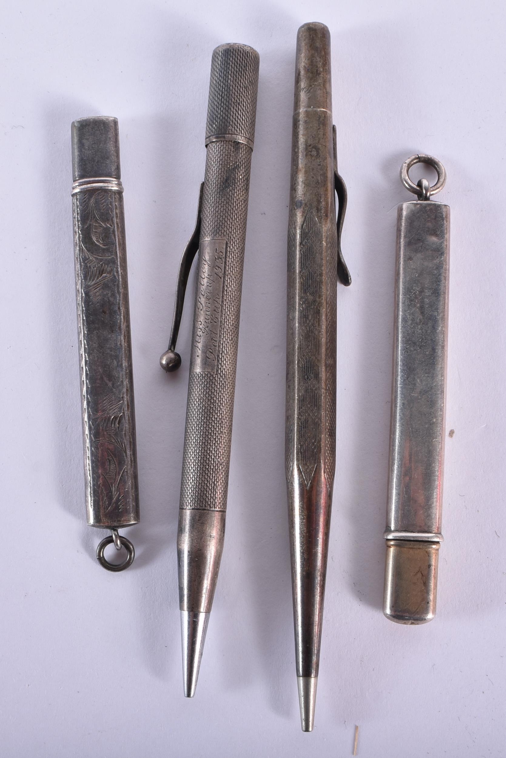 4 x .925 sterling silver pencils inc propelling, lifelong etc. 55.2 grams. 13 cm long. (4)