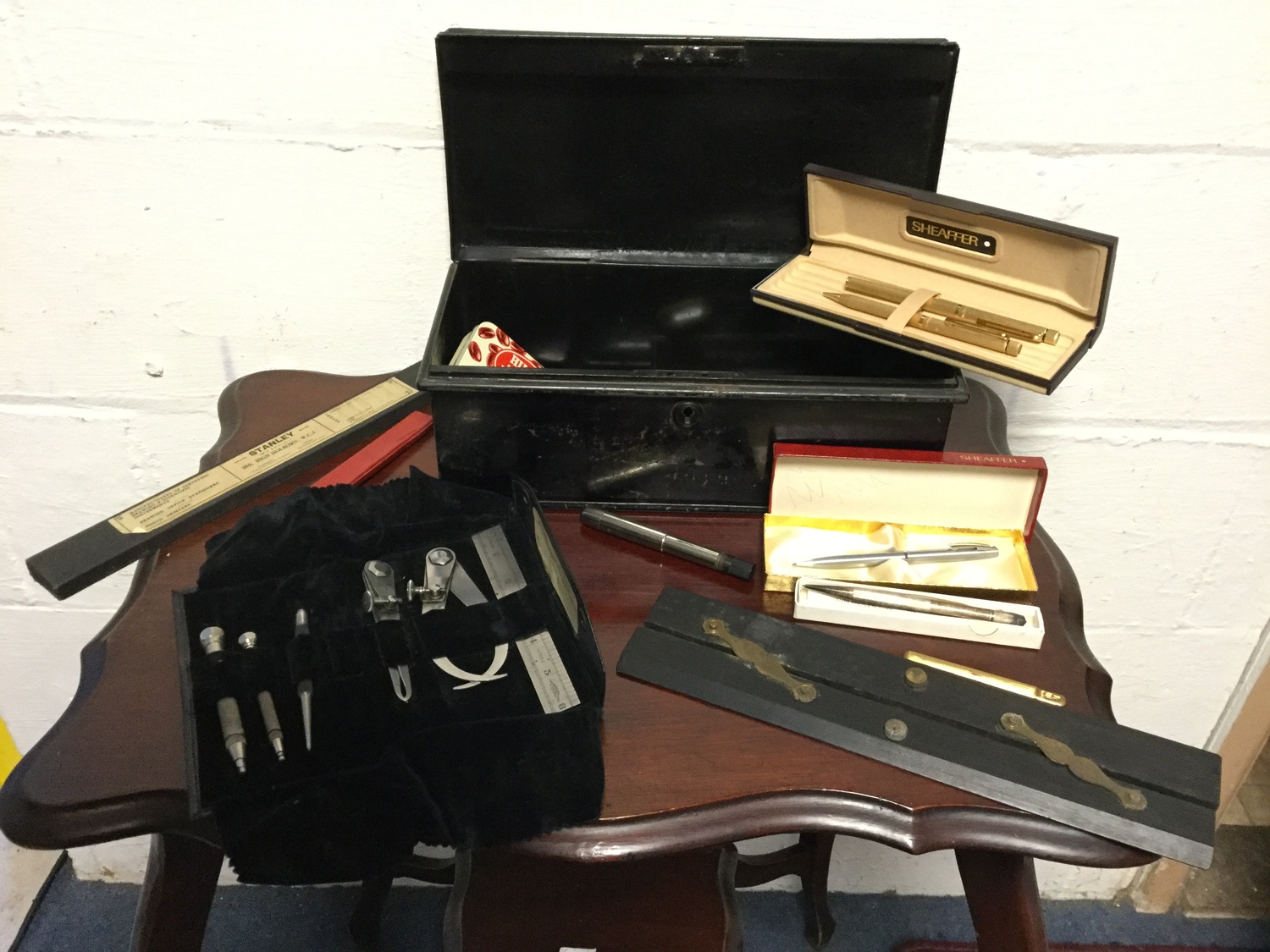 A military issue gauge, believed to be an optical square, by E R Watts & Son, c.1910 and a map measure gauge (2) -