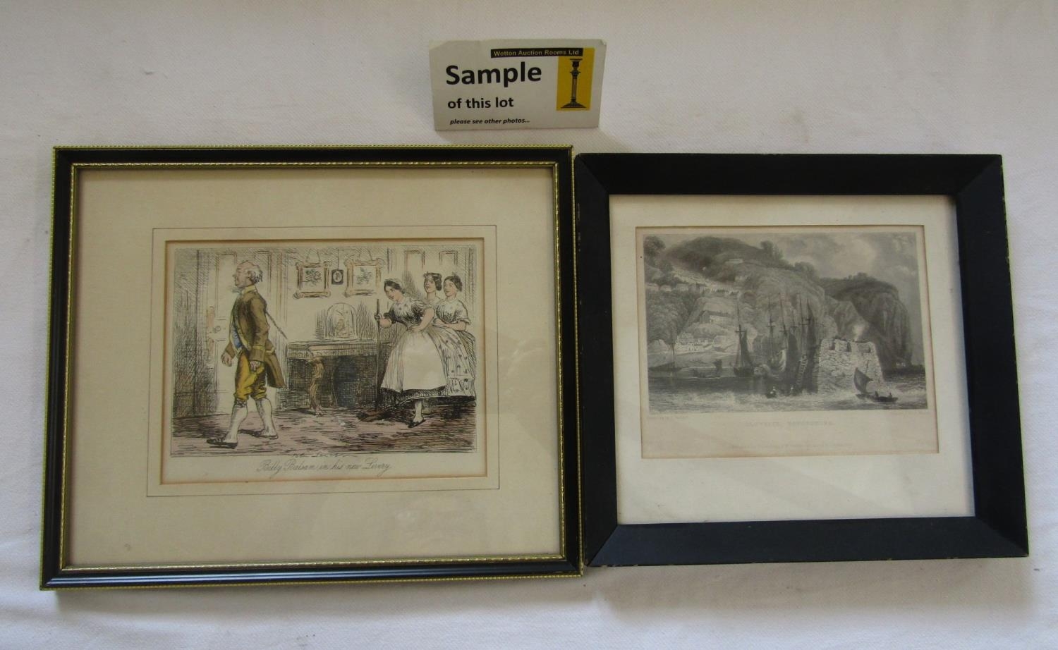A collection of 19th century prints and engravings including examples after John Leech, topographical views including Falmouth Harbour, Shepperton, Middlesex, etc, various sizes, all framed (15)