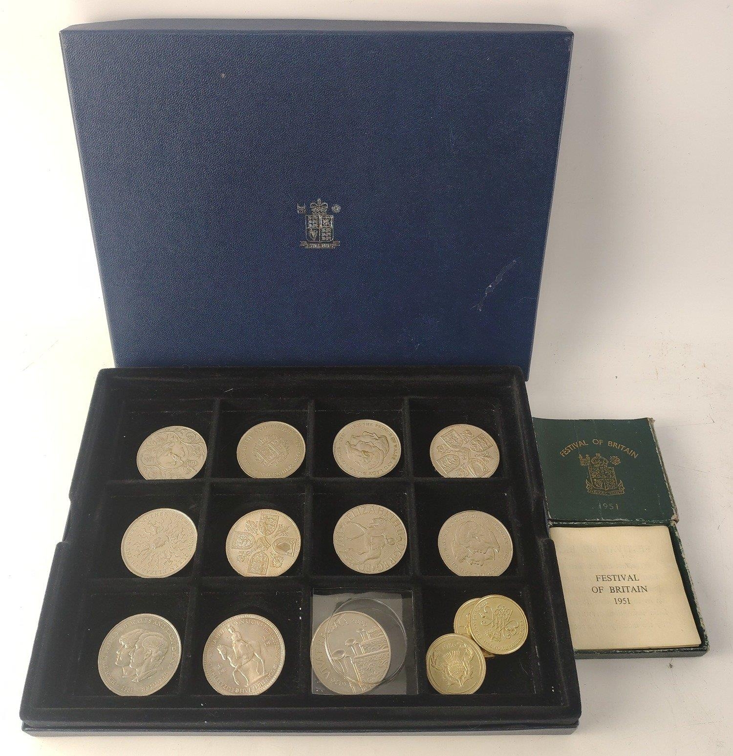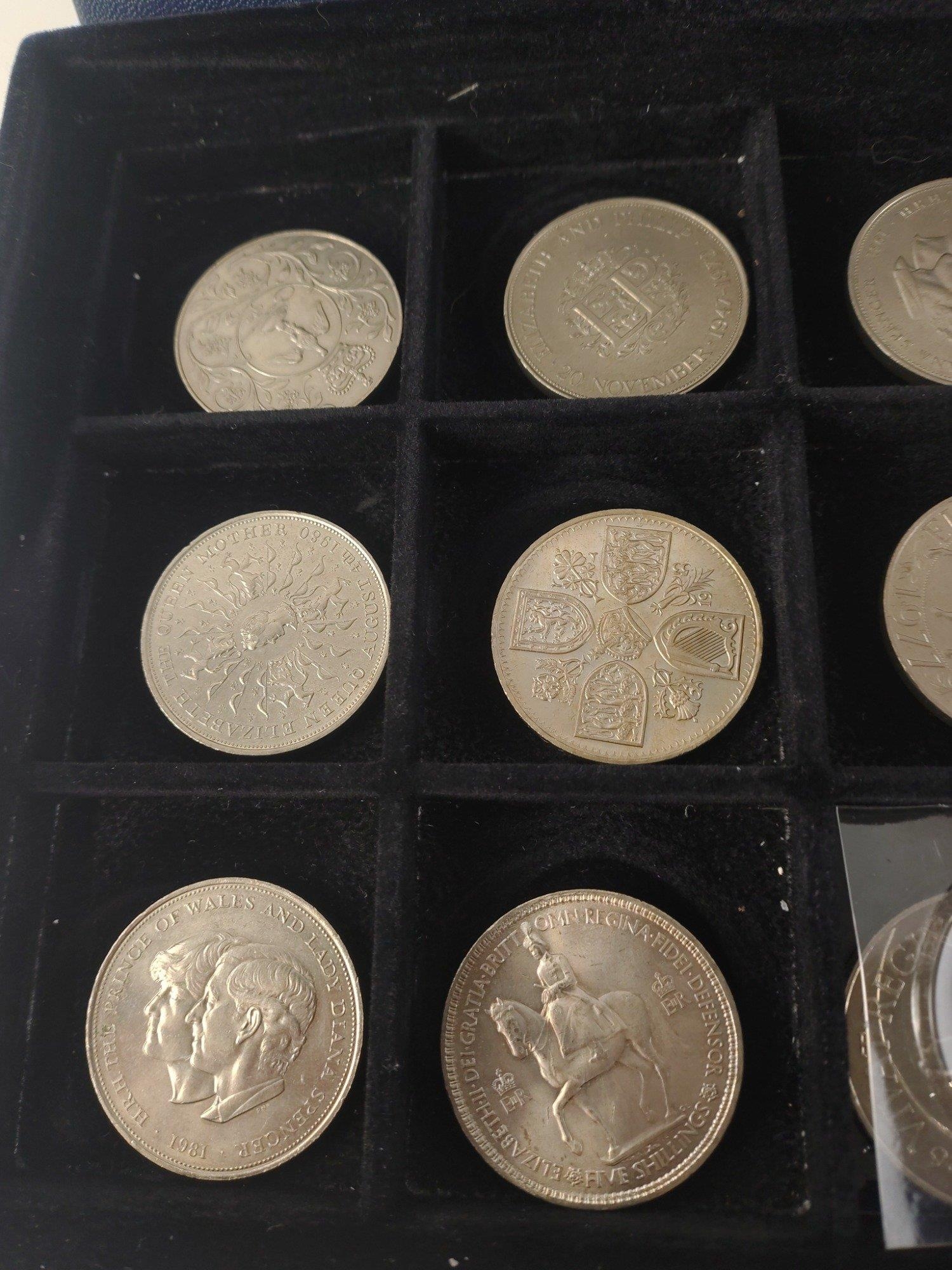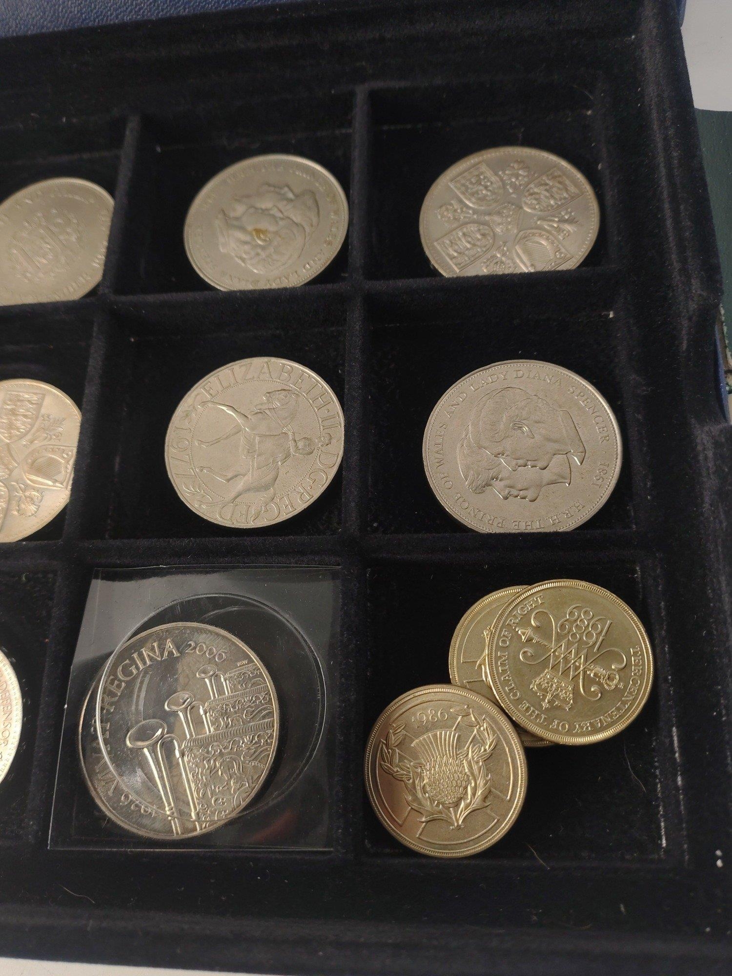 A coin tray with an assortment of Crowns, three collectible £2 coins including Claim of Rights and a Festival of Britain Crown etc.