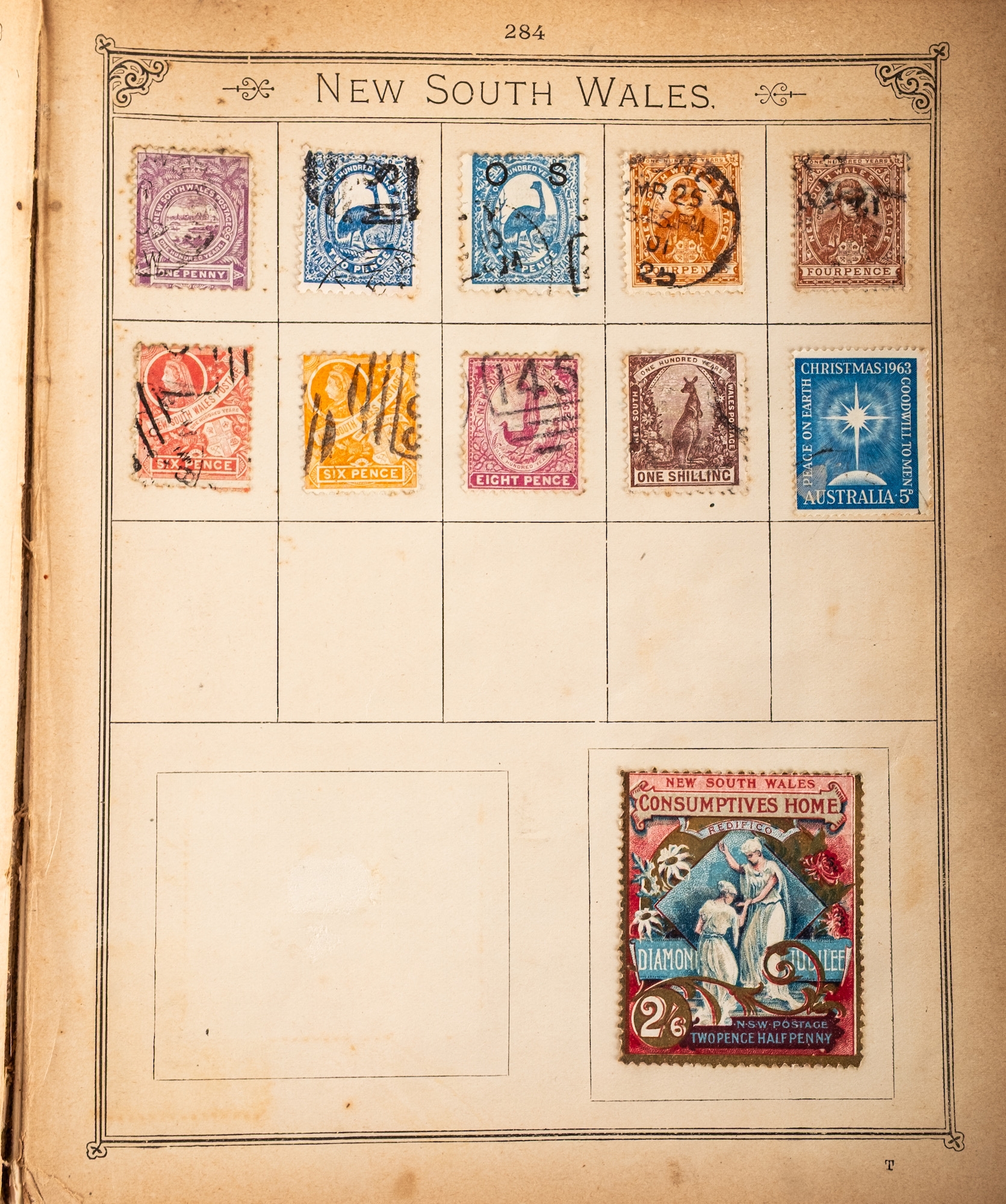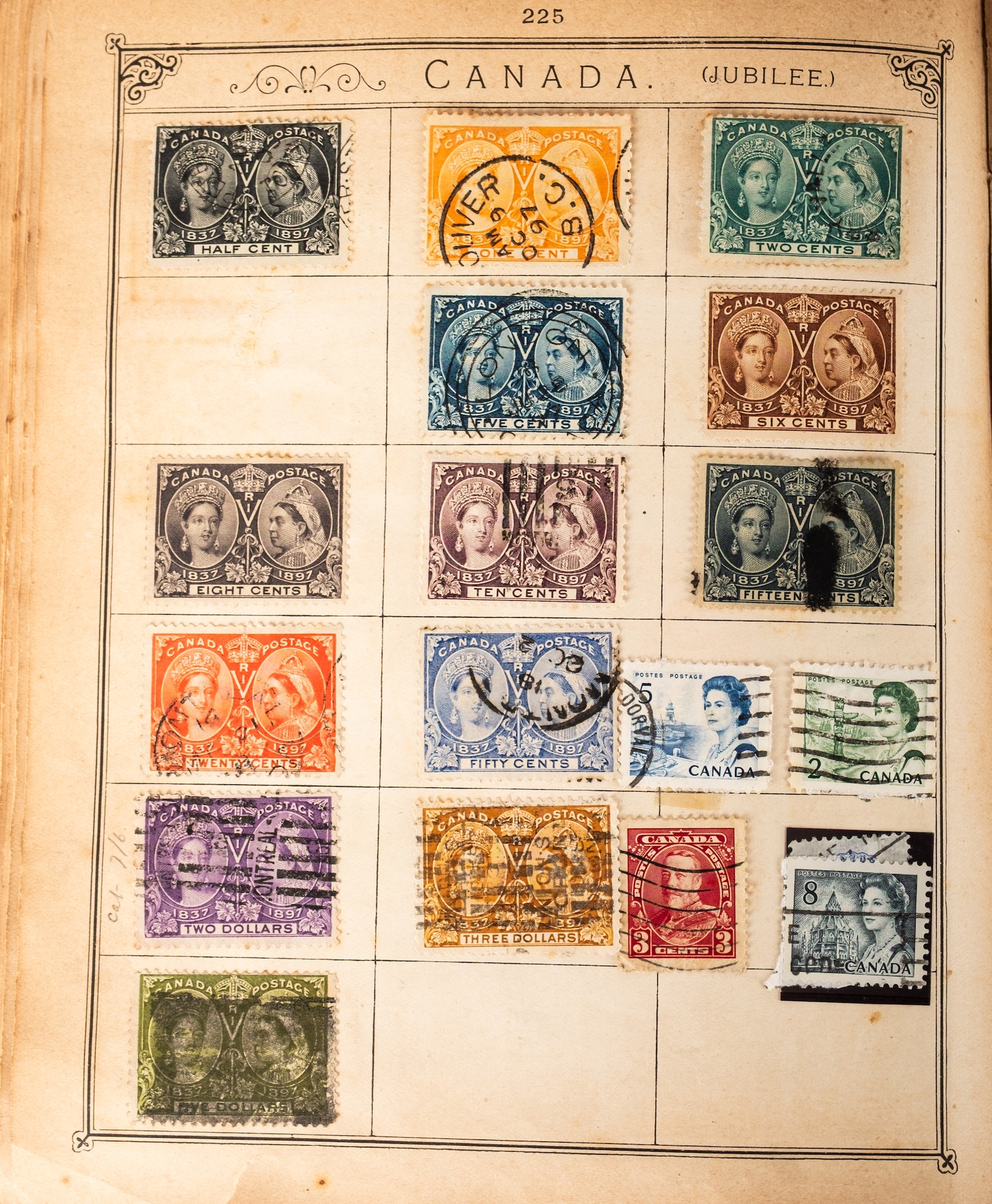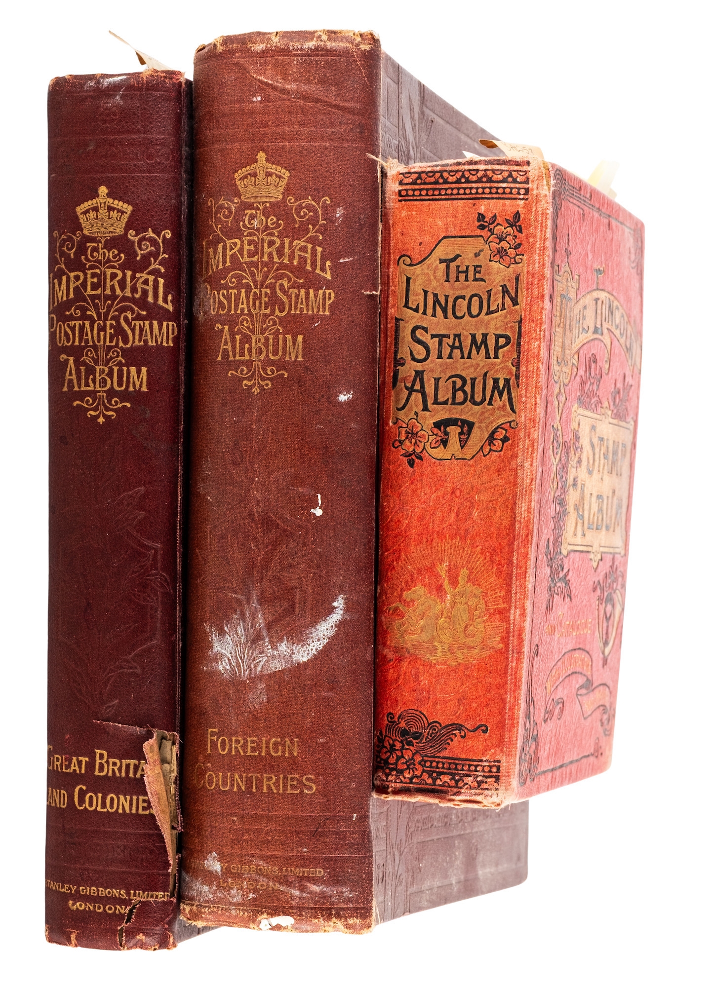 ''Old-time. A collection of world stamps in three albums, with strength in a Lincoln album including, New South Wales, Gibraltar QV mint, China, Hong Kong, Cape of Good Hope triangulars, USA Columbus values to $2, Canada 1897 Jubilee values to $5 (heavy cancel) used, with mixed condition throughout. Also two Imperial albums with sparse contents but some useful early Great Britain including 1840 1d black (poor), QV mint to 1/-. Viewing recommended.''