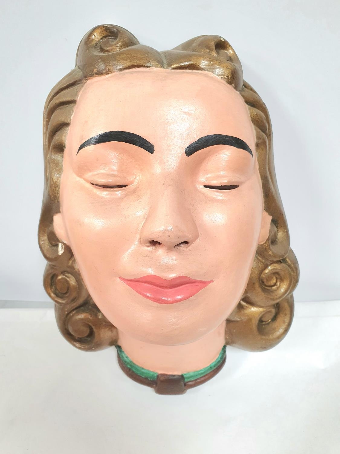 20thC ceramic wall hanging depicting a 1920s womans head