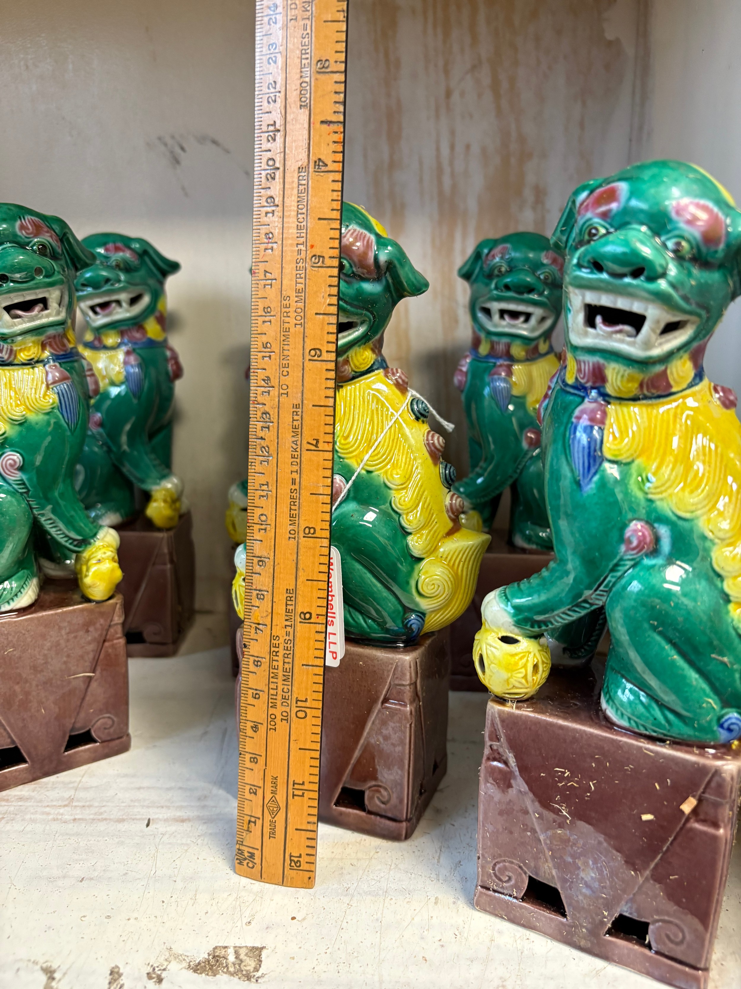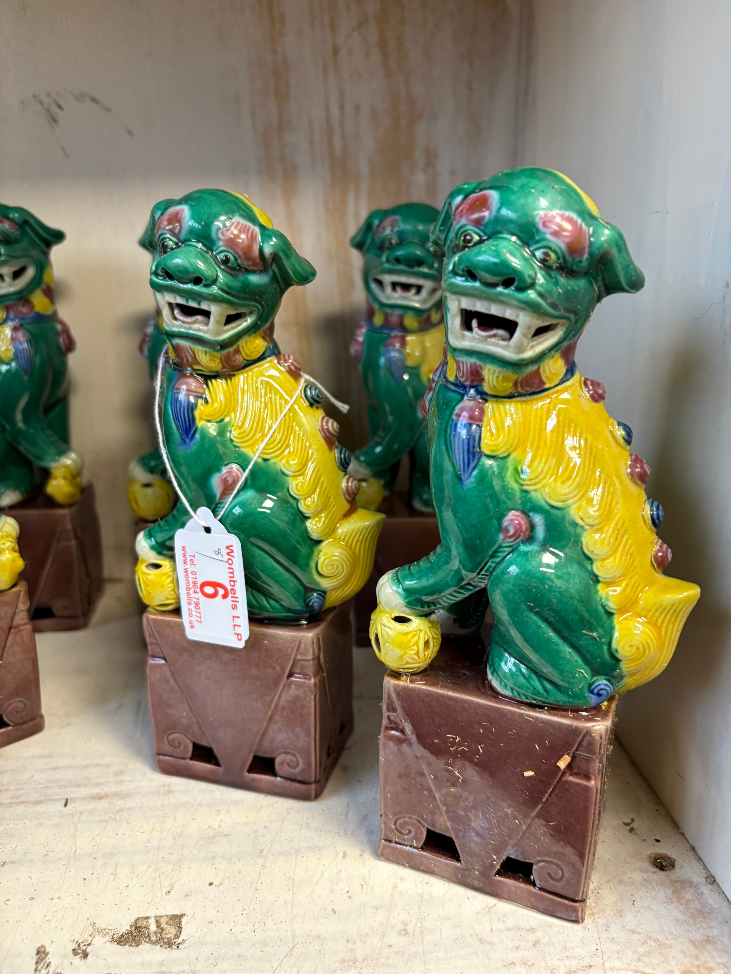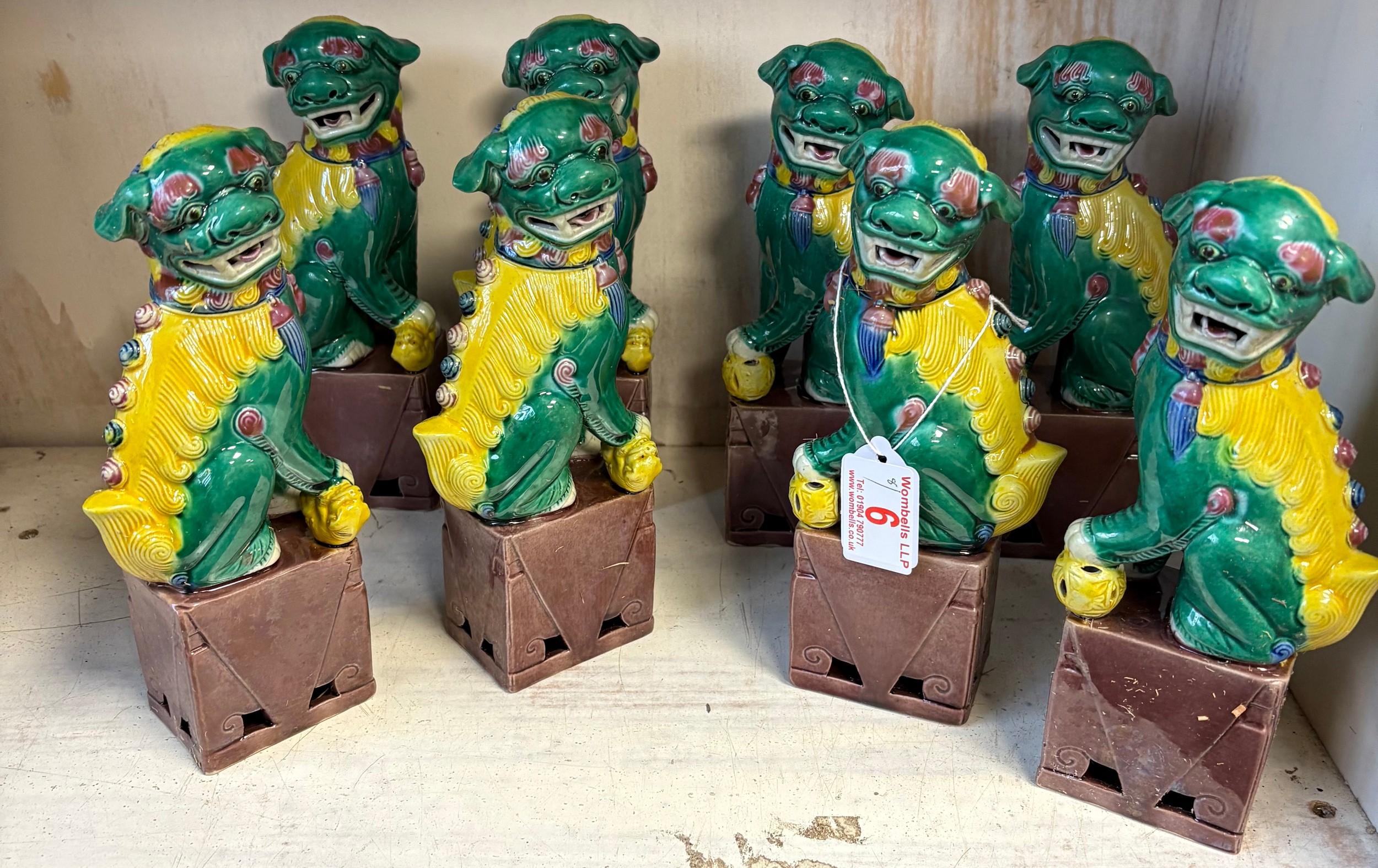 Four pairs of green Foo Dogs, 20cm tall