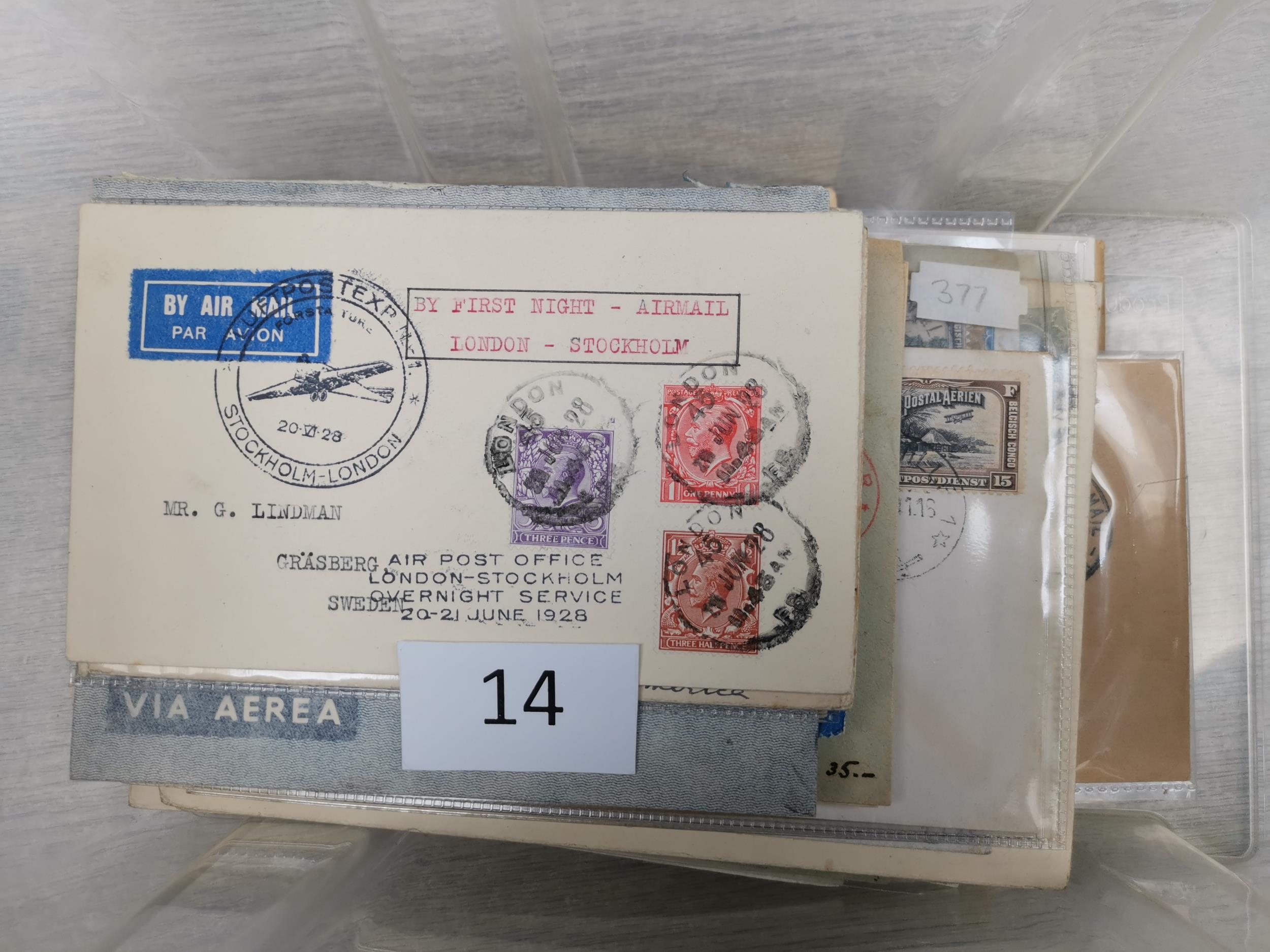 MIXED WORLD. POSTAL HISTORY. Range in plastic container interest in GB and Sudan 1930's Air Mail covers others incl. Switzerland. (100+ items)
