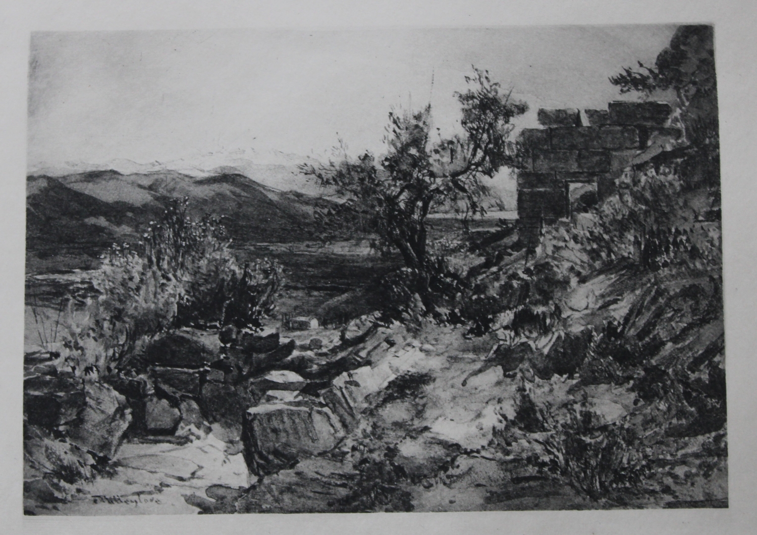 John Fulleylove 1897 - Etching of Messene on Ithome. This superb etching is from Pictures of Classic Greek Landscapes and Architecture by John Fulleylove RI. Published by JM Dent & Co, London 1897.