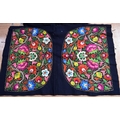 A metal thread and fabric embroider panel with a colourful display of flowers together with another similar.64 x 41cm (2).