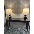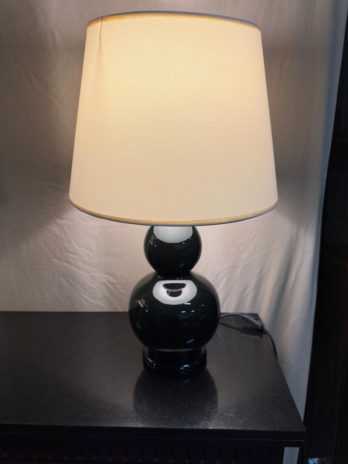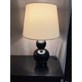 Pair of Porcelain Bulbous style Lamps with Cream Shades and Low Energy Bulbs, ready to use