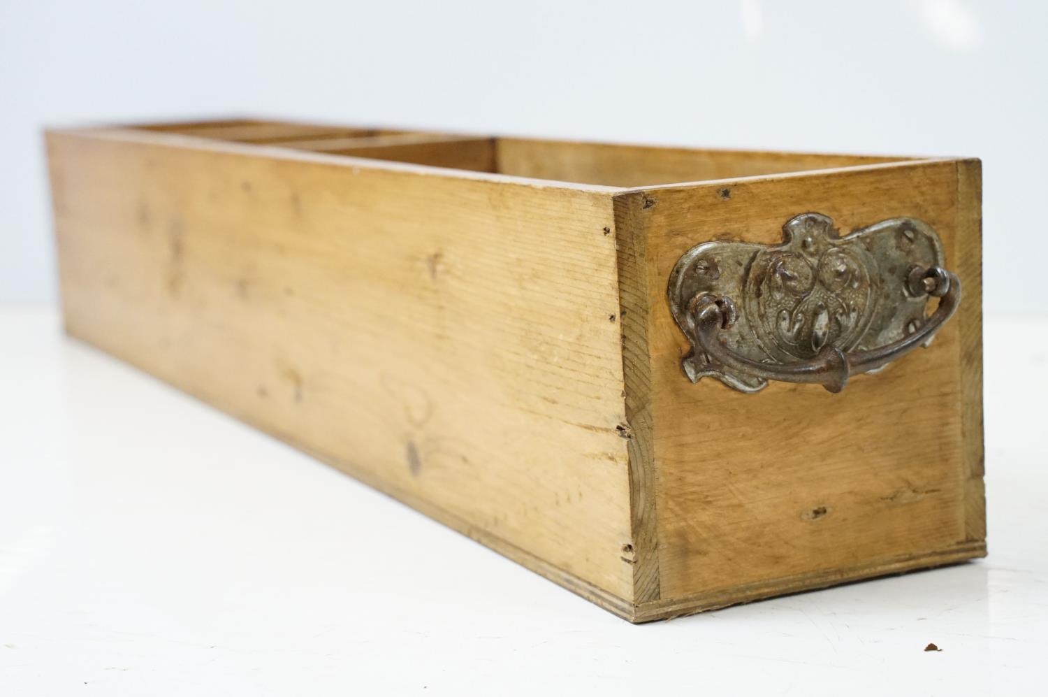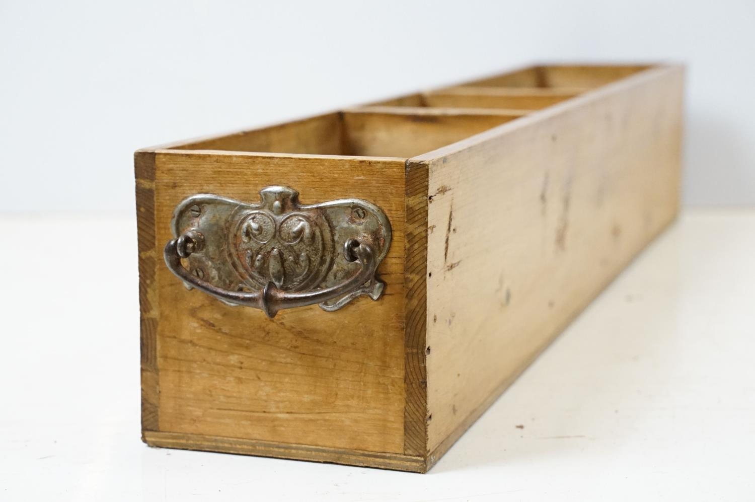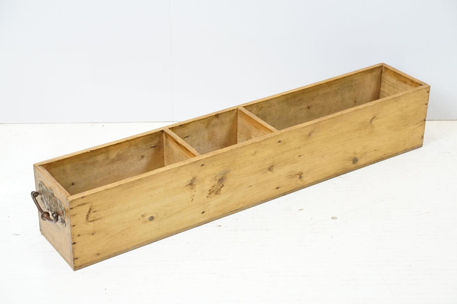 Vintage pine cutlery and condiment box, 12.5cm high x 76cm wide x 13cm deep