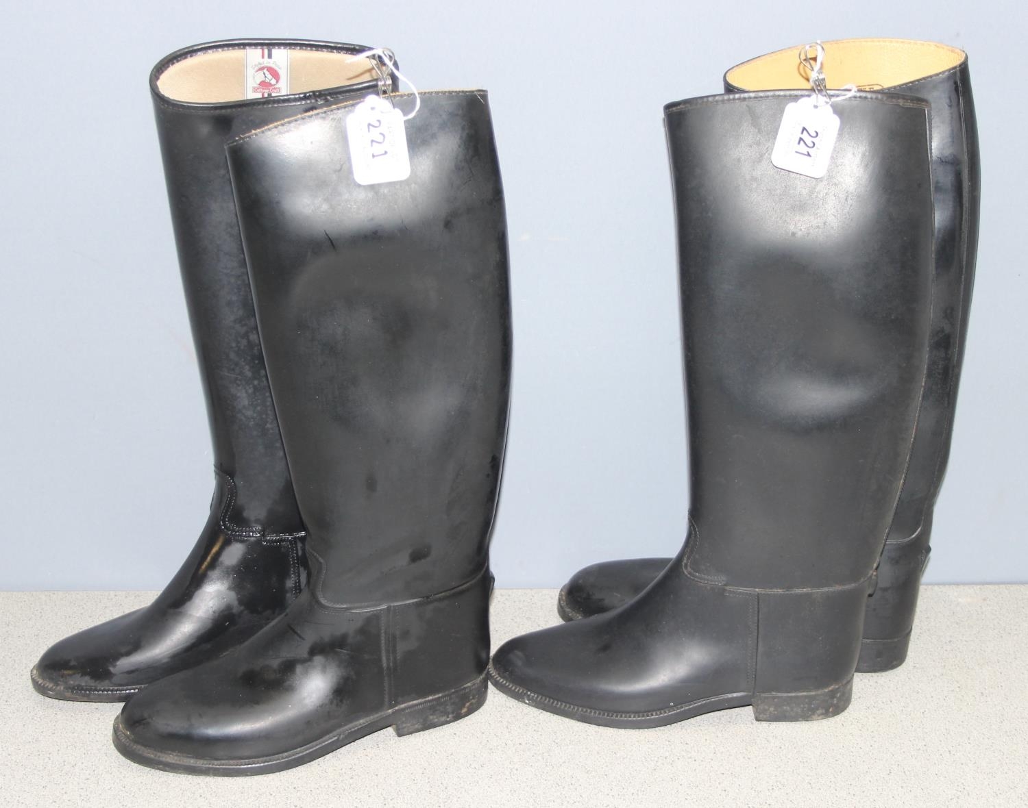 2 pairs of French black leather riding boots