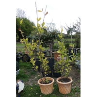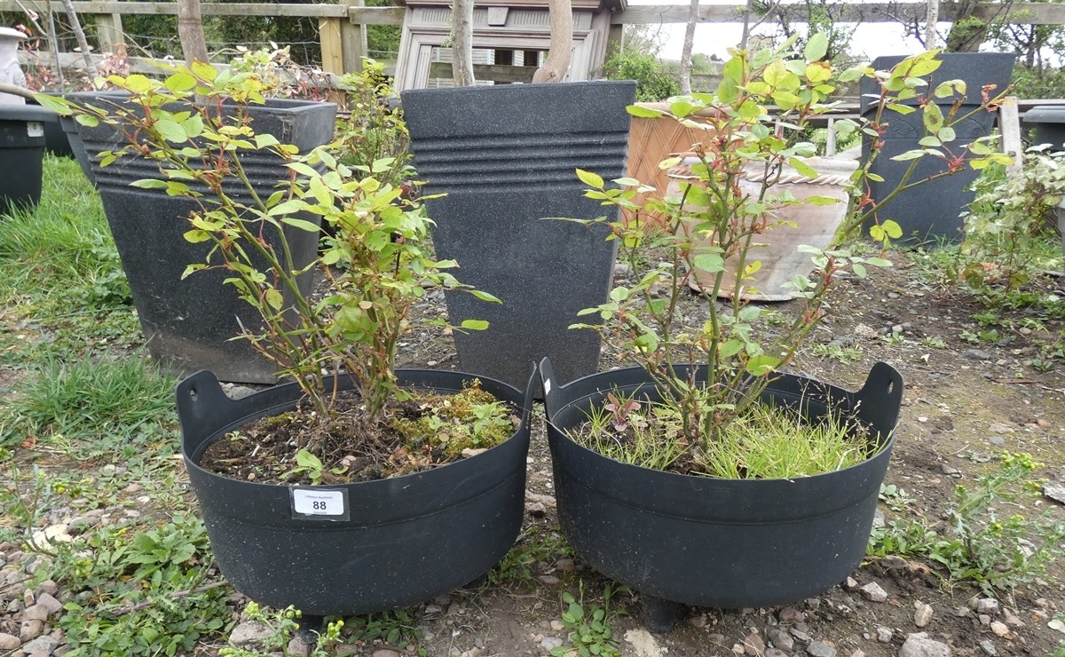 Pair of potted rose bushes
