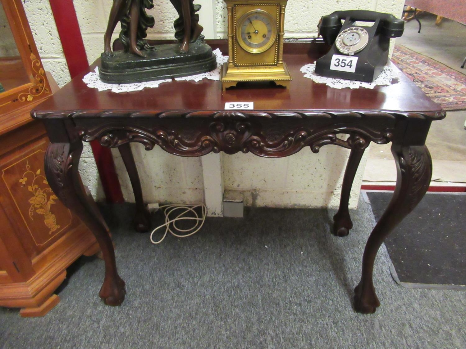 Carved mahogany side table. H:80cm W:97cm, D:46cm.