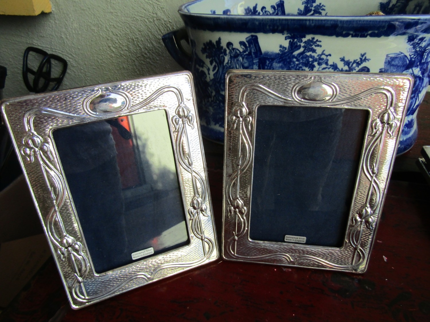 Pair of Liberty Patterned Silver Photograph Frames Hallmarked Each Approximately 7 Inches High x 5 Inches Wide