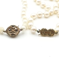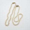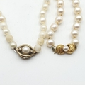 Two strings of Cultured Pearls both on clasps stamped 375, one set cultured pearl and tiny diamonds and the other set cultured pearl only