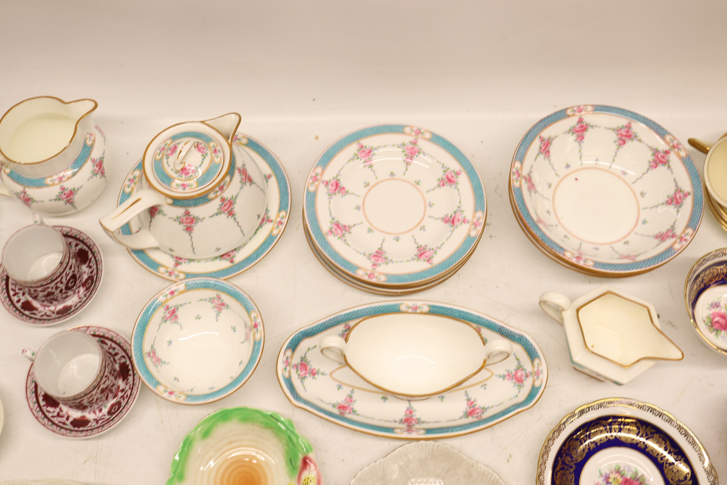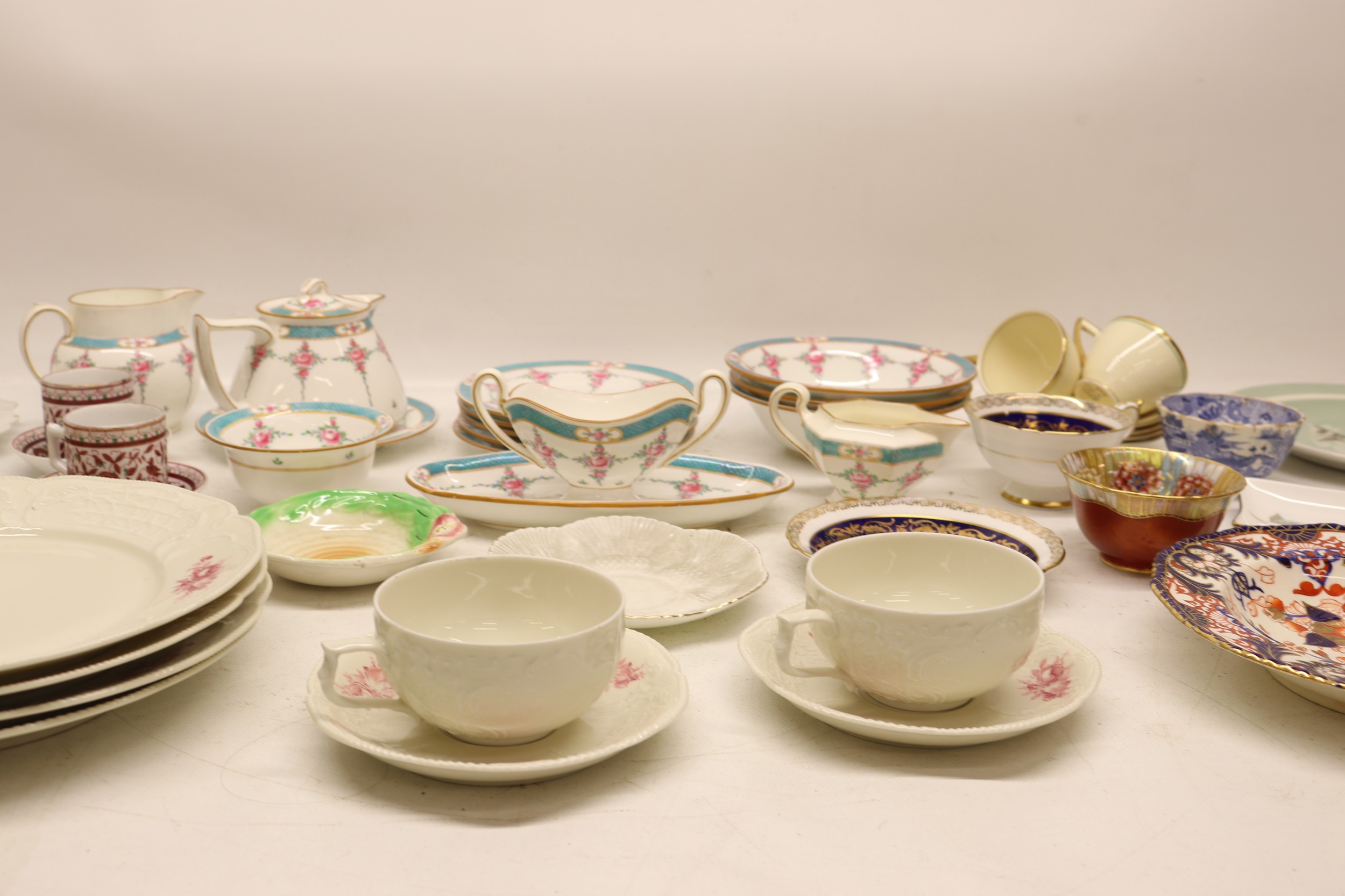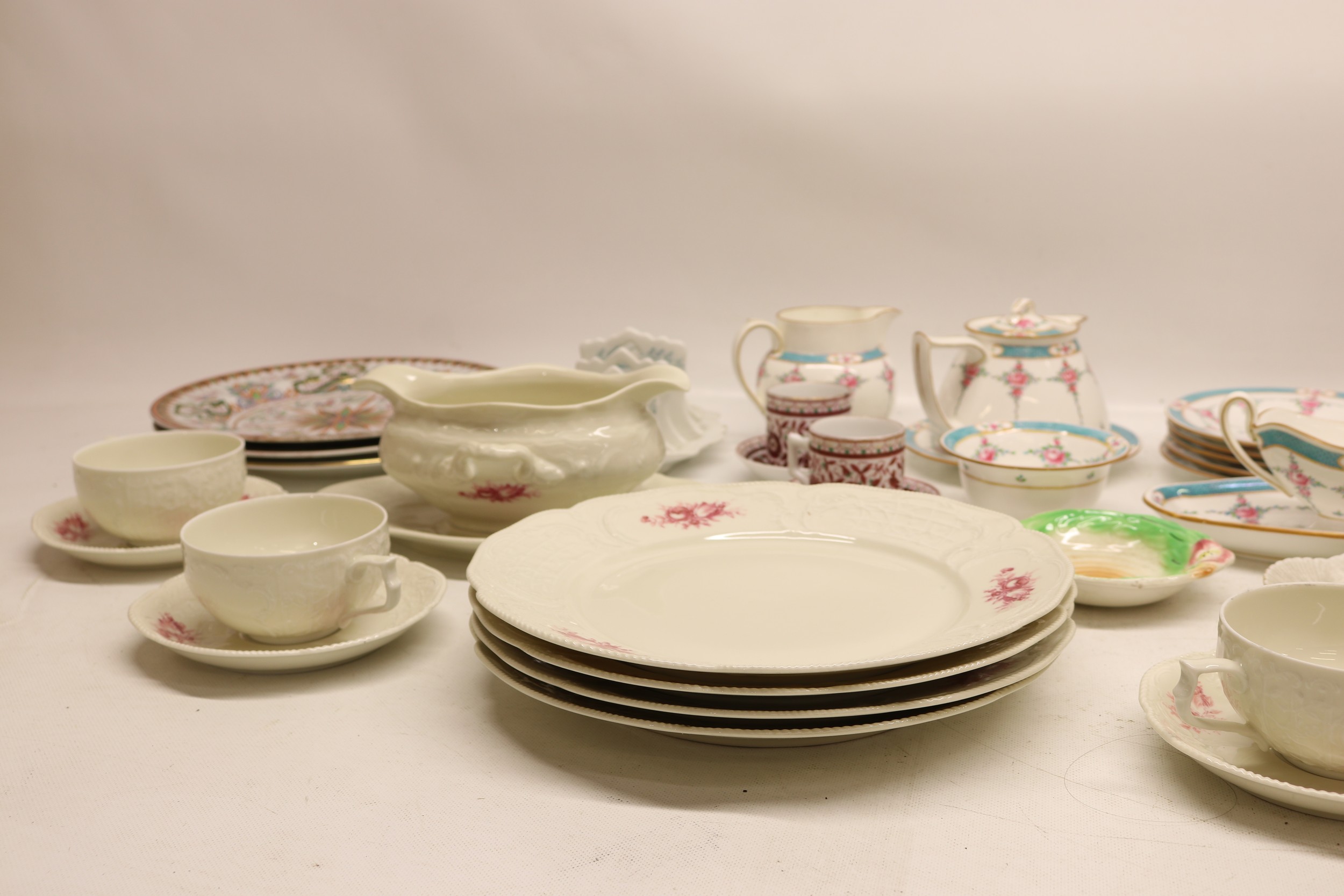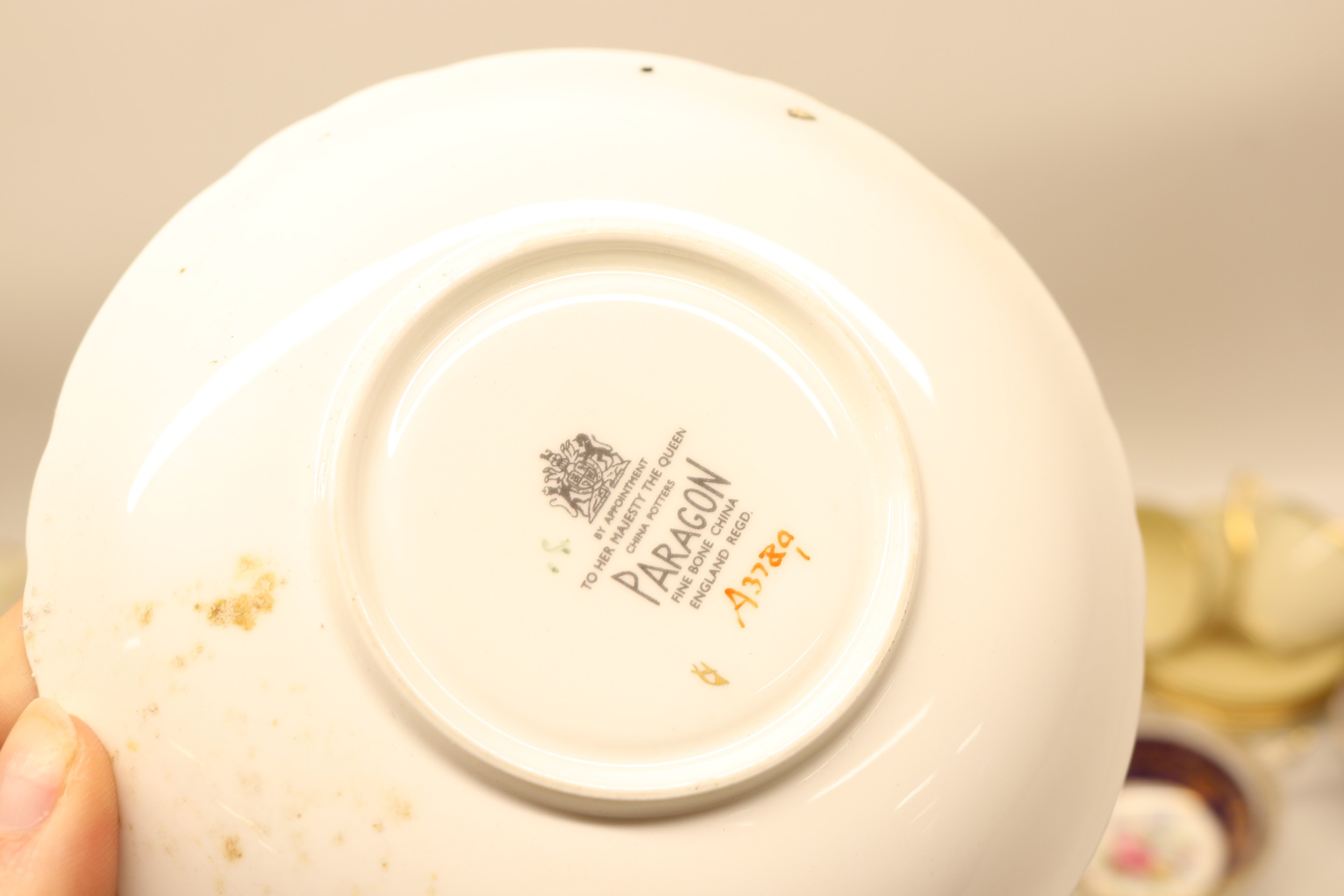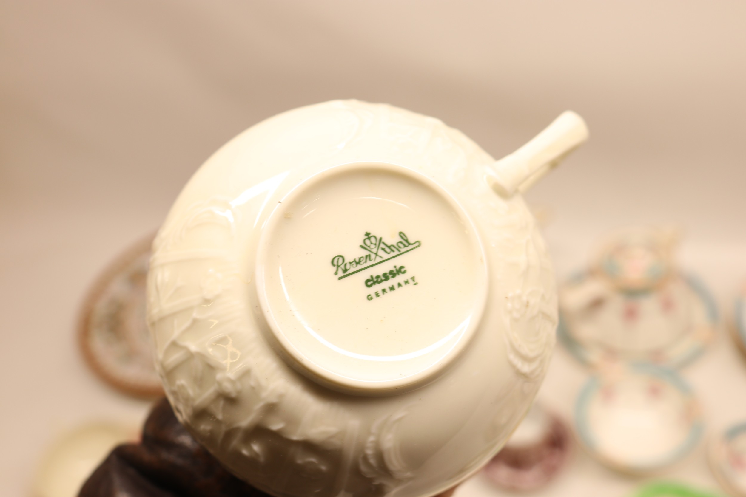 Collection of tea sets; incl. Rosenthal Sanssouci pink roses dinner plates x4, saucers x4, soup dish with integrated plate approx. L25cm; Rosenthal Sanssouci Elfenbein ivory tea cups x4; Minton Rd No 579755, Persian Rose, 6x side plates, 3x bowls, 1x serving plate, cream jug, milk jug, sugar bowl and tea pot; etc., Qty 2 boxes