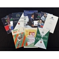 Irish and Scottish International Rugby Programmes etc (10+): Ireland v England 1957 (p/h) and v Wales 76(cr) and almost amusing ‘cut and paste’ pirate 88; Scotland v Wales 97 (plus menu signed by Doddie Weir, Peter Walton etc) and 89, v England 58 and 94; v Ireland 97 and 99; and v Baabaas 91. G/VG