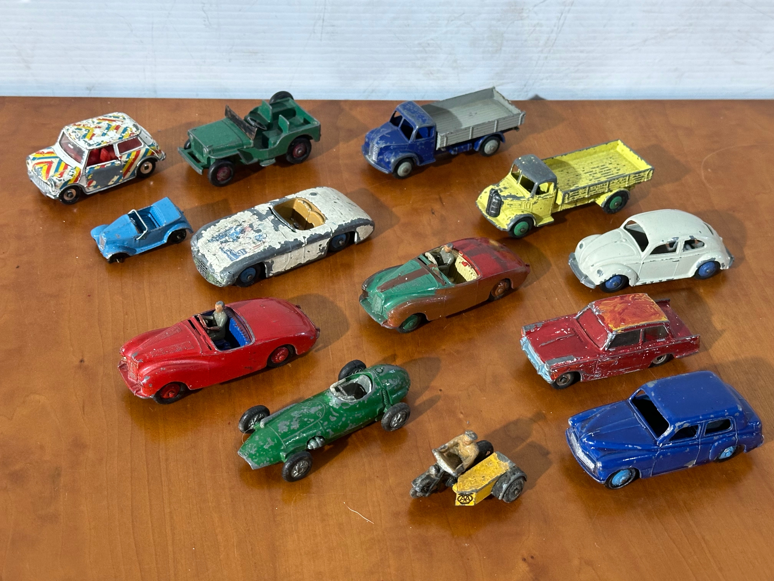 13 vintage Dinky models.