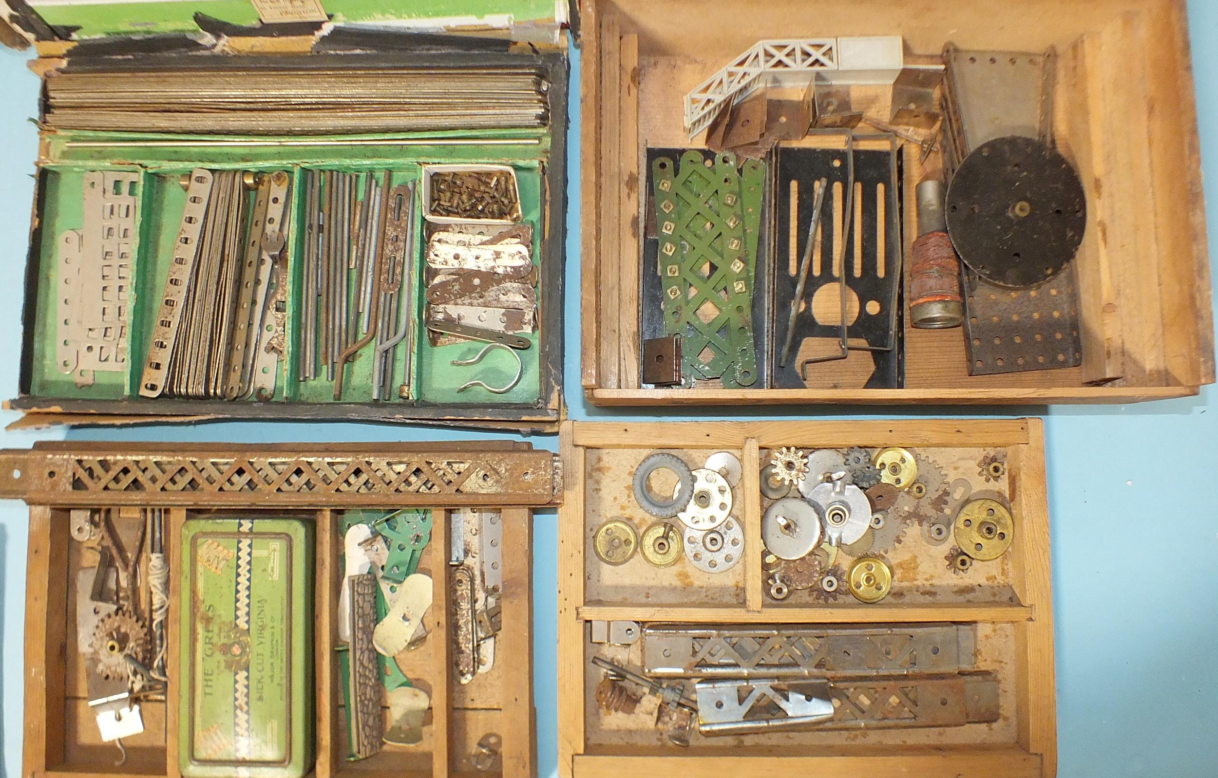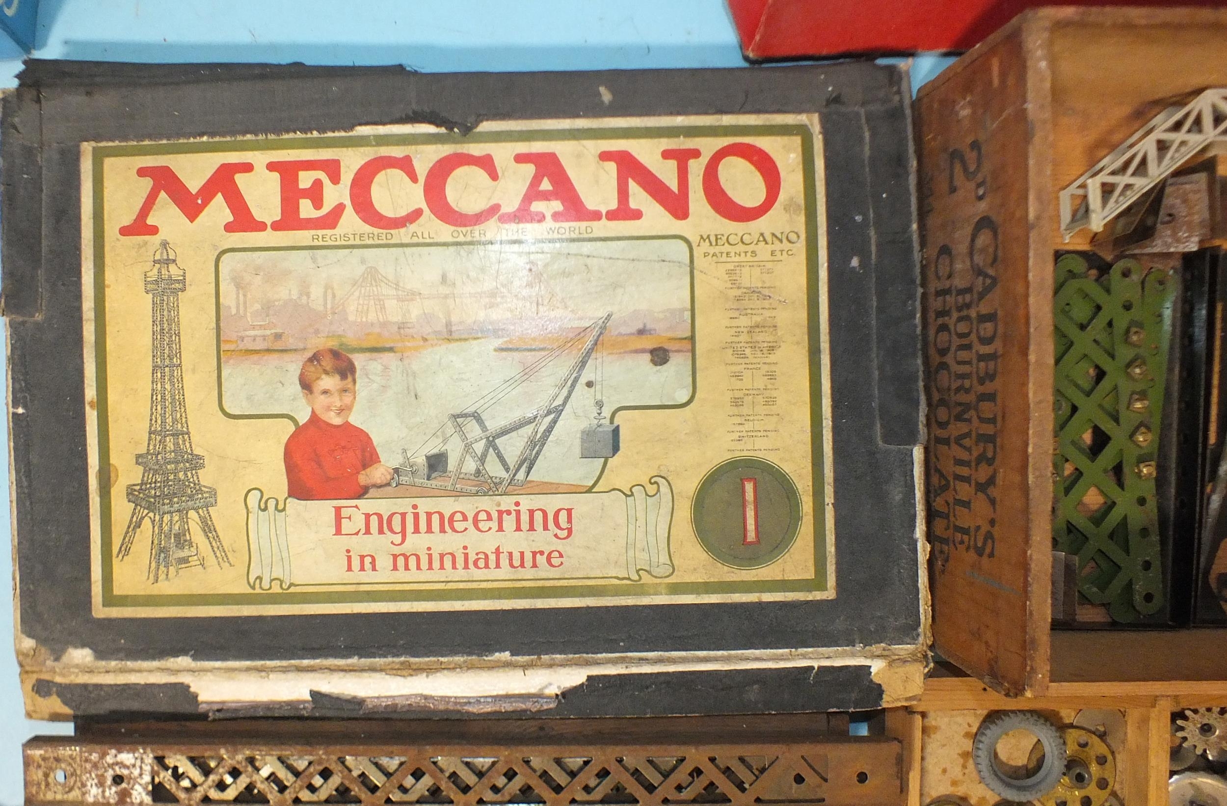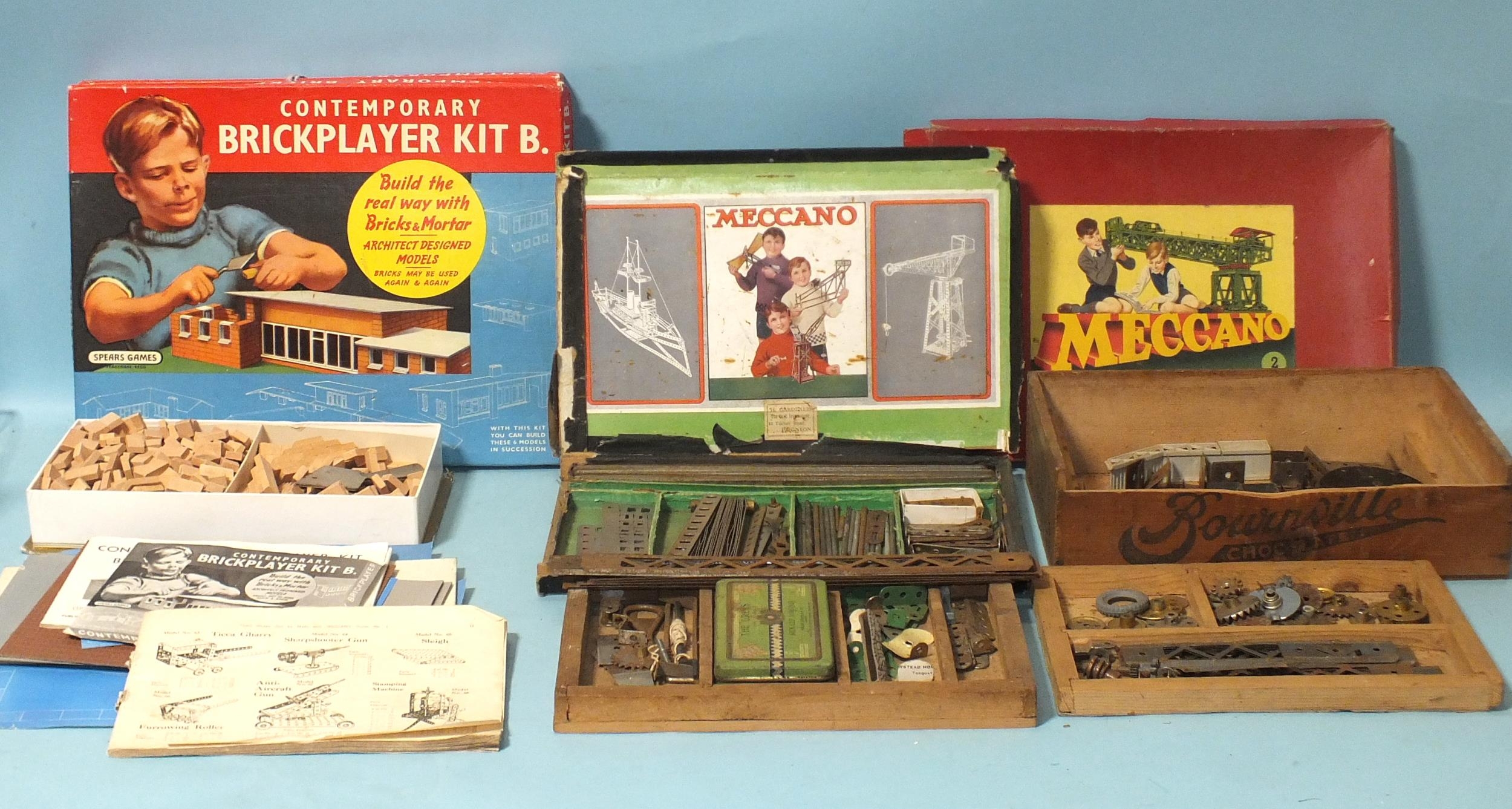 A Meccano Set No.1 "Engineering in Miniature", with nickel metal parts, boxed with partial instruction book, other vintage Meccano, Spears Games Contemporary Bricklayer kits, etc.