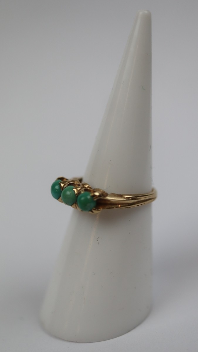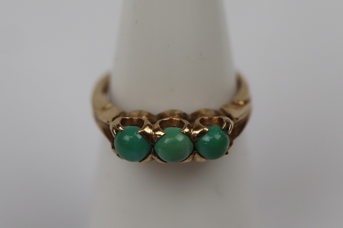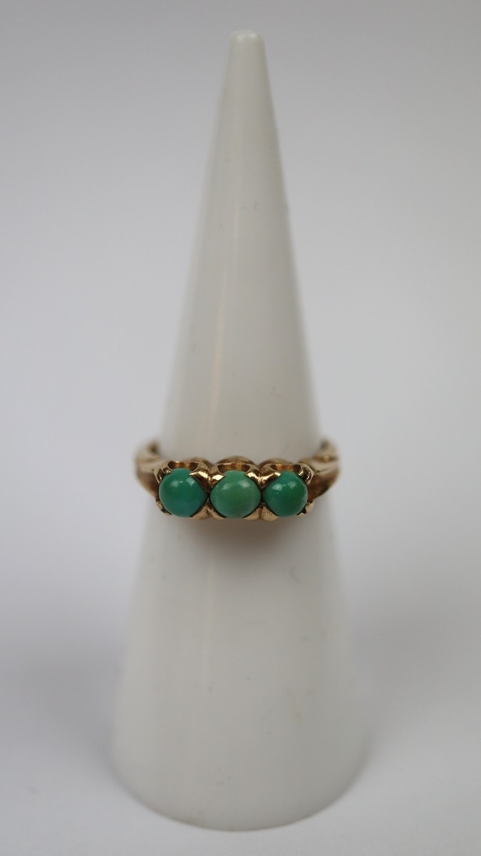 10K gold 'Saunders Lorie' Toronto 3 stone Turquoise ring - Size J
