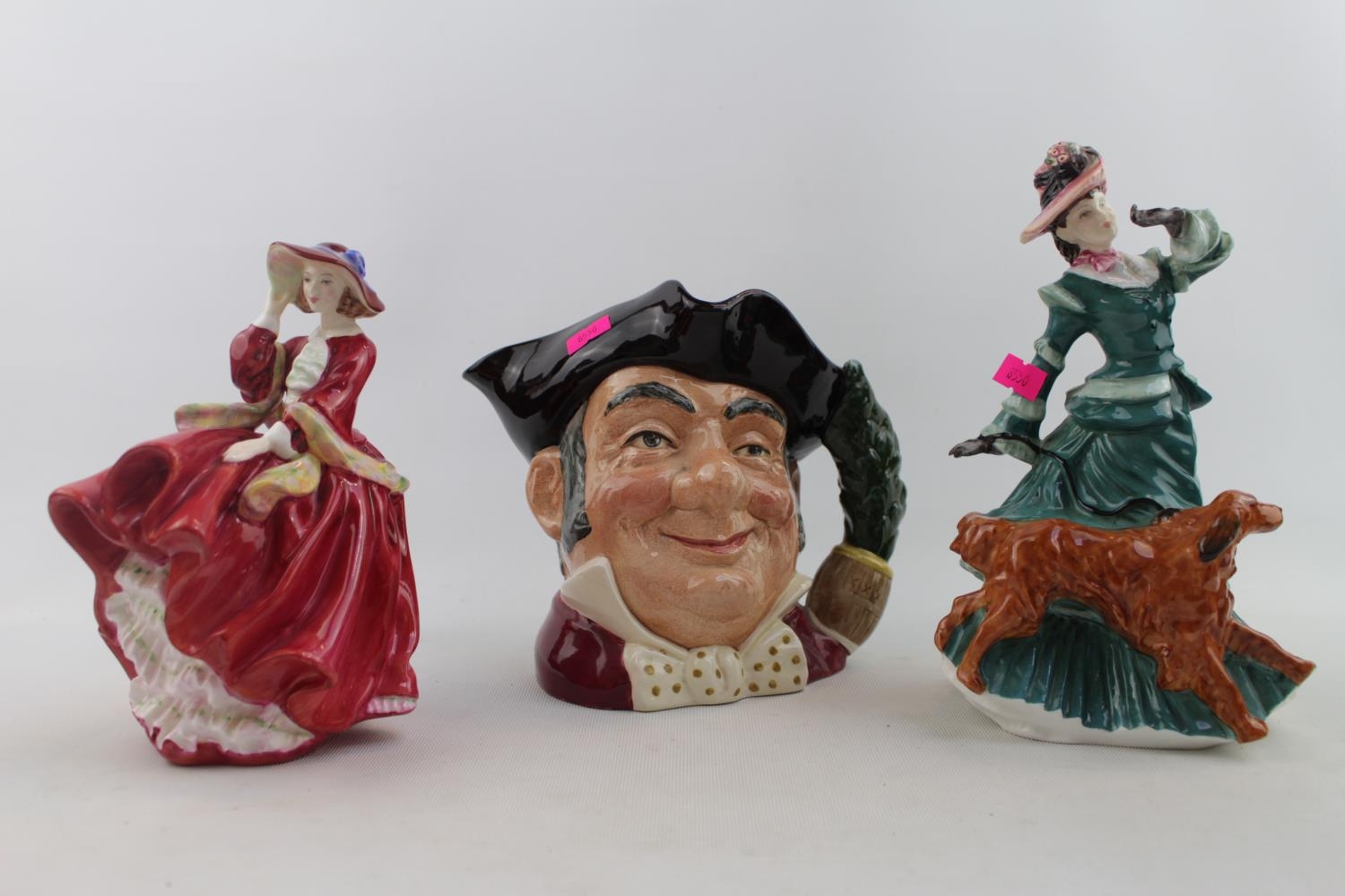 2 Royal Doulton Figurines Summertime and Top of the Hill and a Royal Doulton Mine Host Character Jug