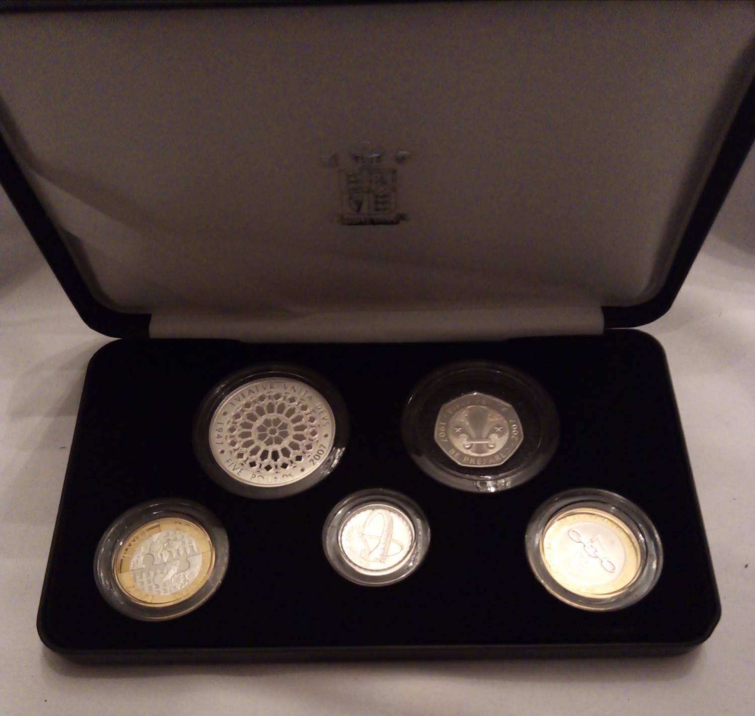 A SILVER FIVE COIN PIEDFORT PROOF SET, DATED 2007