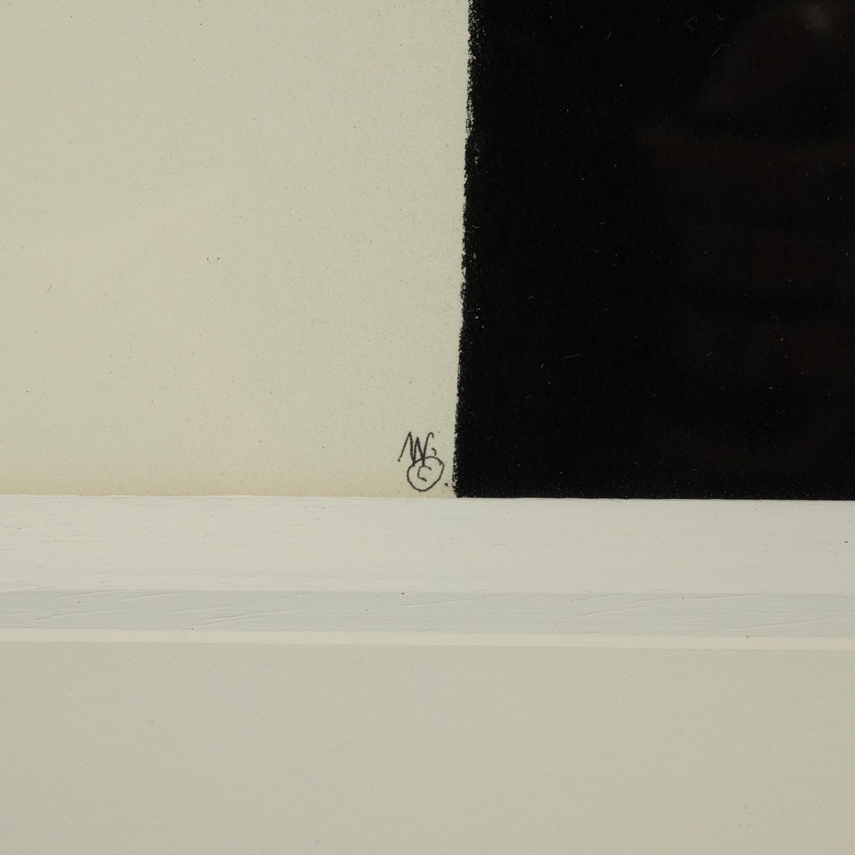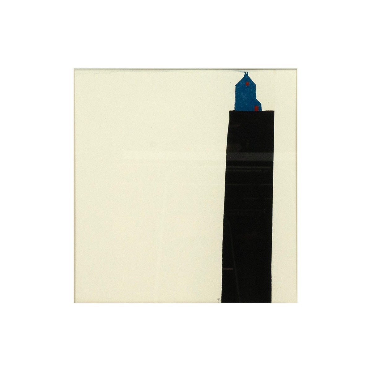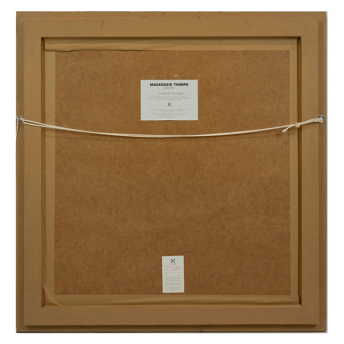 Mackensie Thorpe Destiny 'Living On The Edge' serigraph in colour depicting an elongated house, signed in pencil; Halcyon Gallery label; Exhibited at the Destiny show, Birmingham Museum & Art Gallery 2001,36cm x 38cm.