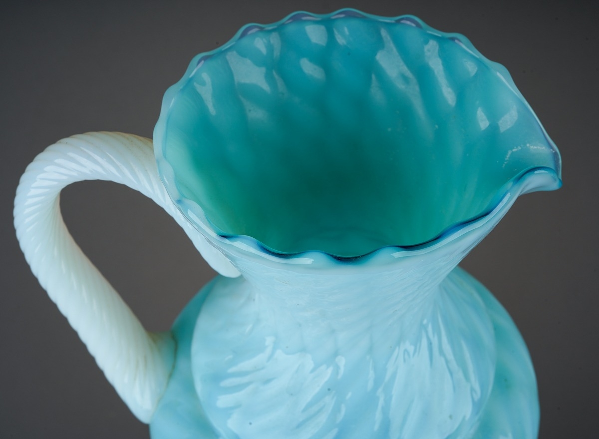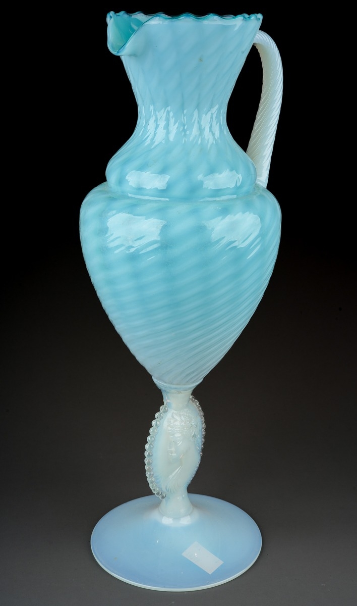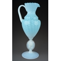 An Italian blue and vaseline glass ewer, lattice and swirl d...