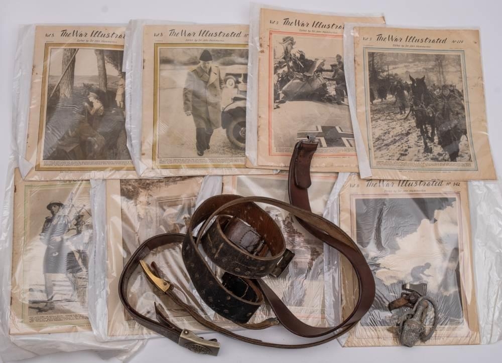 An Imperial Geman army belt: together with two Third Reich period army belts and a small collection of The War Illustrated magazines.