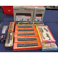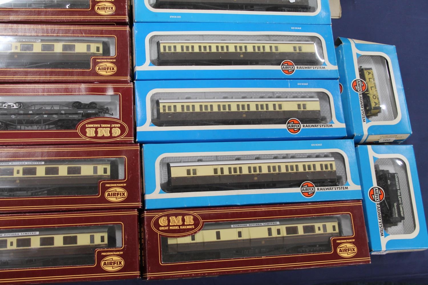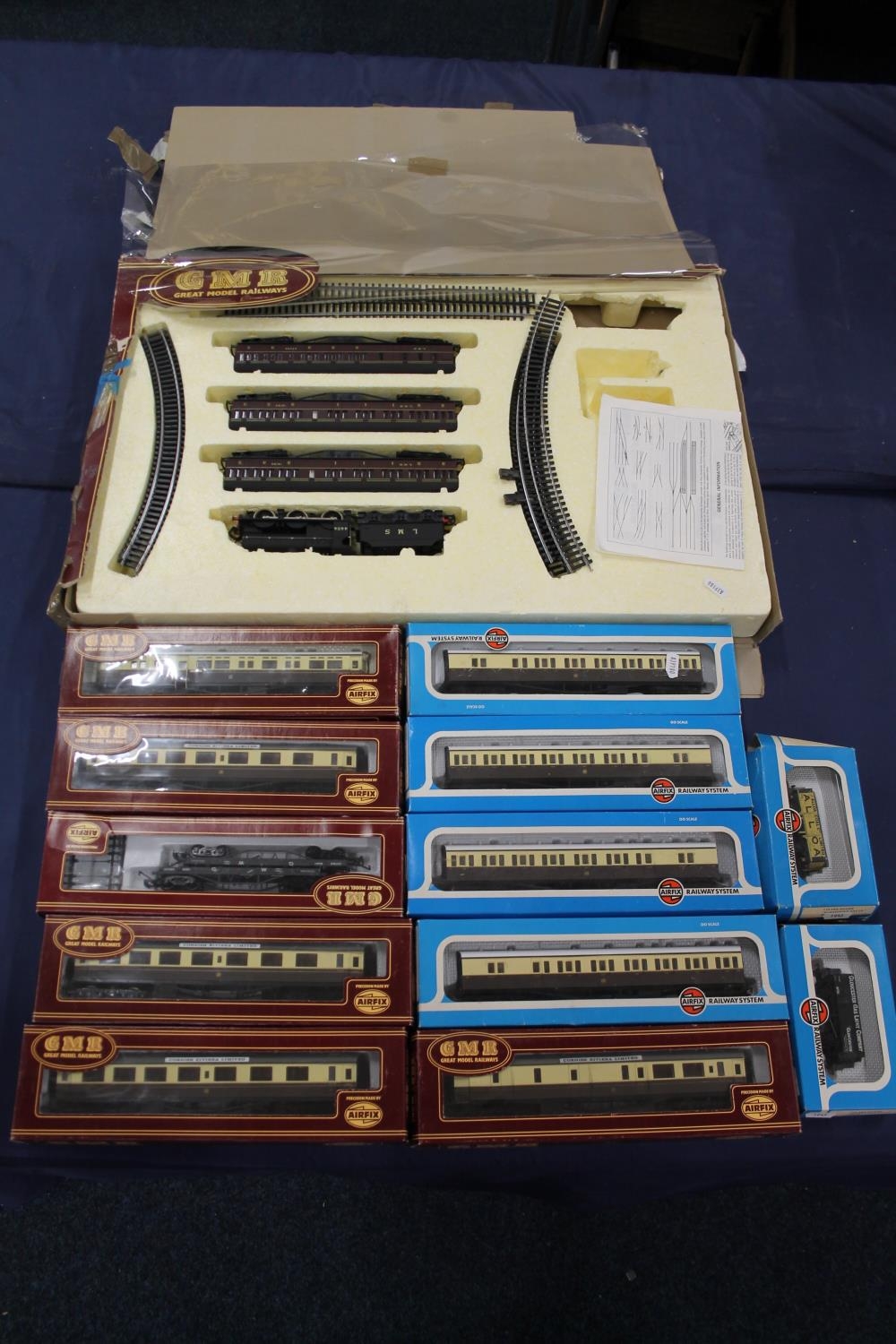 Airfix Great Model Railway GMR OO gauge model railways to include passenger train set with 0-6-0 tender locomotive 4454 LMS black, three 542076 centenary composite coaches Cornish Riviera Limited, four 542500 Class B Suburban brake coach GWR etc. each boxed. (13)