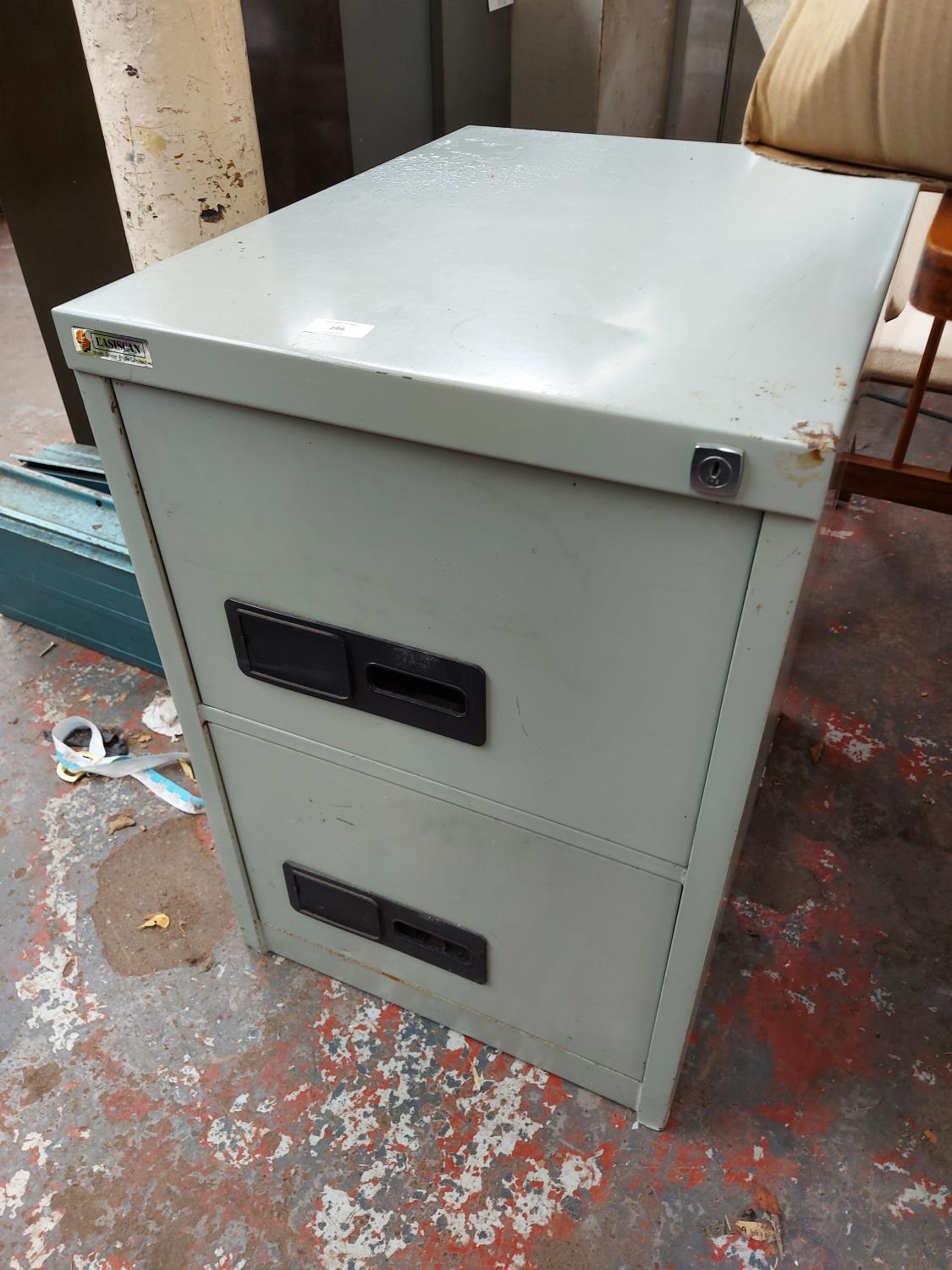 A Sheerpride Easiscan two drawer metal office filing cabinet