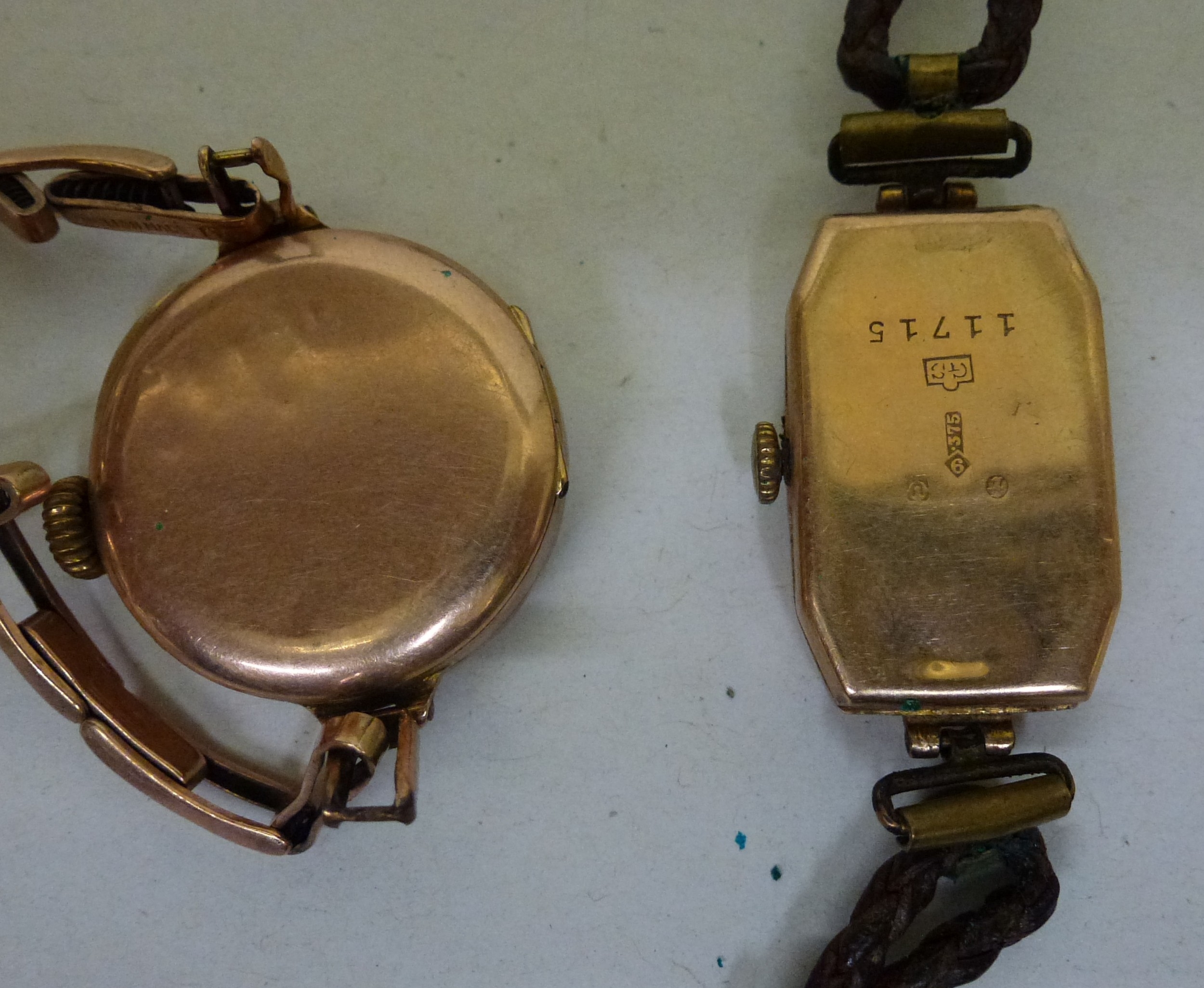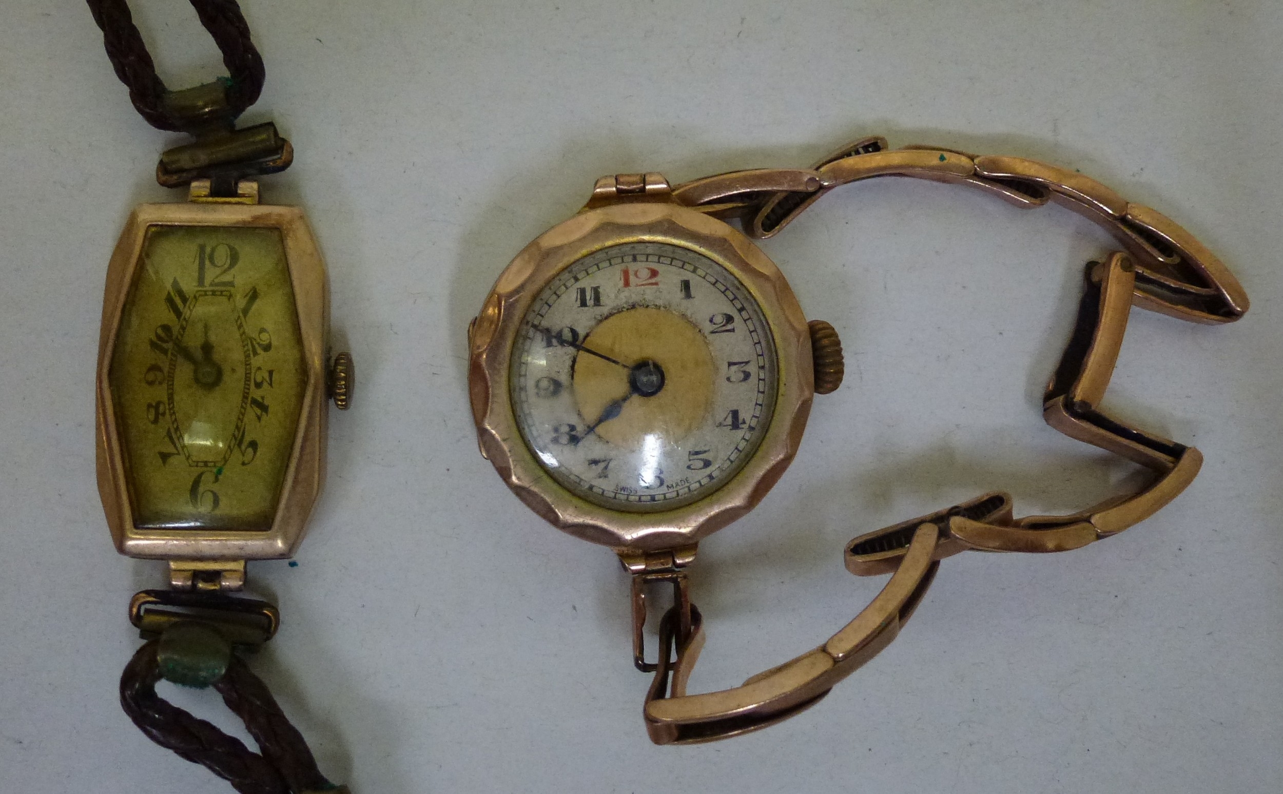Two ladies Victorian 9ct gold cased wristwatches, each faced by an Arabic dial