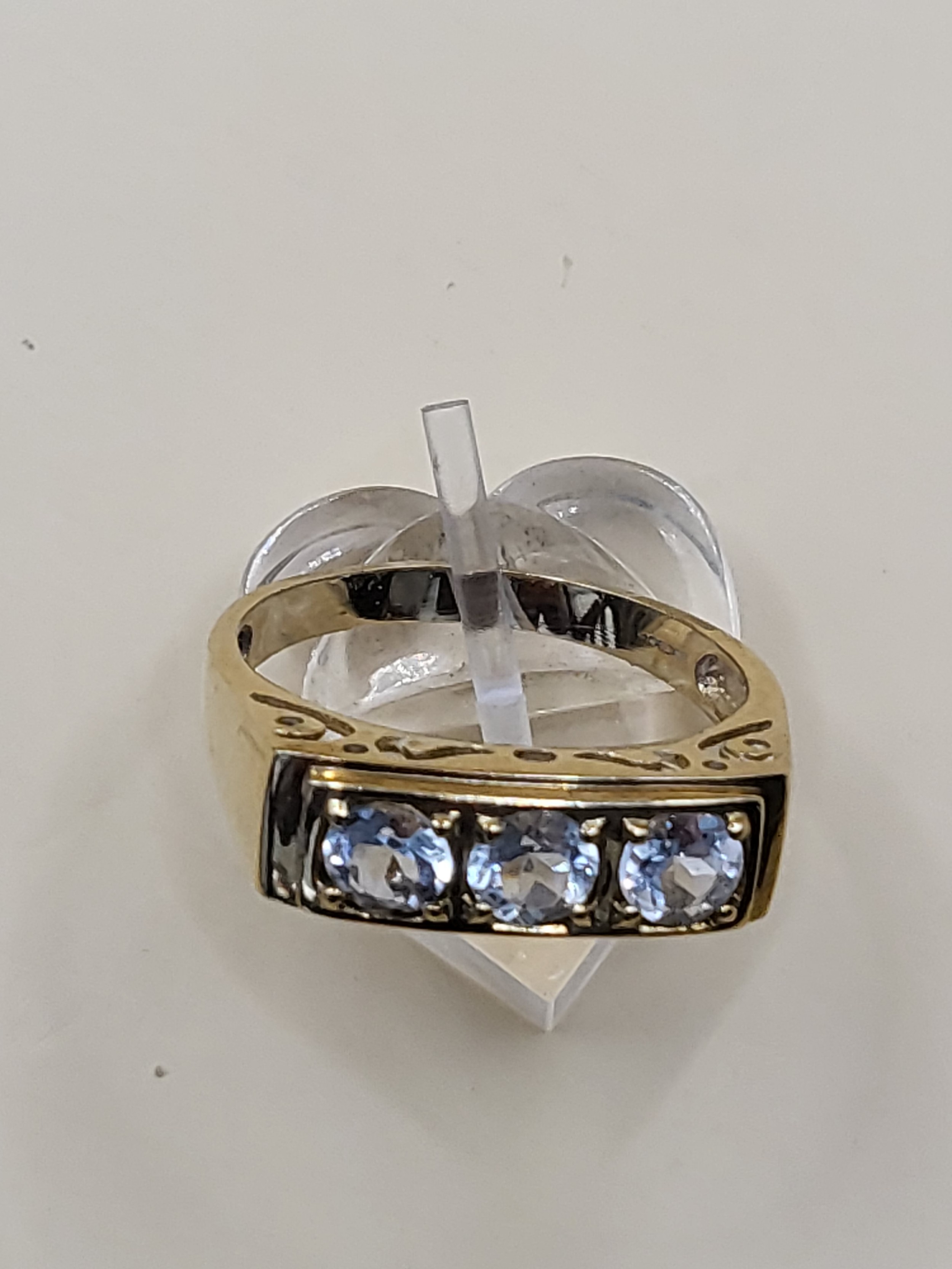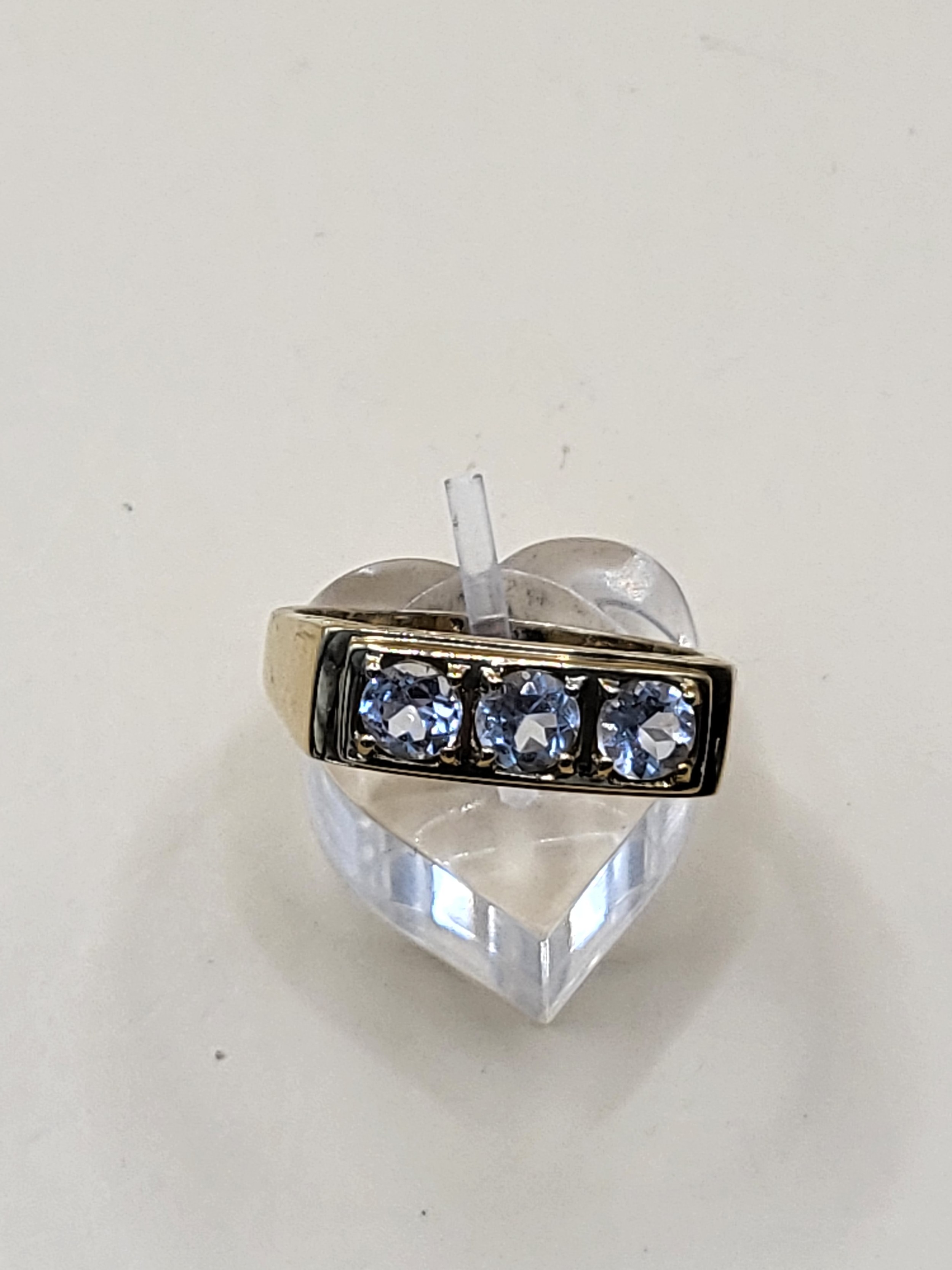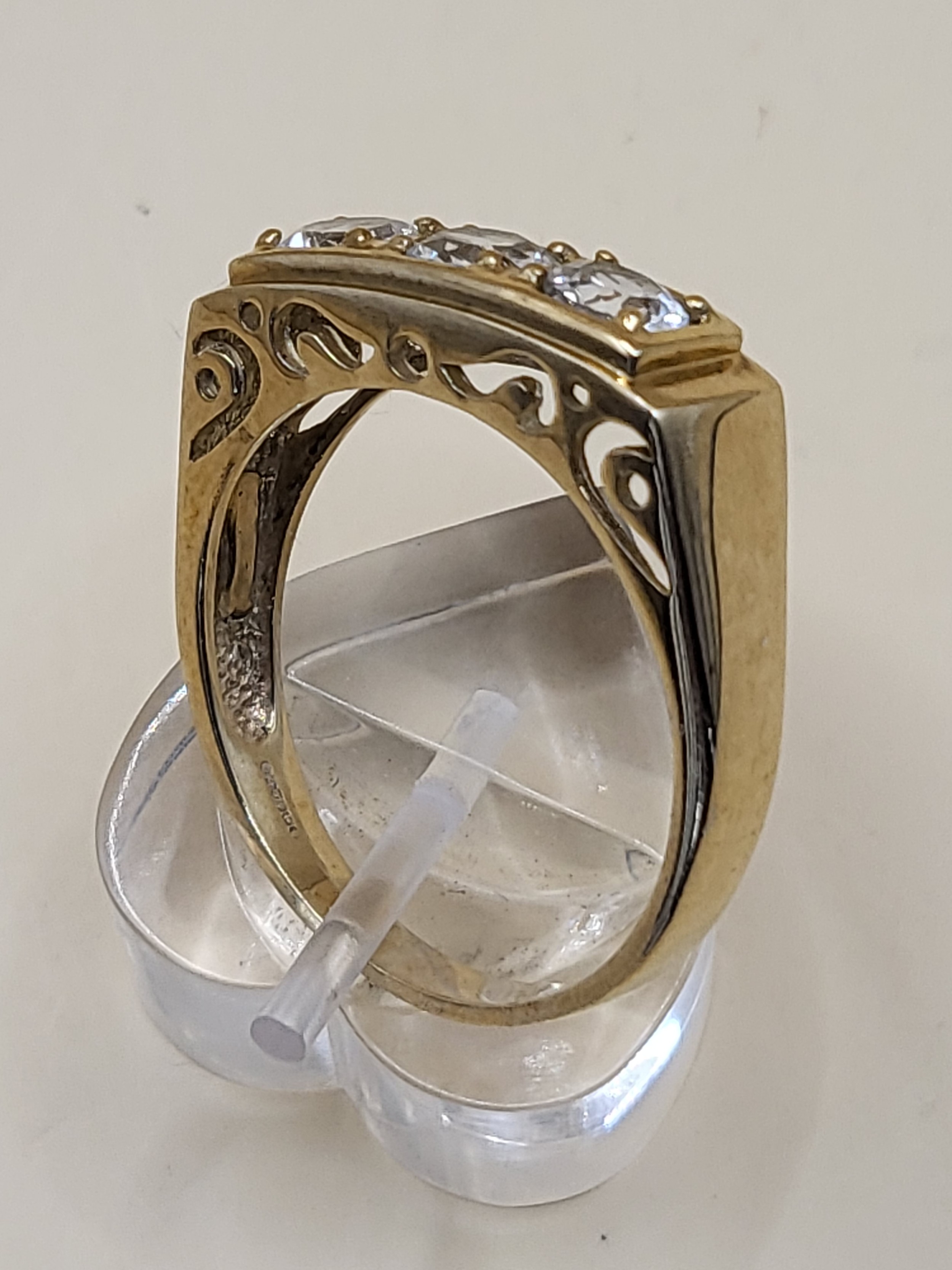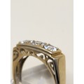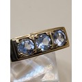 9ct Gold Gent's Three Stone Ring Possible White Sapphire or Moissanite As Test High on Diamond Tester But Not All Way to Diamond Size X Weighs 5g Fully Hallmarked