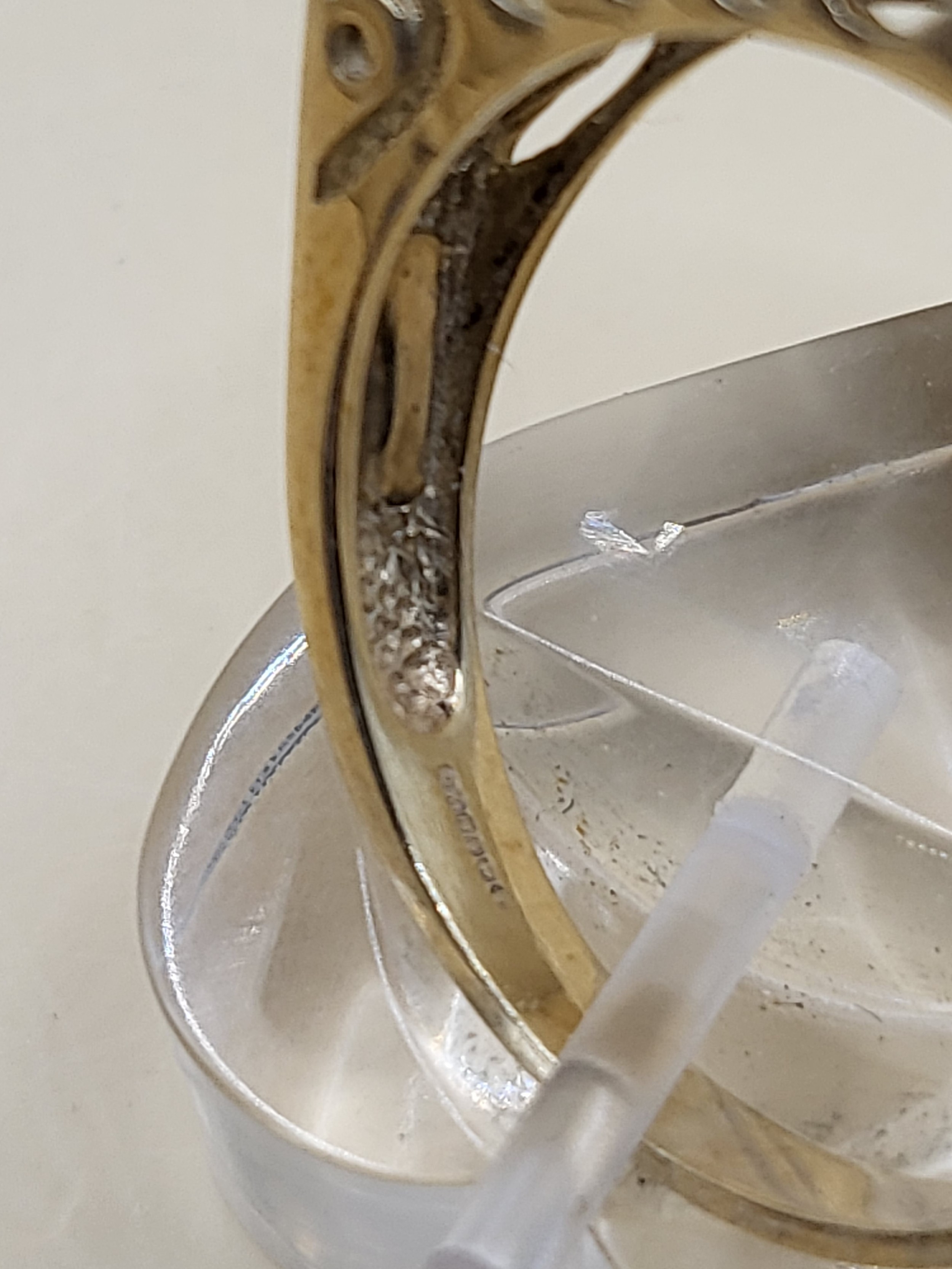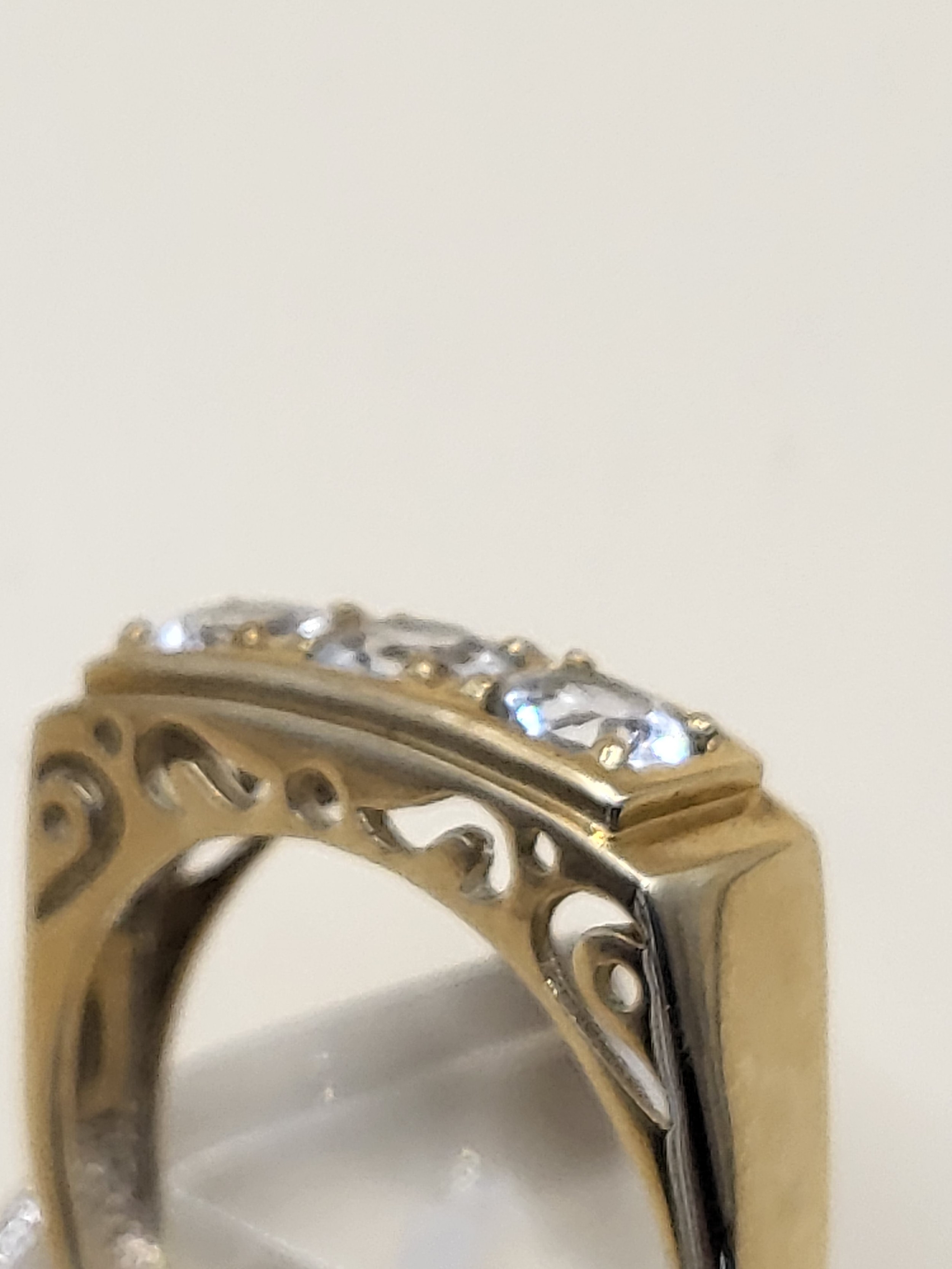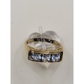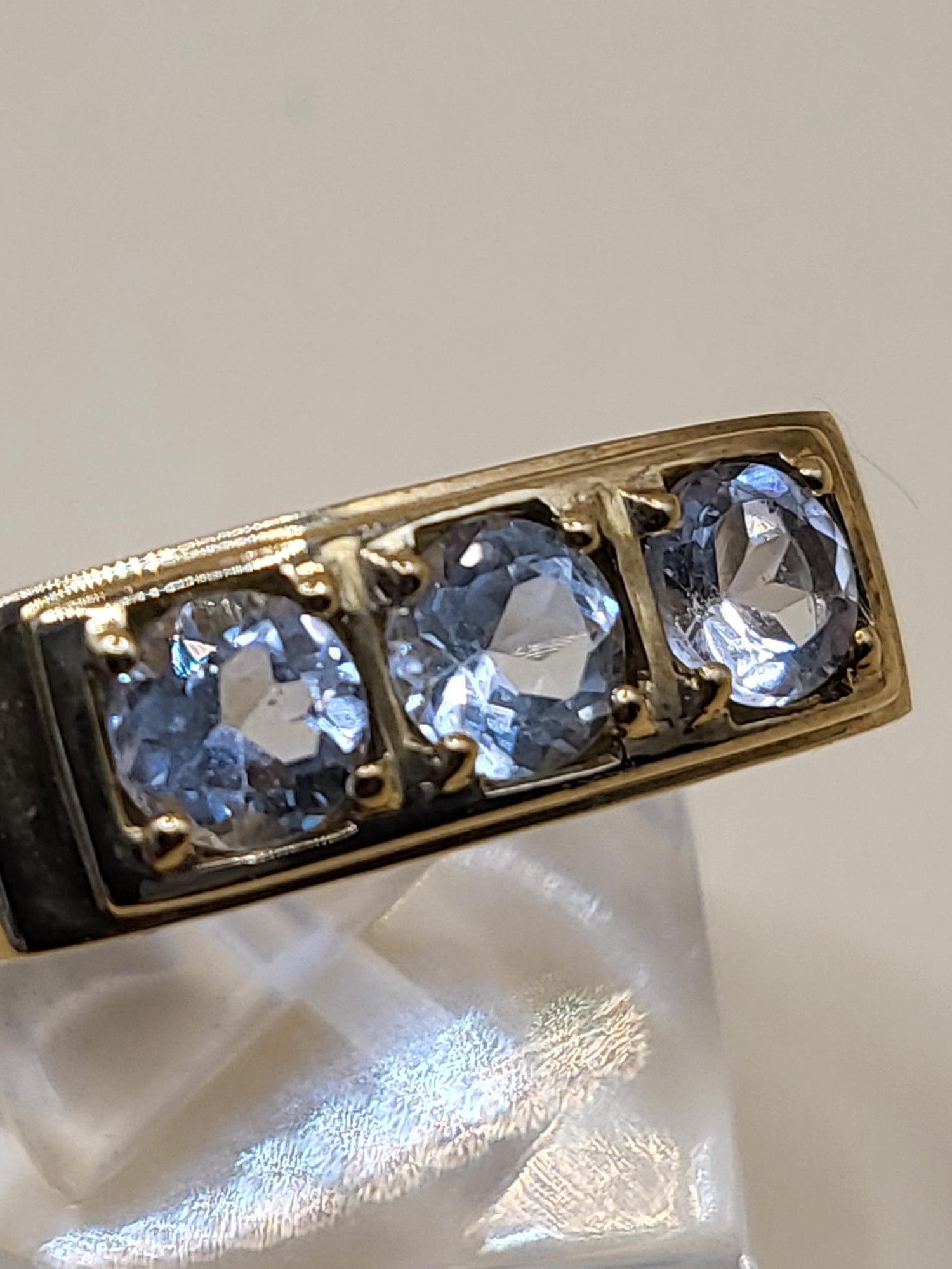 9ct Gold Gent's Three Stone Ring Possible White Sapphire or Moissanite As Test High on Diamond Tester But Not All Way to Diamond Size X Weighs 5g Fully Hallmarked