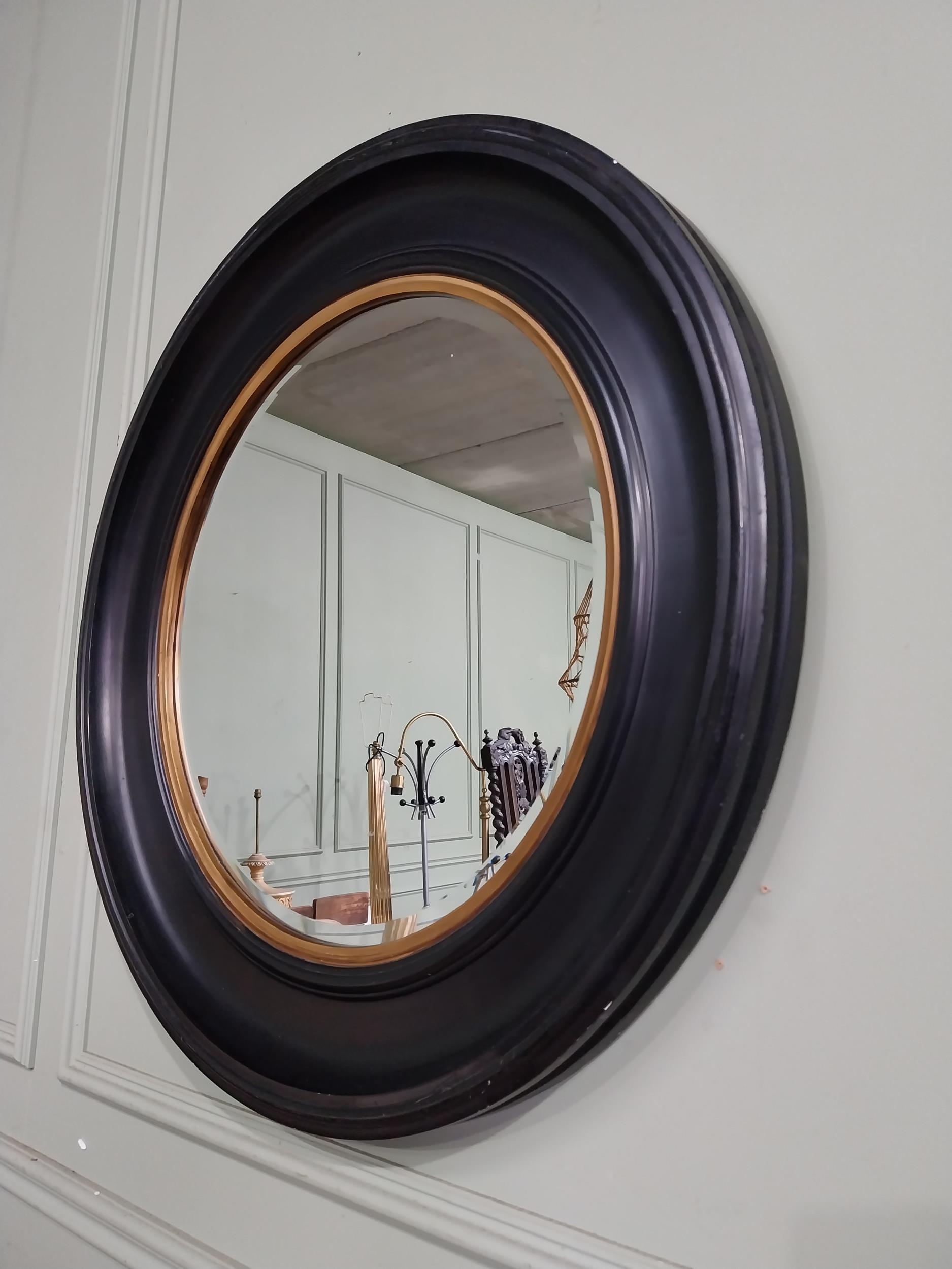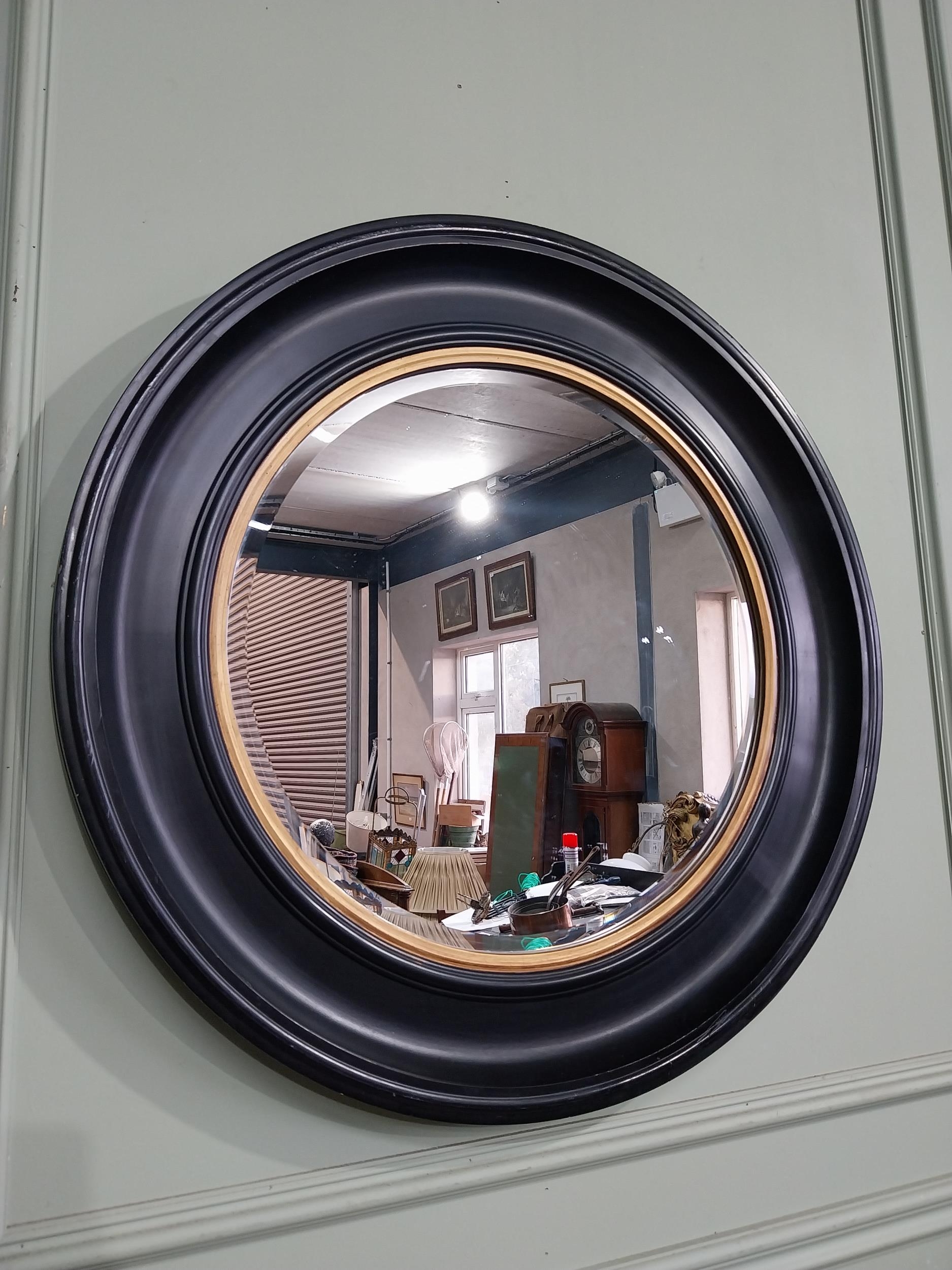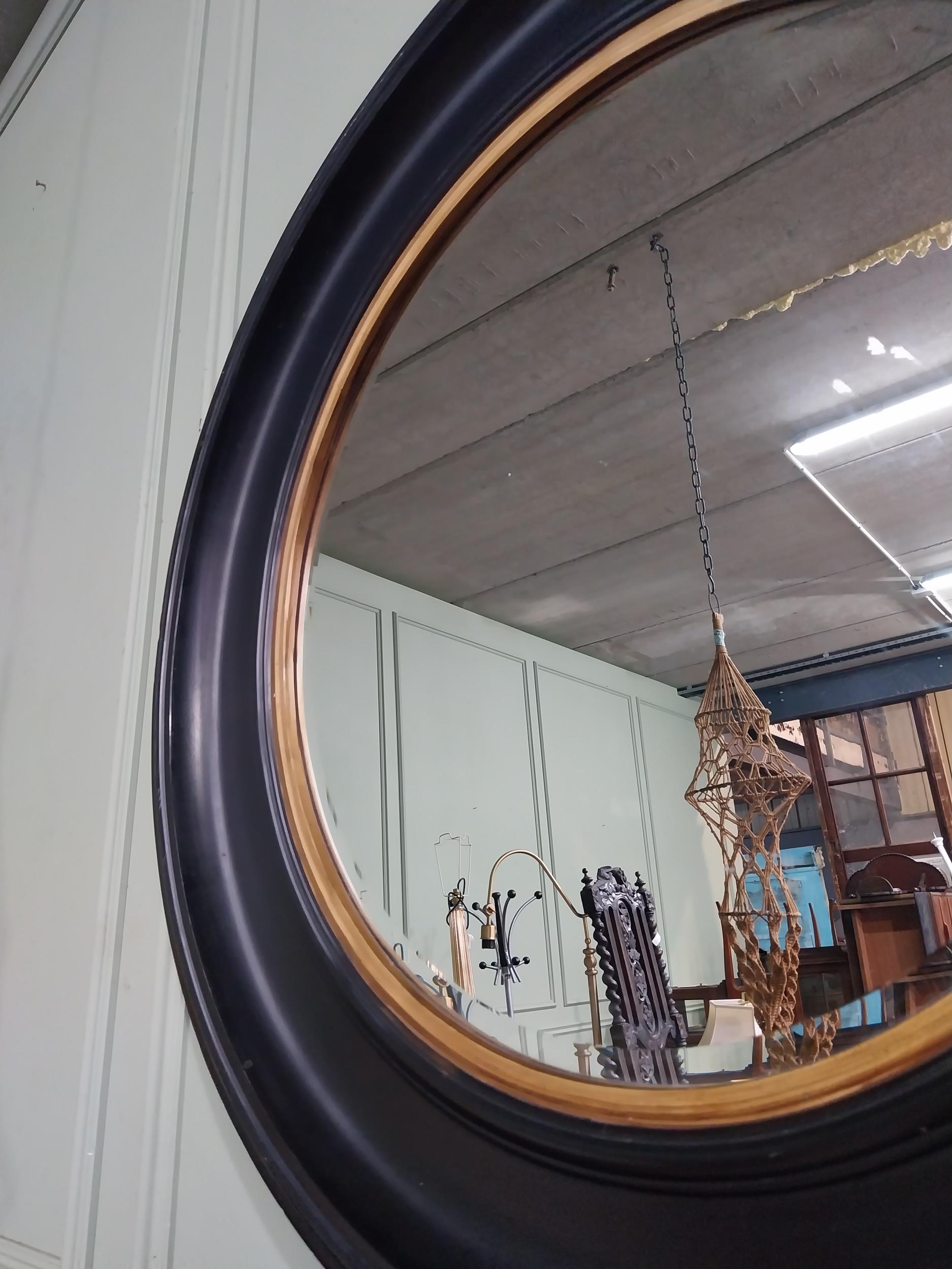 Good quality ebonised and gilt circular wall mirror. {80 cm Dia.}.