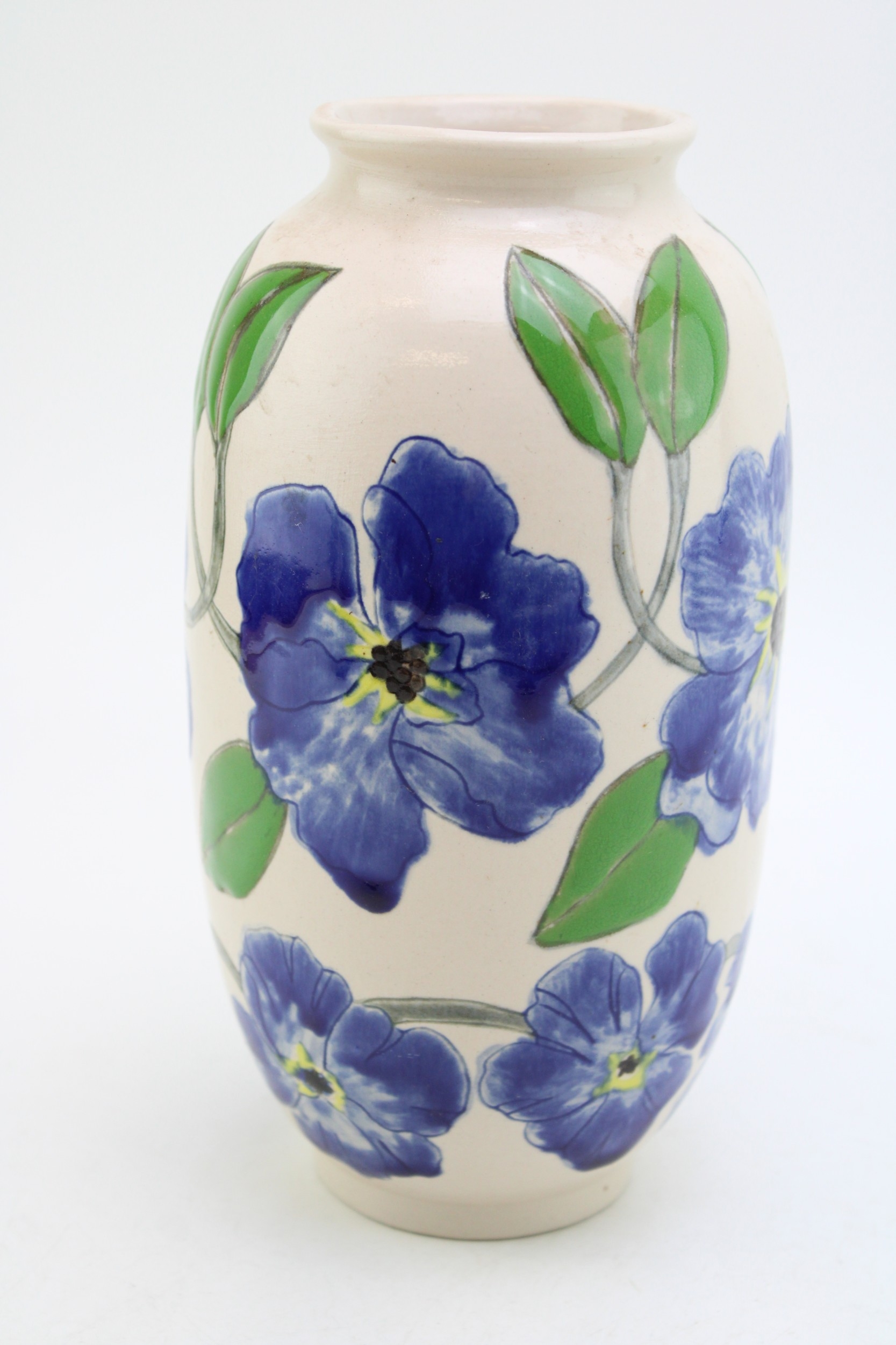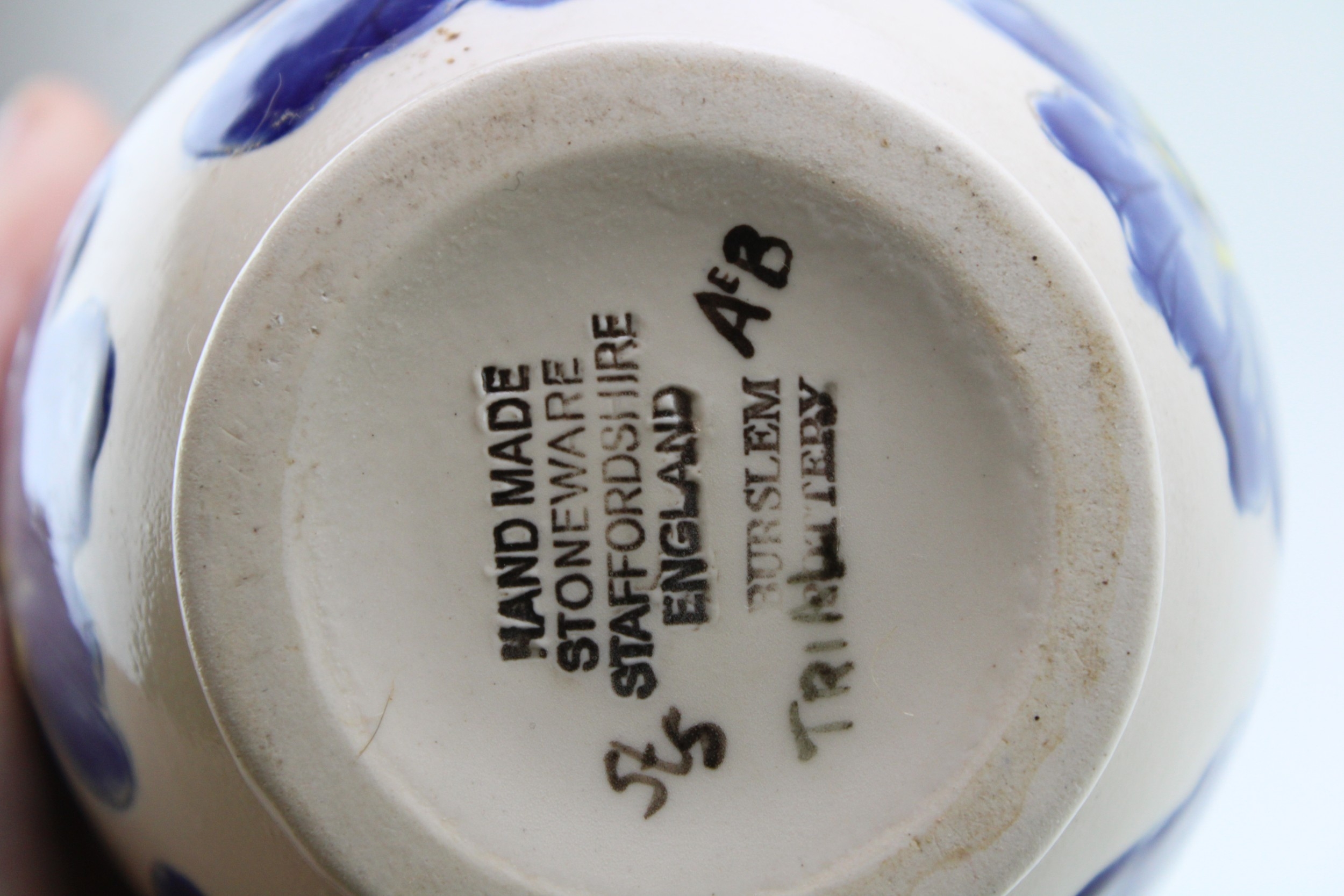 Burslem Pottery blue floral trial vase, 22cm tall.