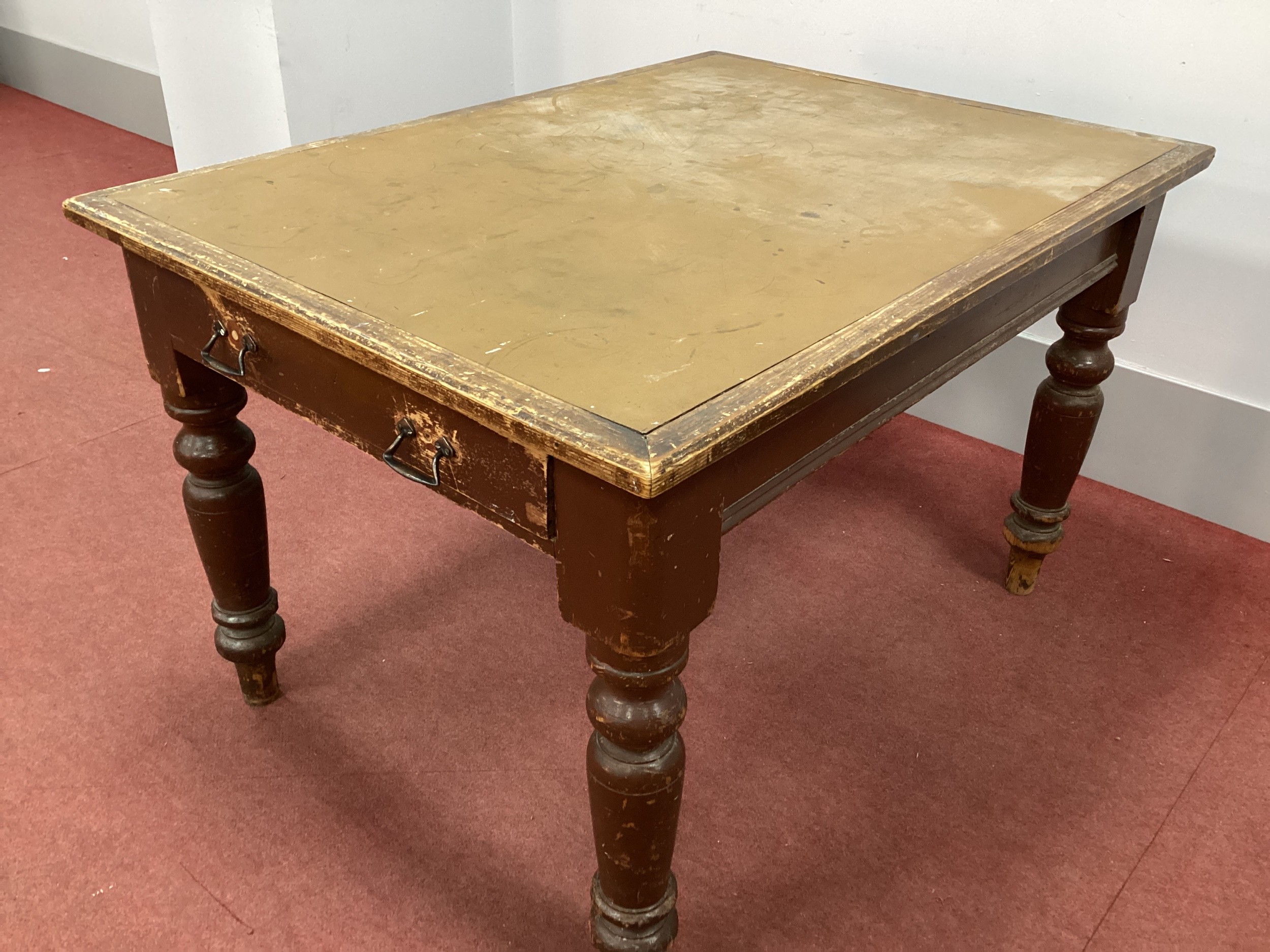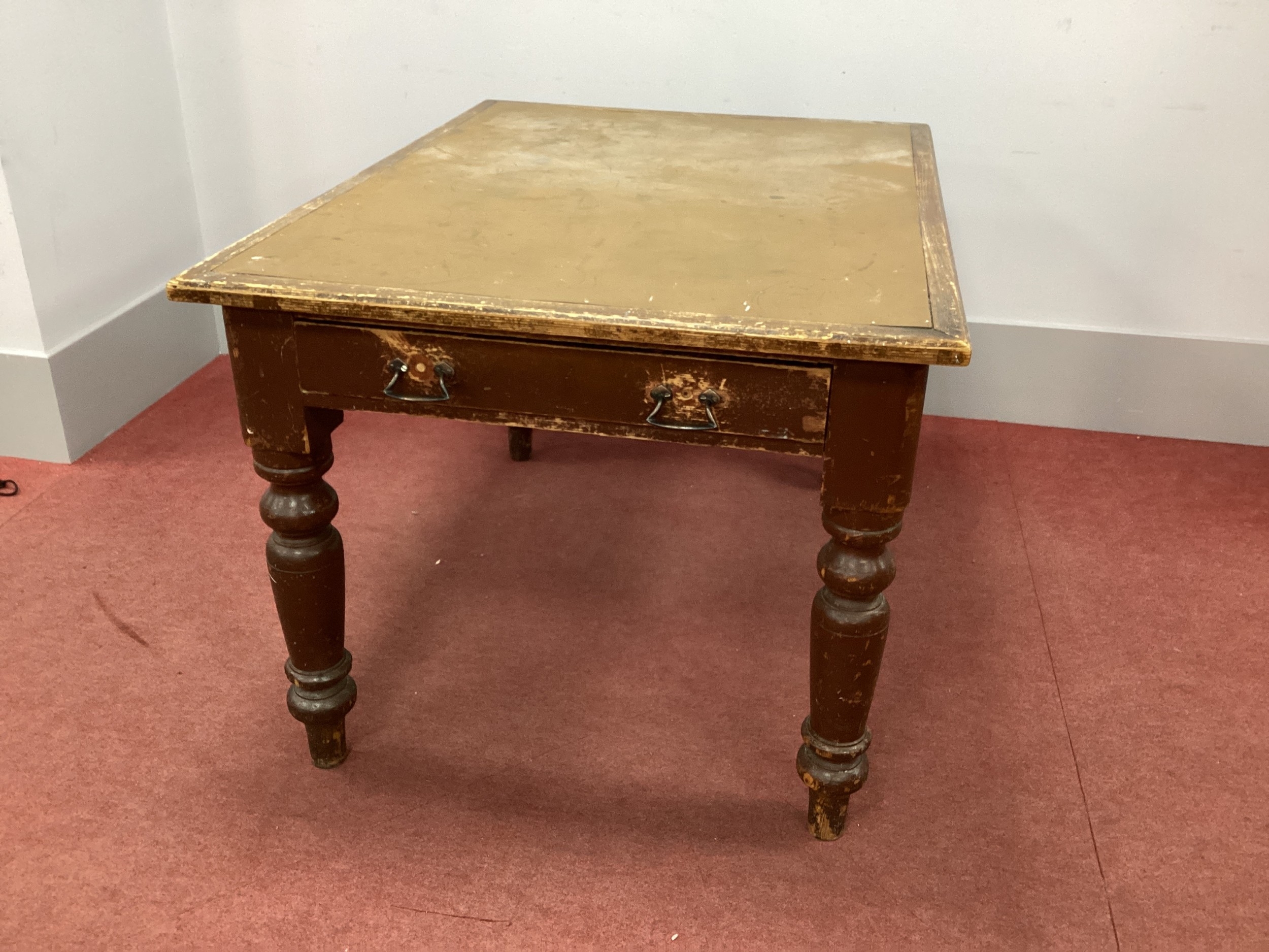 A XIX Century Painted Pine Table, with single drawer on turned and block supports, 120cm wide.