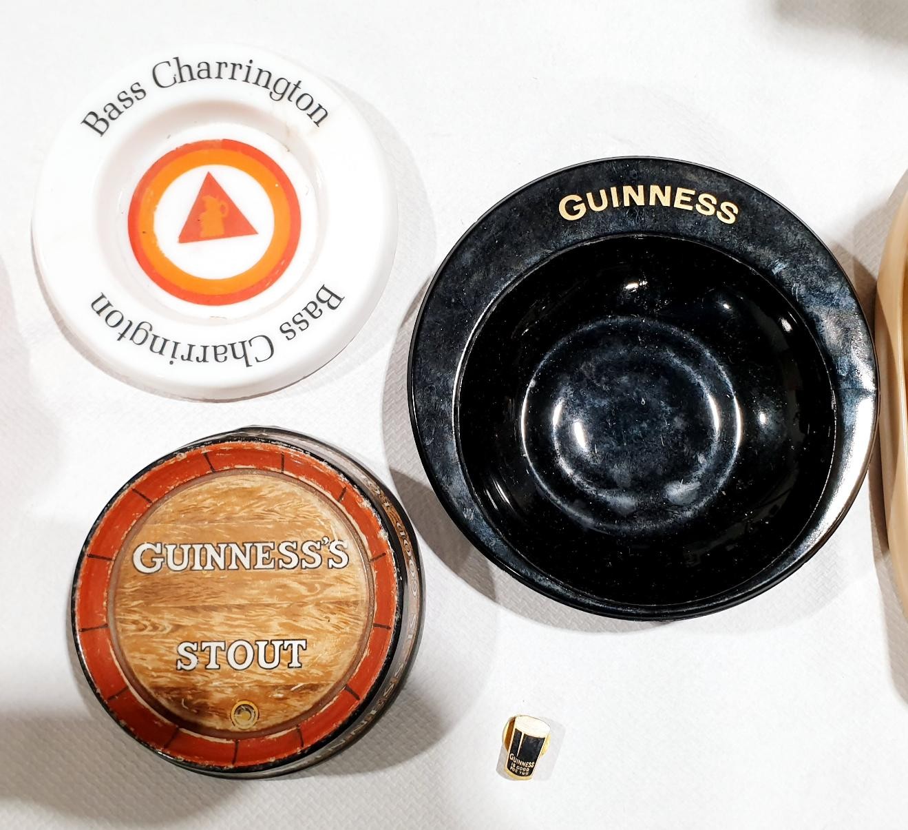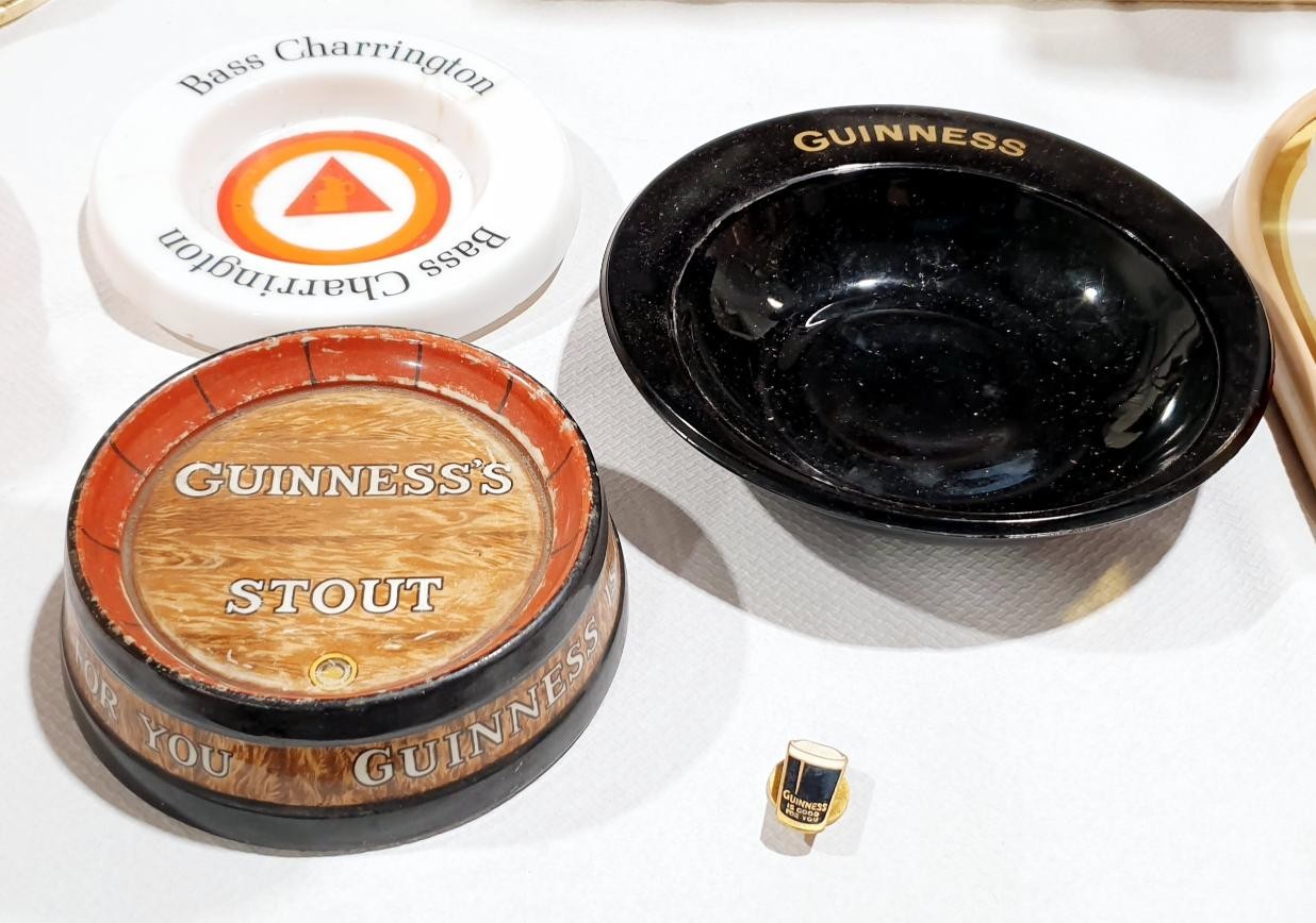 A vintage ceramic Guinness ashtray by Minton's, diameter 12.5cm together with a glass Guinness ashtray, a Guinness badge and a Bass Charrington ashtray. No shipping. Arrange collection or your own packer and shipper, please. Electricals are sold as scrap.