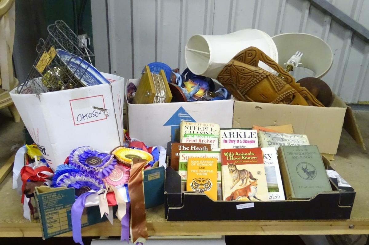 A large quantity of miscellaneous items to include trophies, lamps, books, ceramics, etc