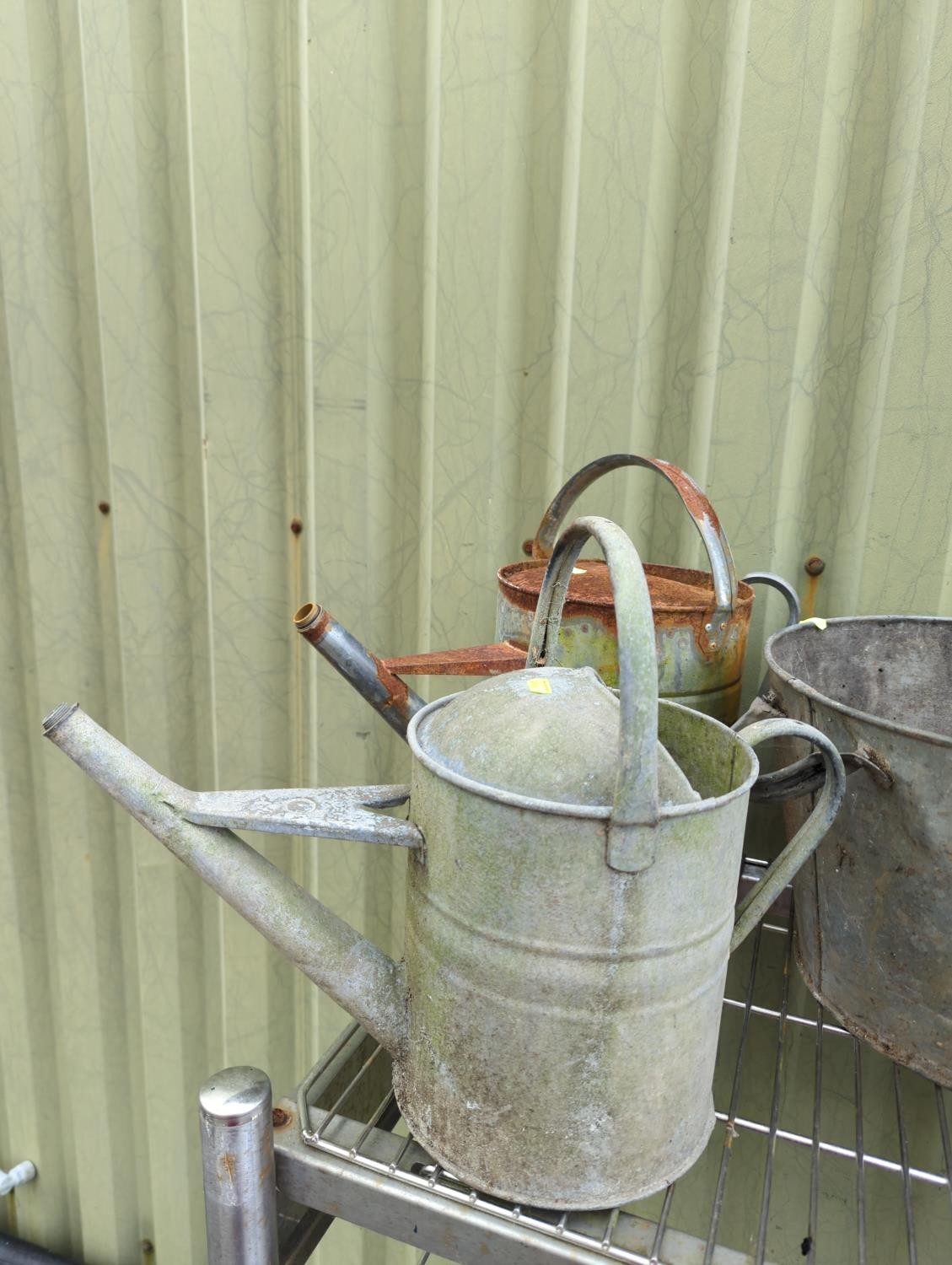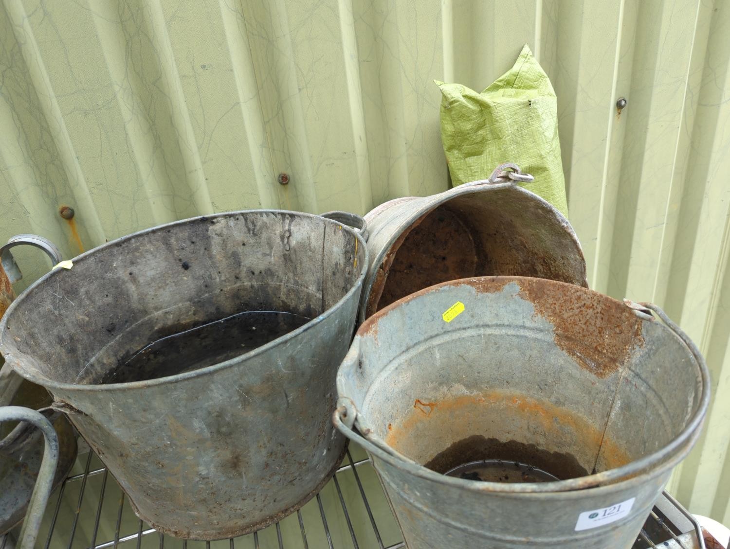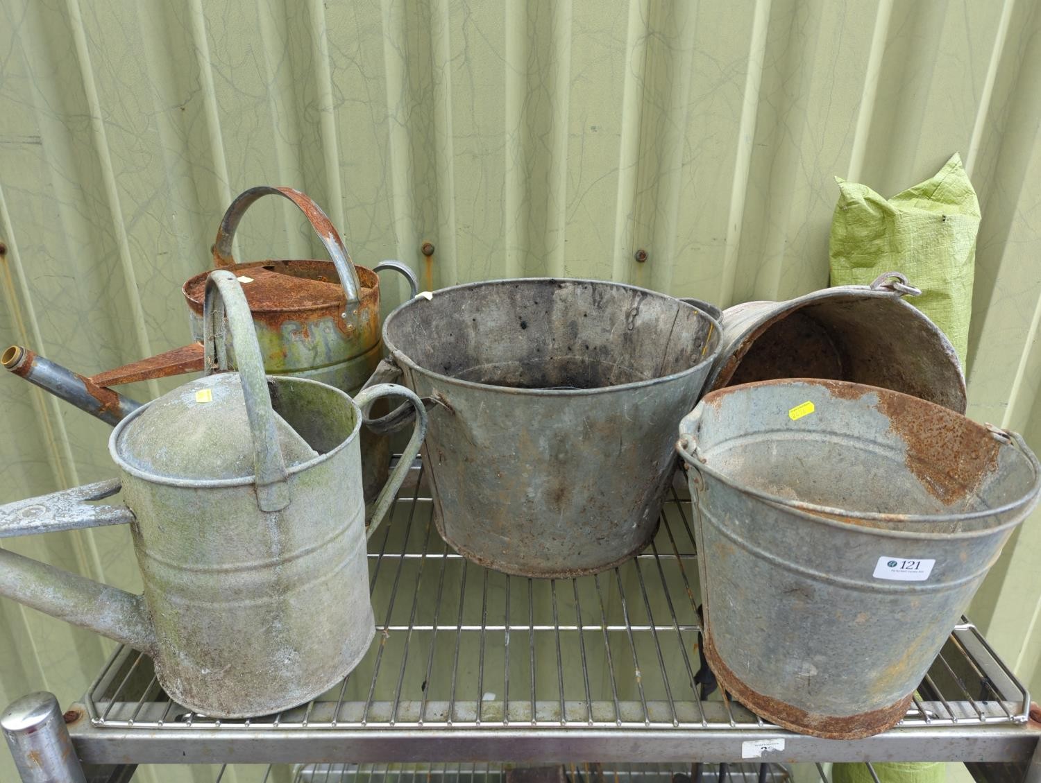 2 x galvanised watering cans + 3 x galvanised buckets.