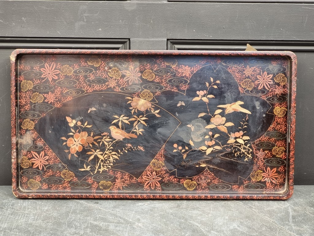 A large Japanese lacquer tray, 72cm wide.