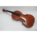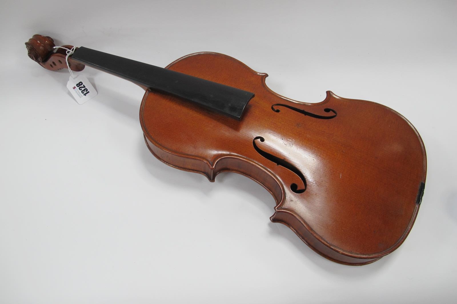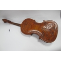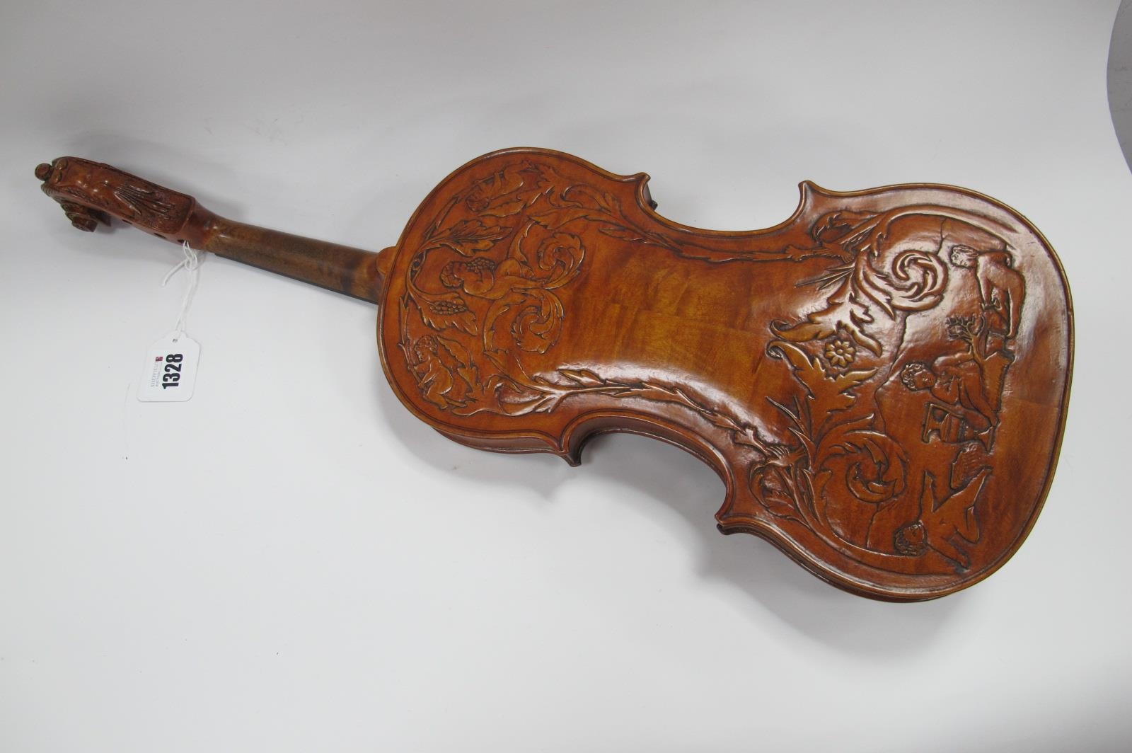 A Walter H Mayson Manchester 1881 Exhibition Violin, with scroll top, two piece back with carved cherub and foliage decoration,