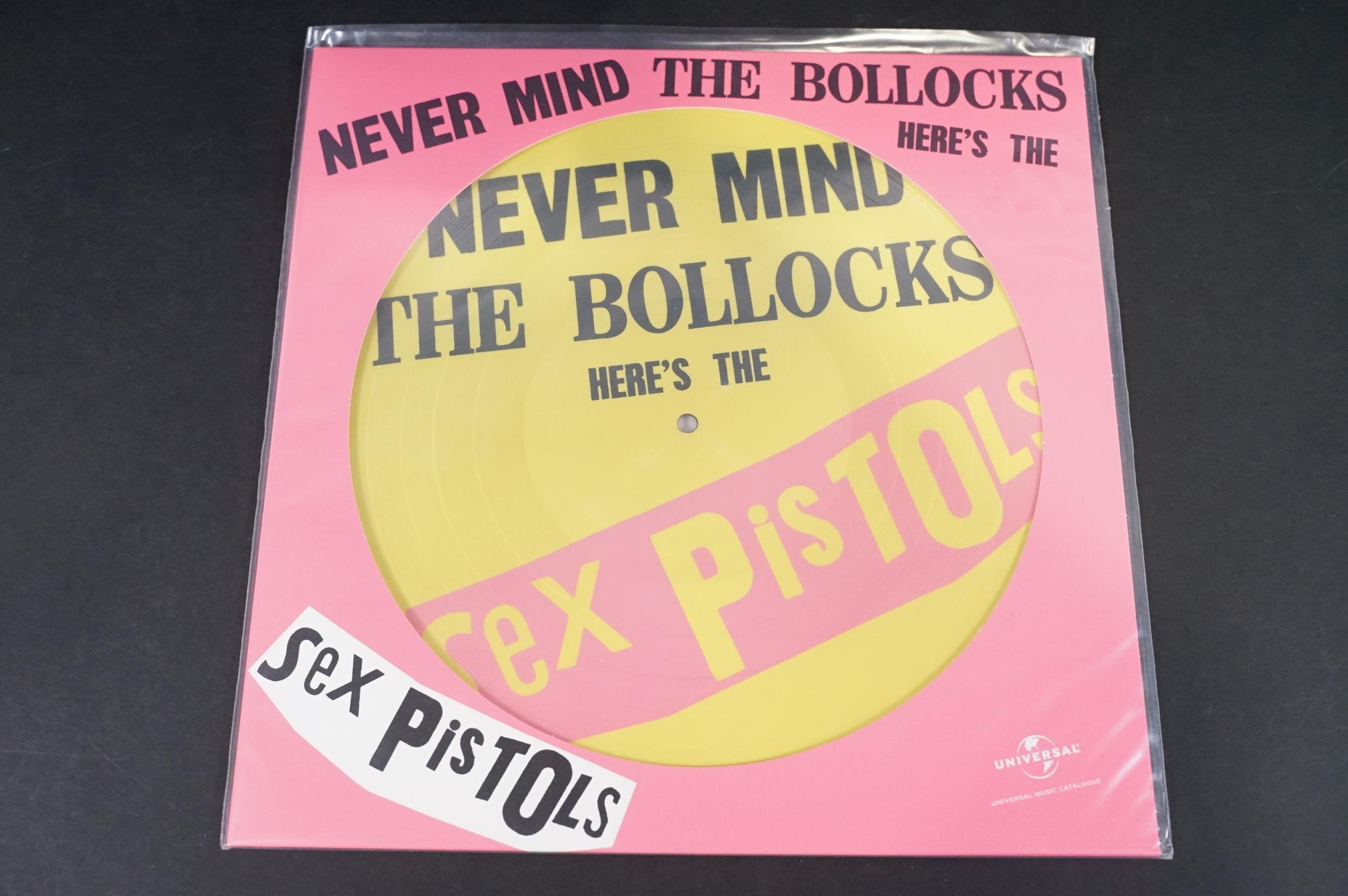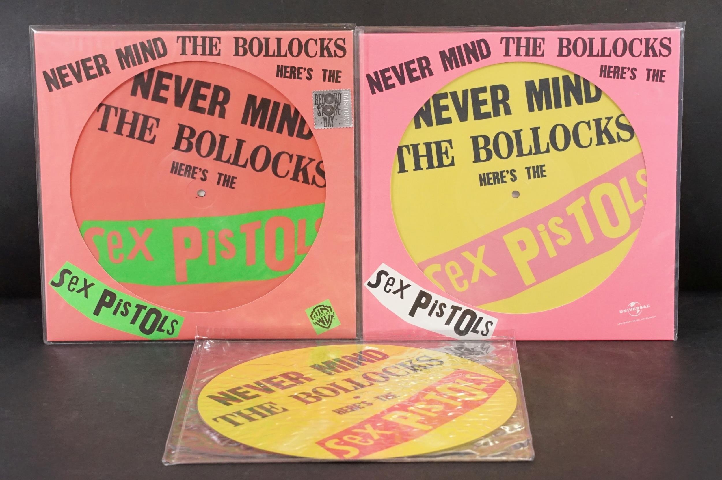 Vinyl - 3 picture disc copies of Sex Pistols Never Mind The Bo****ks, Here's The Sex Pistols LP to include Universal Music – SexPisPic77 (UK 2015), Virgin - V 2086 (UK 2006), Warner Bros. Records / Rhino Records – R1 3147 (USA 2016 record shop day). Condition EX+