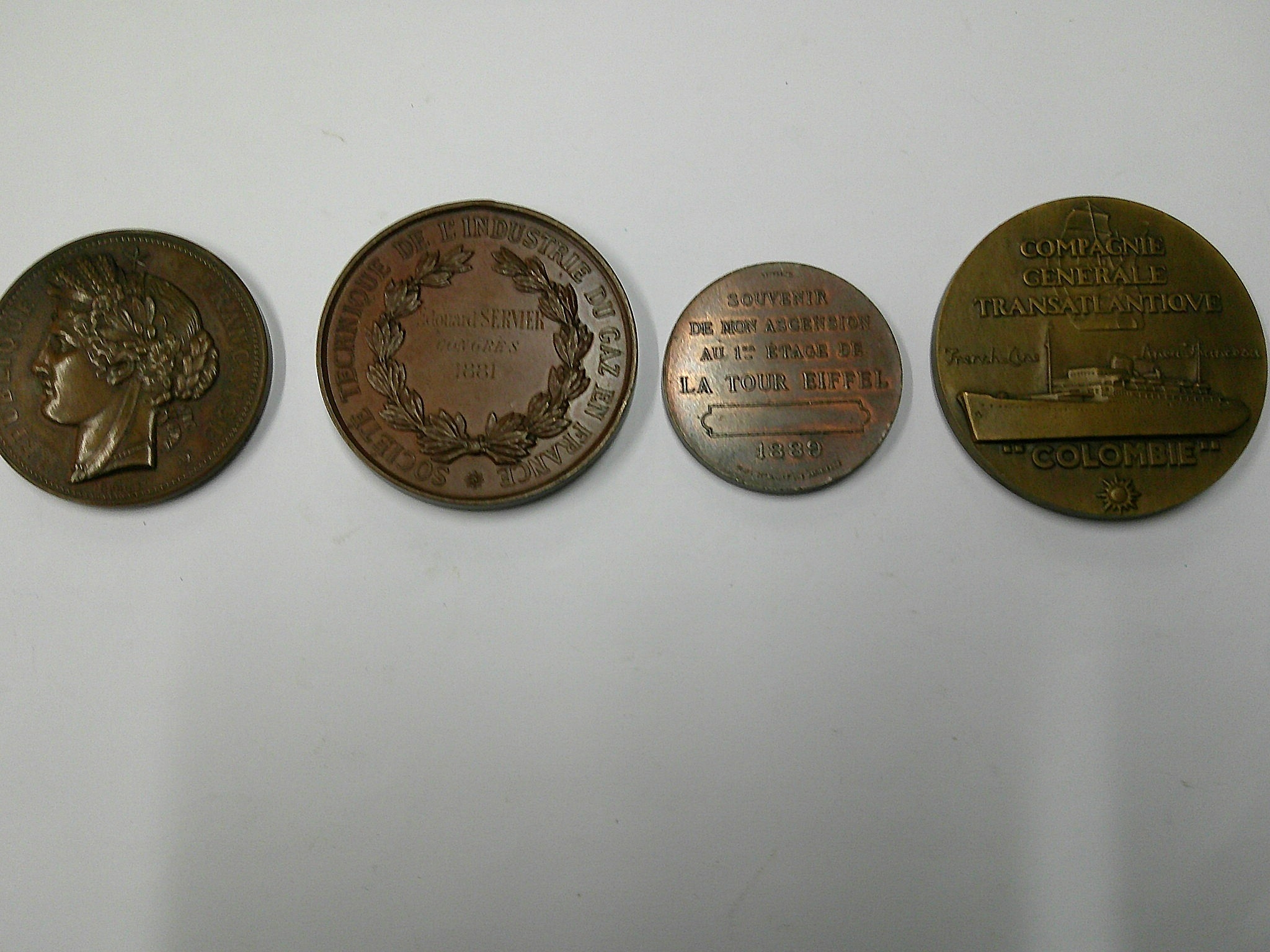 Four antique and later French award medallions, to include 1878 Paris Exhibition, all in good condition