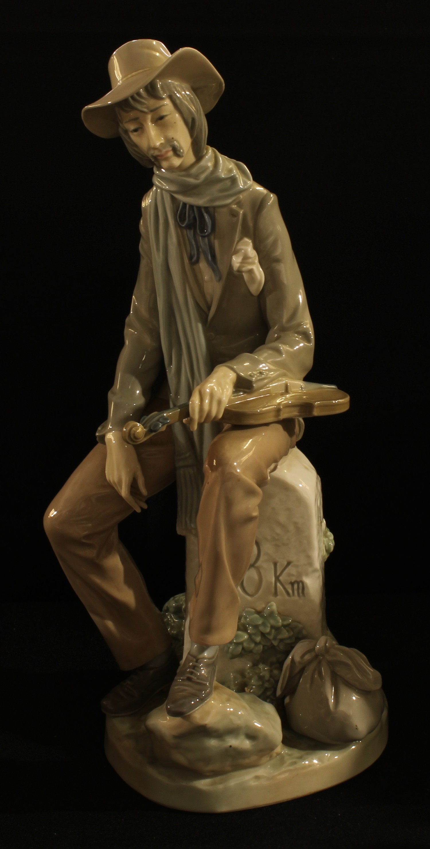 A Lladro porcelain figure, Travelling Violinist, 35cm high