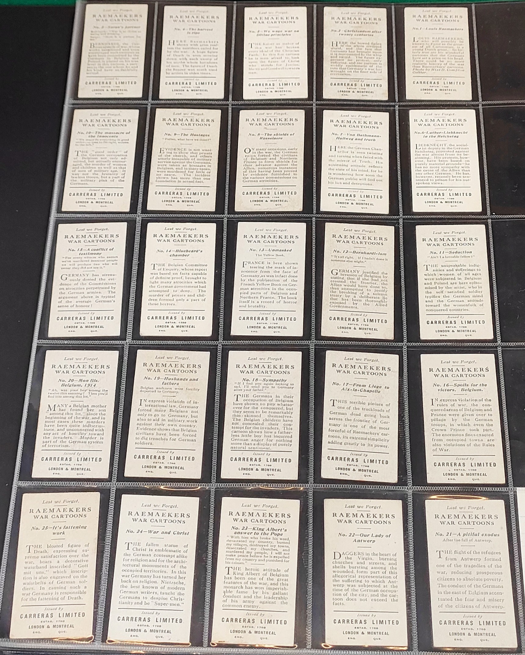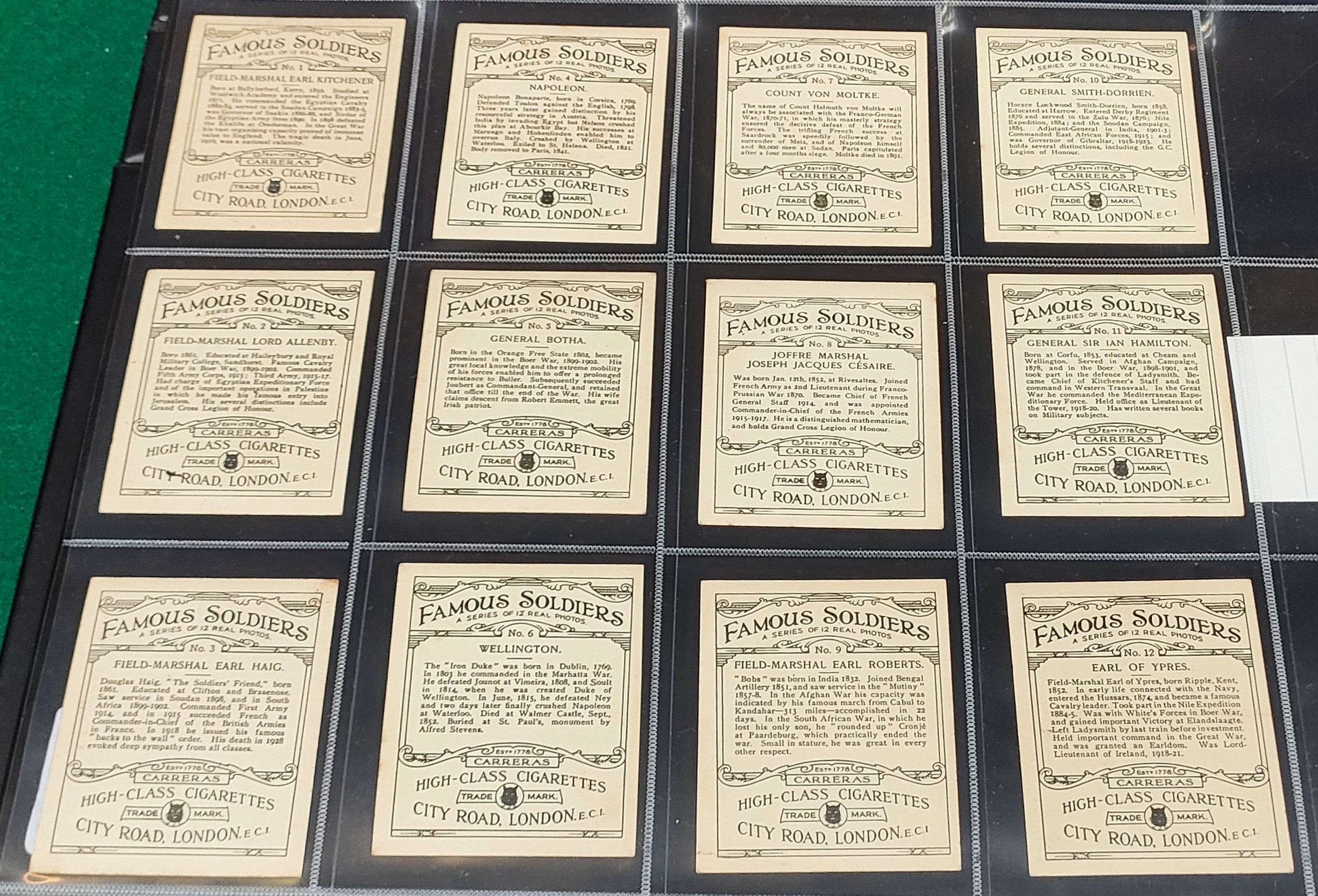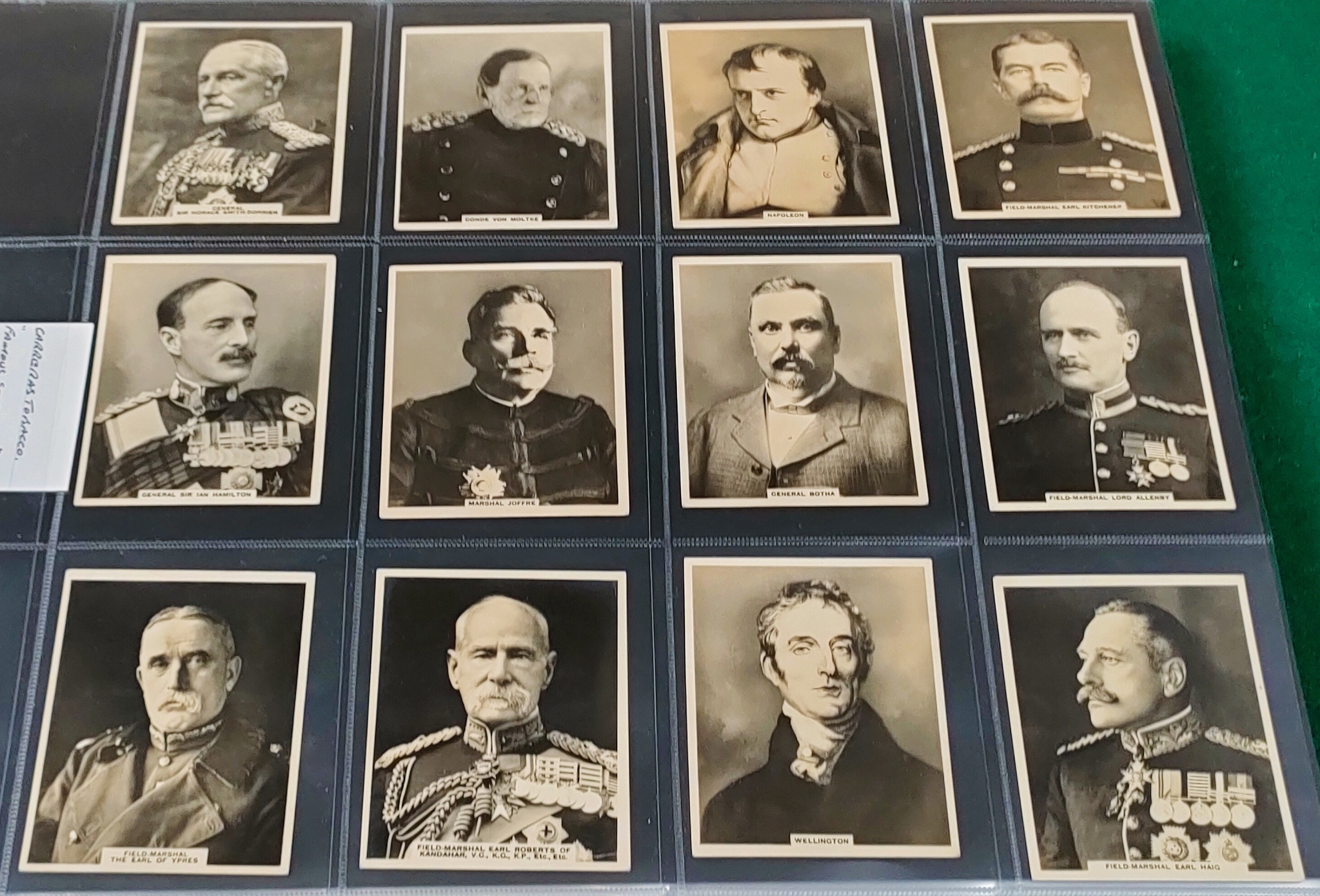 Set of Carreras Famous Soldiers cards, plus set of Carreras War Cartoons cards