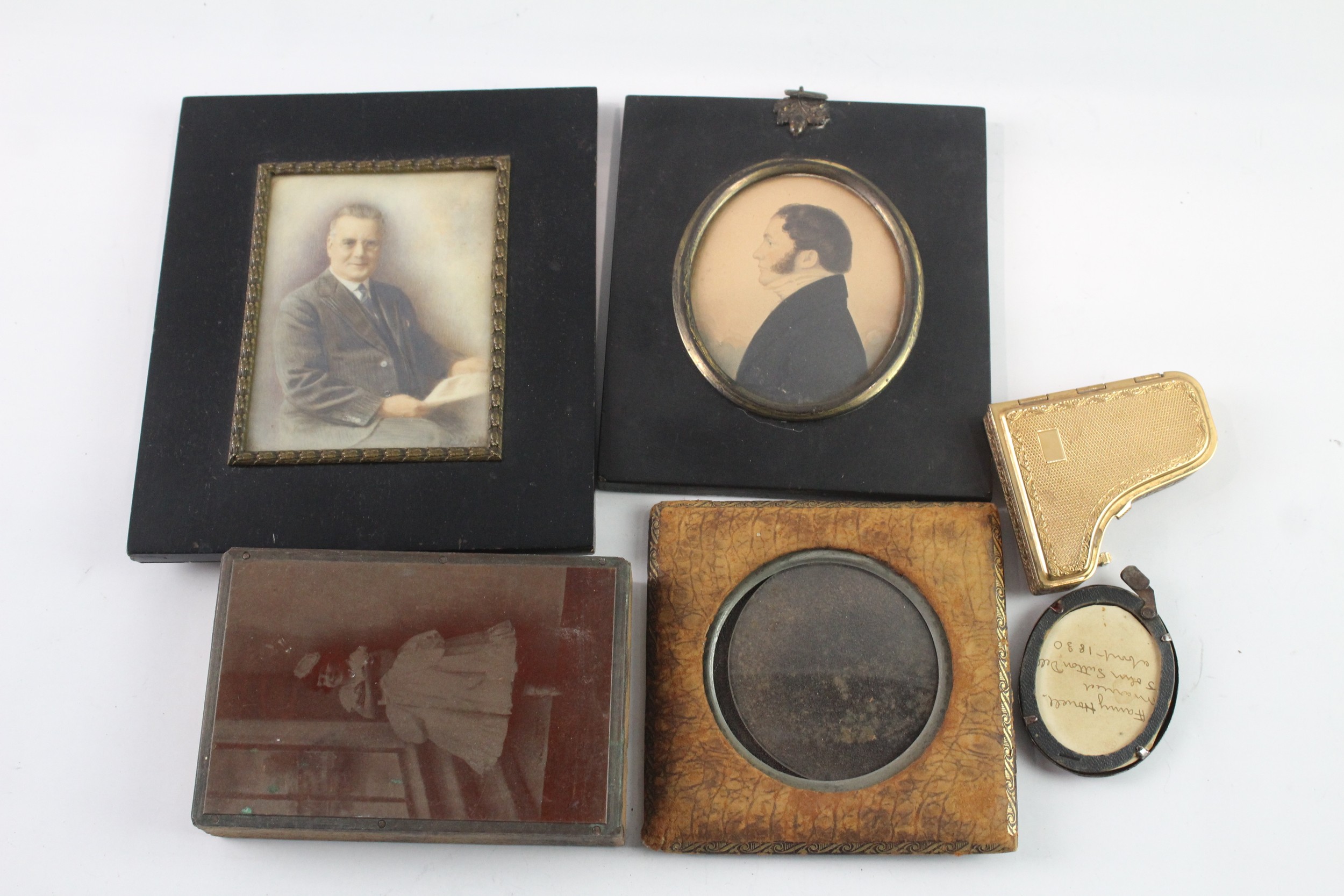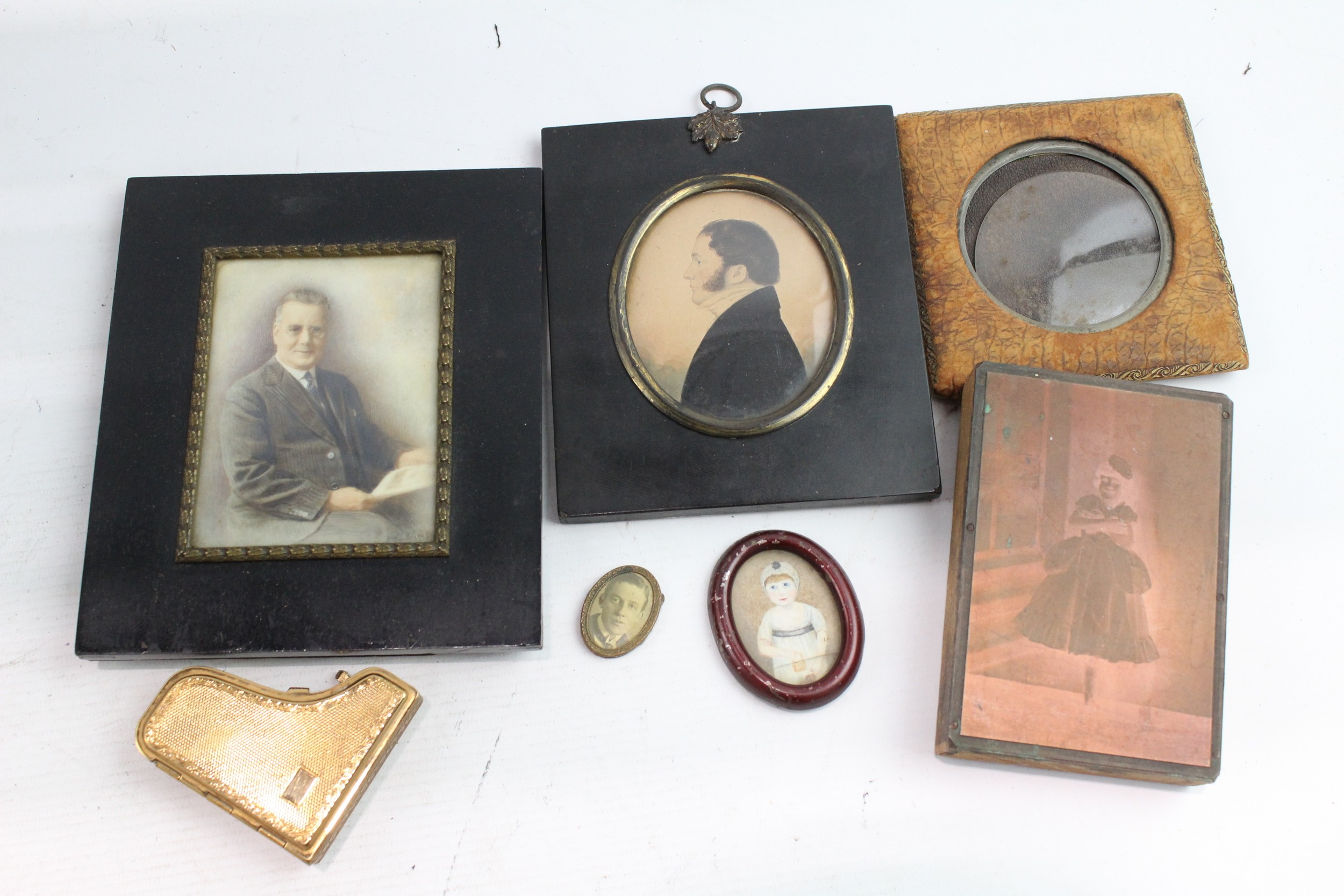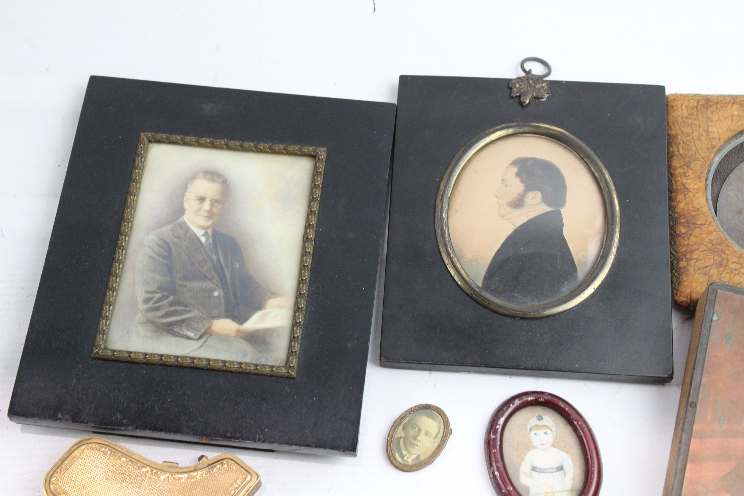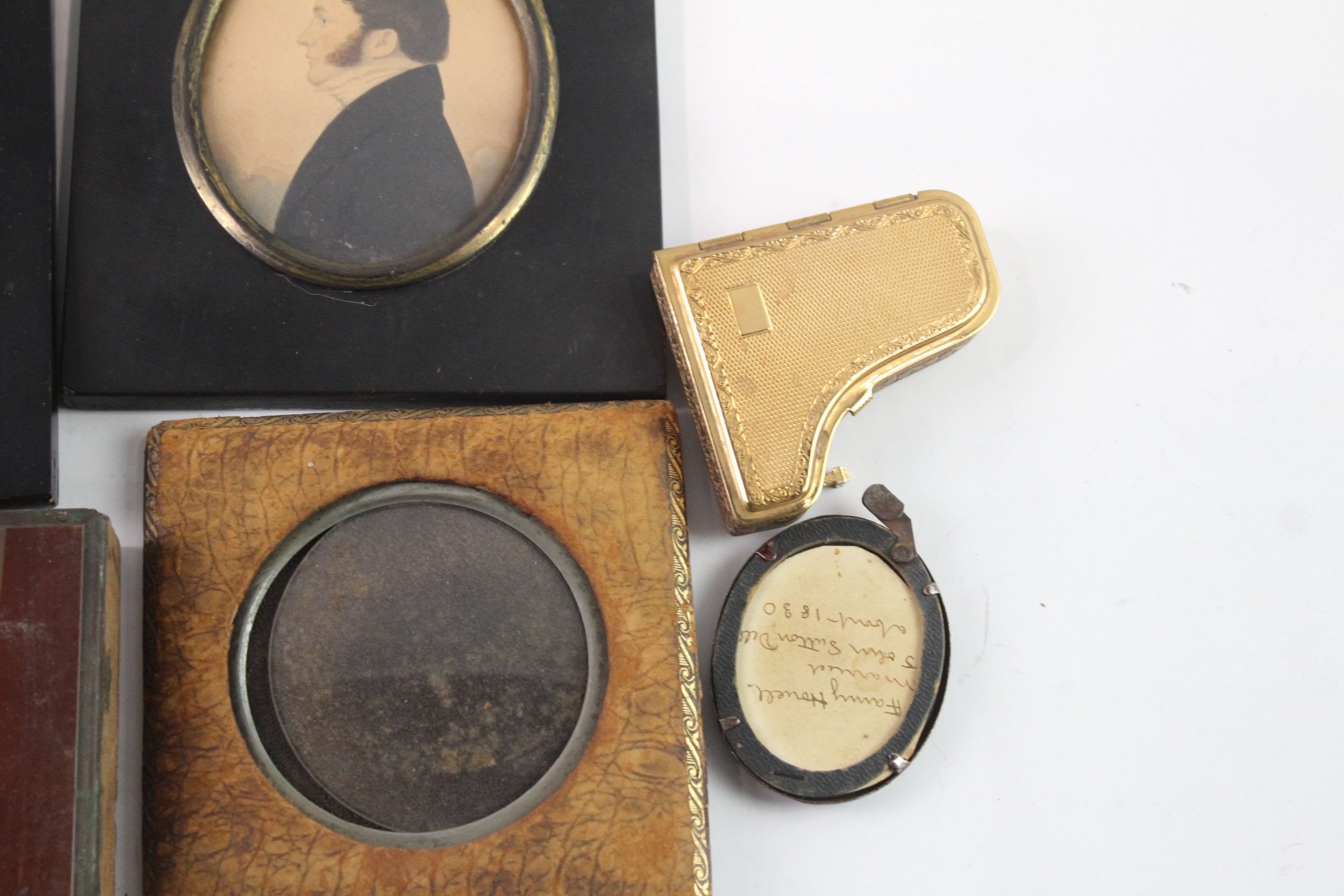 Antique Collectable Portraits Frames Miniatures Trinkets Compact Leather Lot 460857