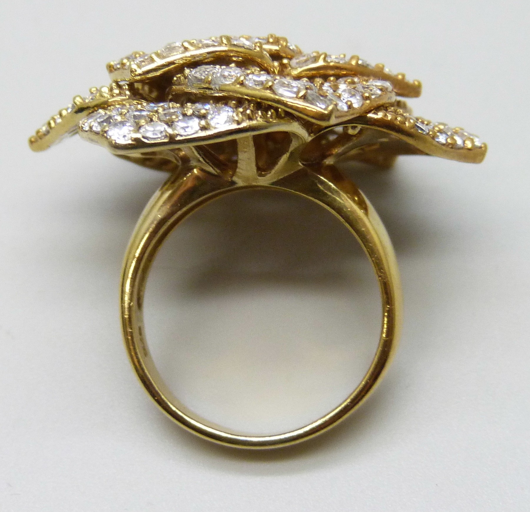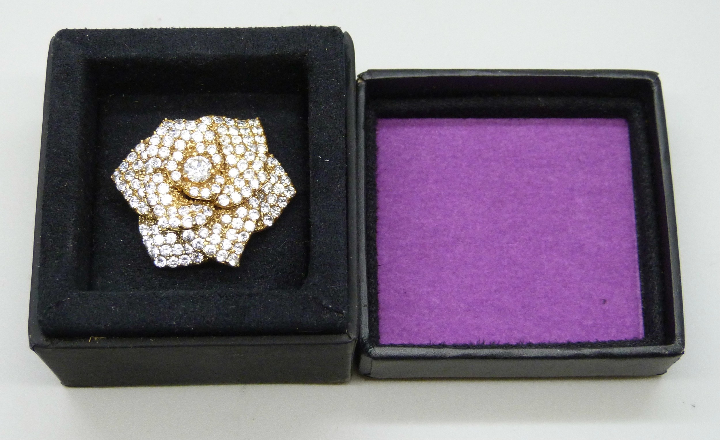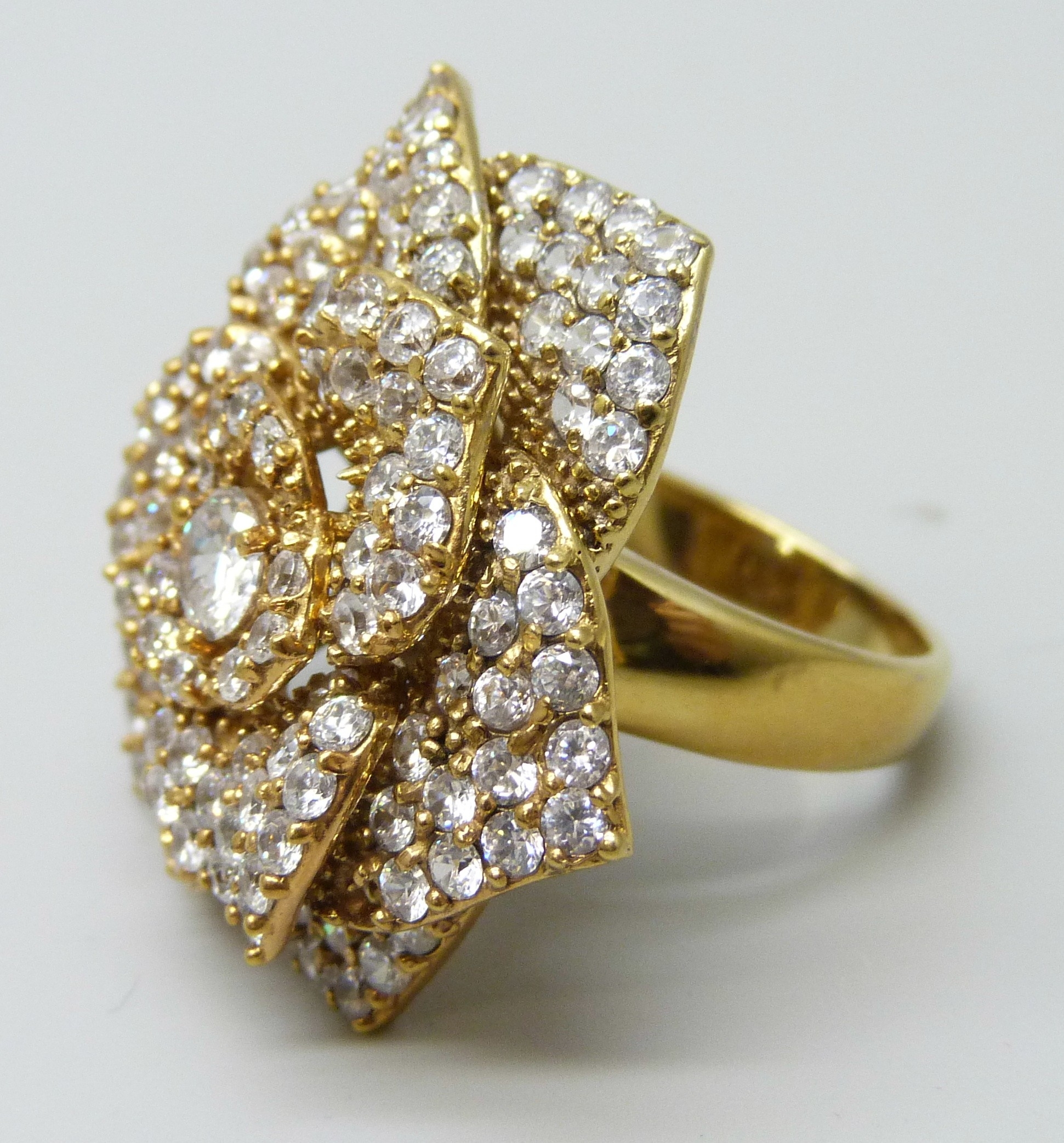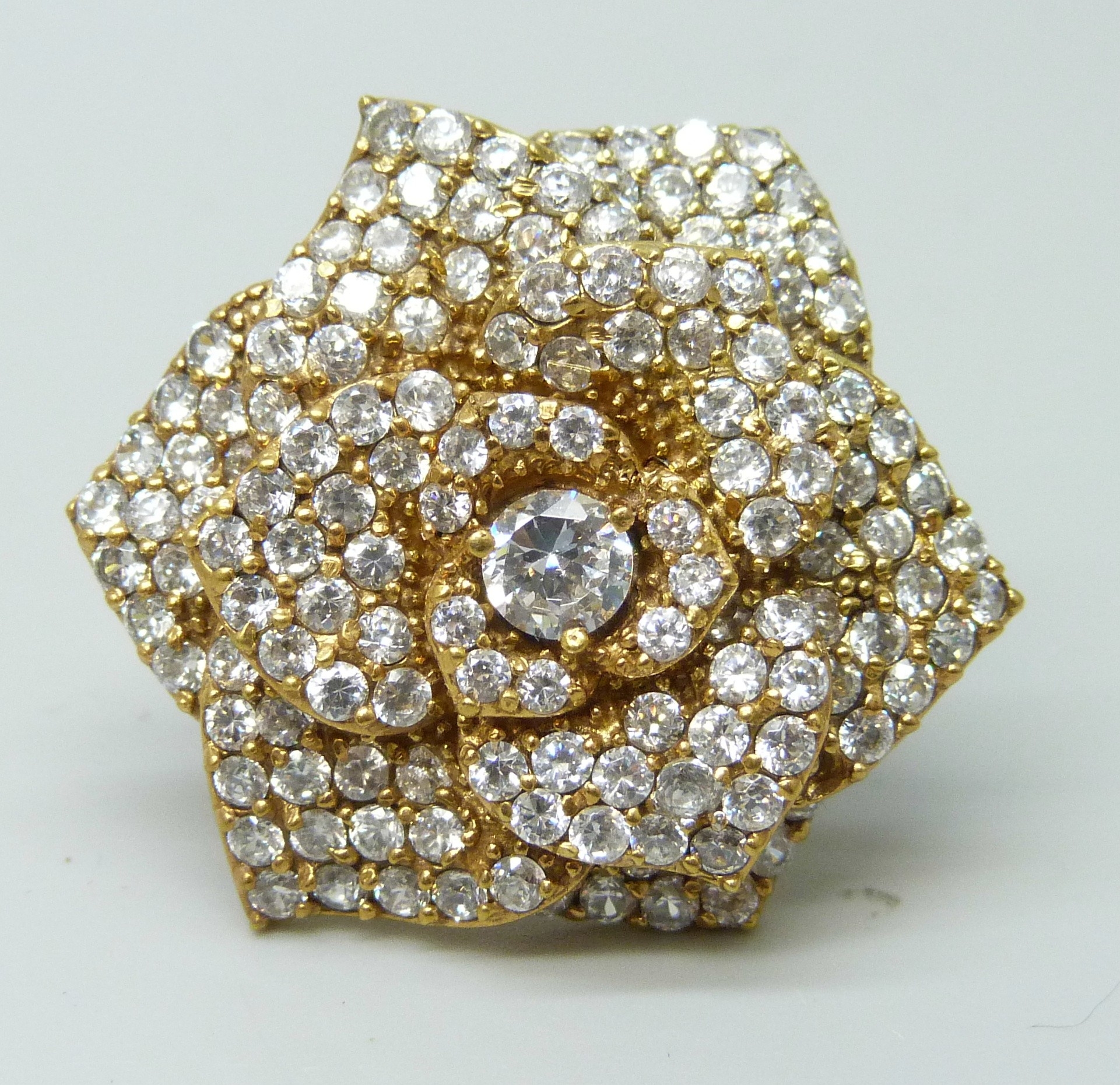 A silver gilt white stone cluster ring, one stone missing, 15g, N