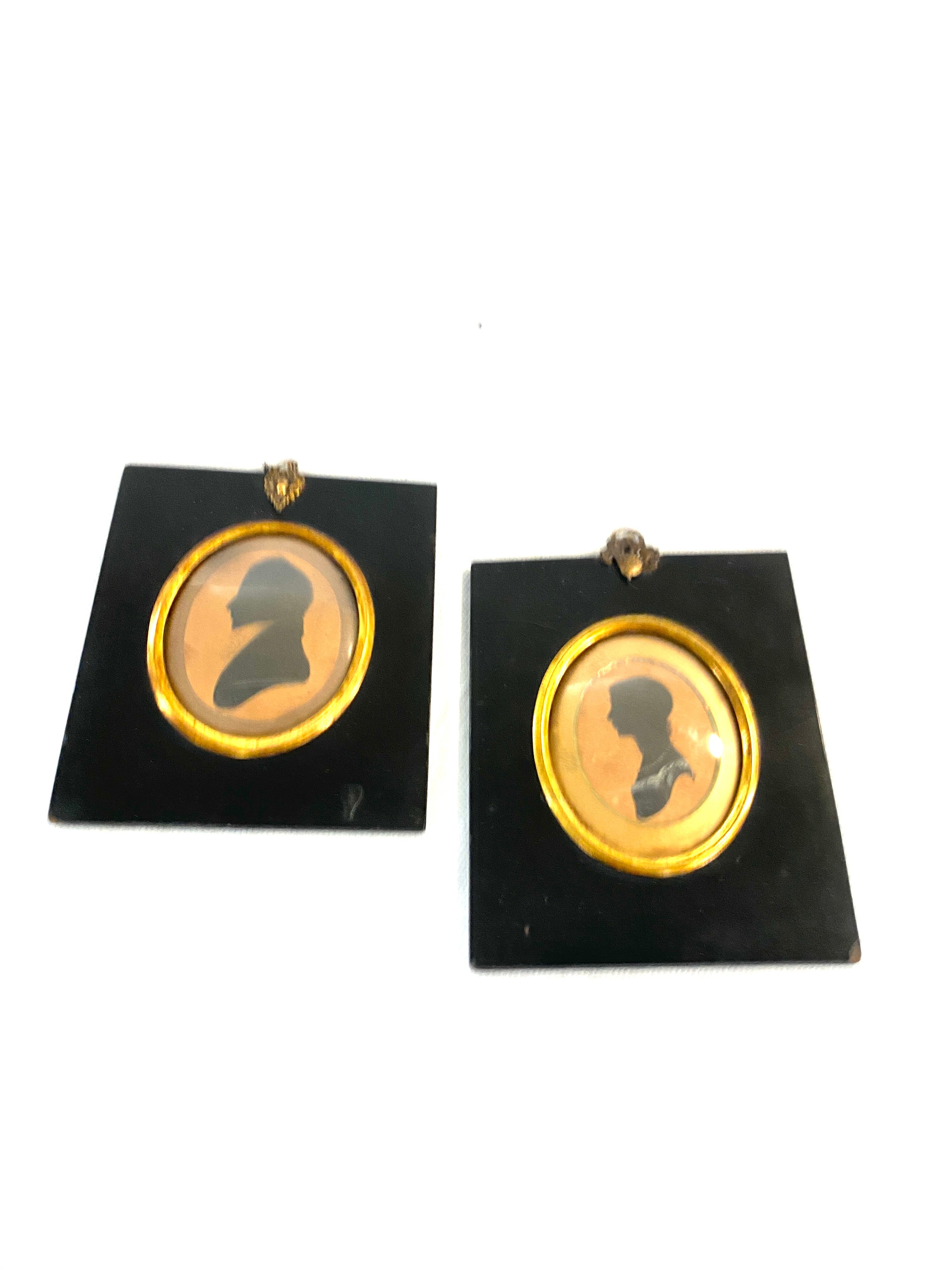 19th century antique silhouette portrait miniatures x 2. Joh...