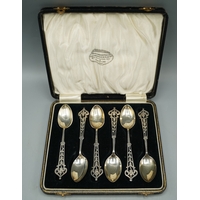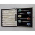 Six 20th Century silver enamelled teaspoons with coffee bean finials by Henry Clifford Davis, Birmingham 1947